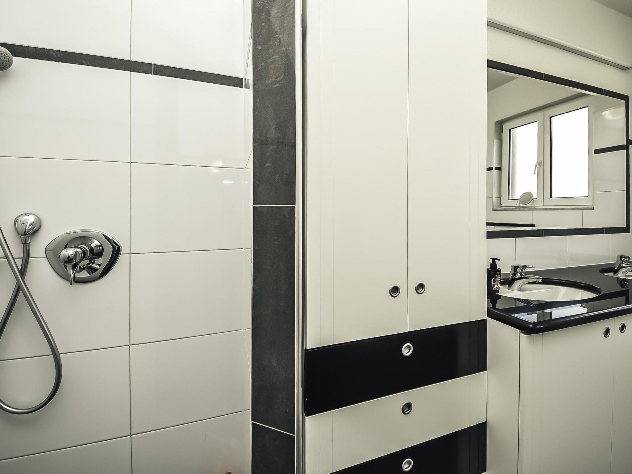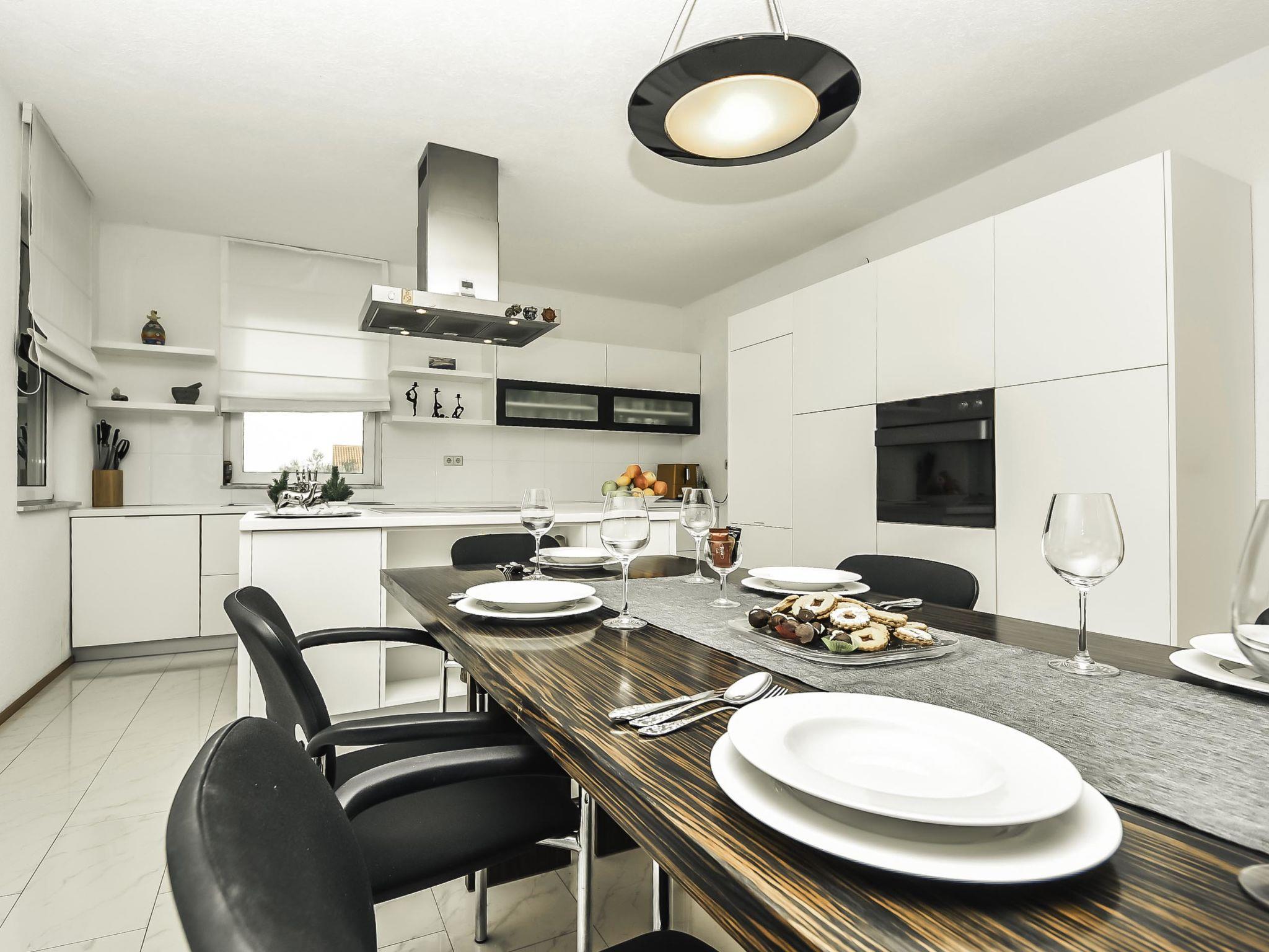 7-room house 222 m2 on 2 levels. Living/dining room 55 m2 with satellite TV (flat screen), air conditioning. Exit to the terrace. 2 rooms, each room with 1 french bed (180 cm, length 200 cm), air conditioning. Open kitchen (oven, dishwasher, 4 ceramic glass hob hotplates, freezer, electric coffee machine). Bath/shower/WC. Top floor: 1 room with sloping ceilings, ceiling height 100 - 300 cm with 1 french bed (180 cm, length 200 cm), air conditioning. 1 room with sloping ceilings, ceiling height 100 - 300 cm with 1 french bed (180 cm, length 200 cm), air conditioning. Exit to the terrace. 1 room with sloping ceilings, ceiling height 100 - 300 cm with 2 beds (90 cm, length 200 cm), air conditioning. 1 room with sloping ceilings, ceiling height 100 - 300 cm with 2 beds (90 cm, length 200 cm). Dining room 24 m2, with sloping ceilings, ceiling height 100 - 300 cm. Dining room with sloping ceilings, ceiling height 100 - 300 cm with kitchen corner. With sloping ceilings, open kitchen (oven, dishwasher, 4 ceramic glass hob hotplates) with air conditioning. 2 showers/WC. Terrace 15 m2, roofed, terrace 10 m2, roofed. Terrace furniture, deck chairs. View of the swimming pool and the countryside. Facilities: safe, baby cot, hair dryer. Internet (WiFi, free). Maximum 1 pet/ dog allowed.