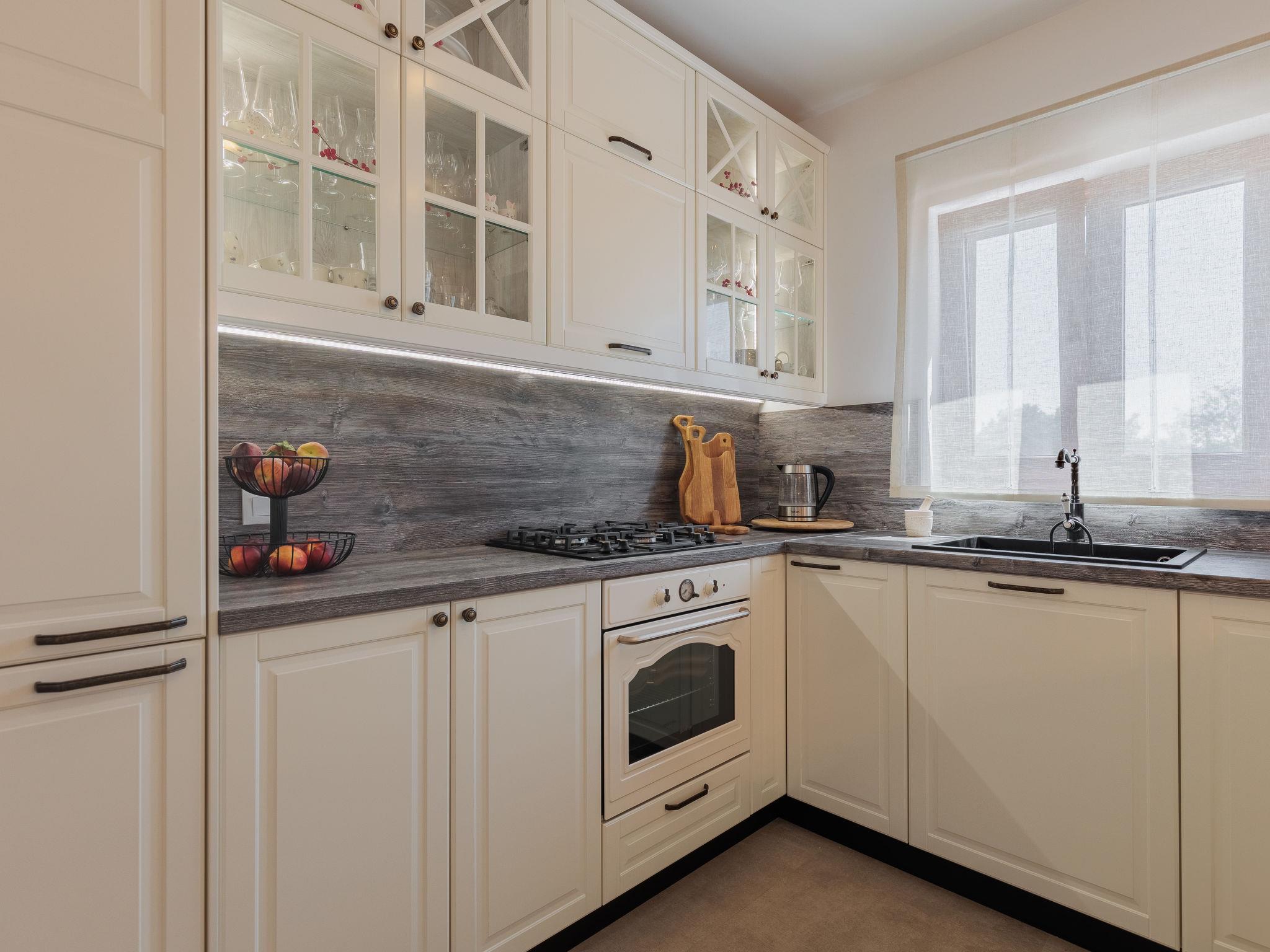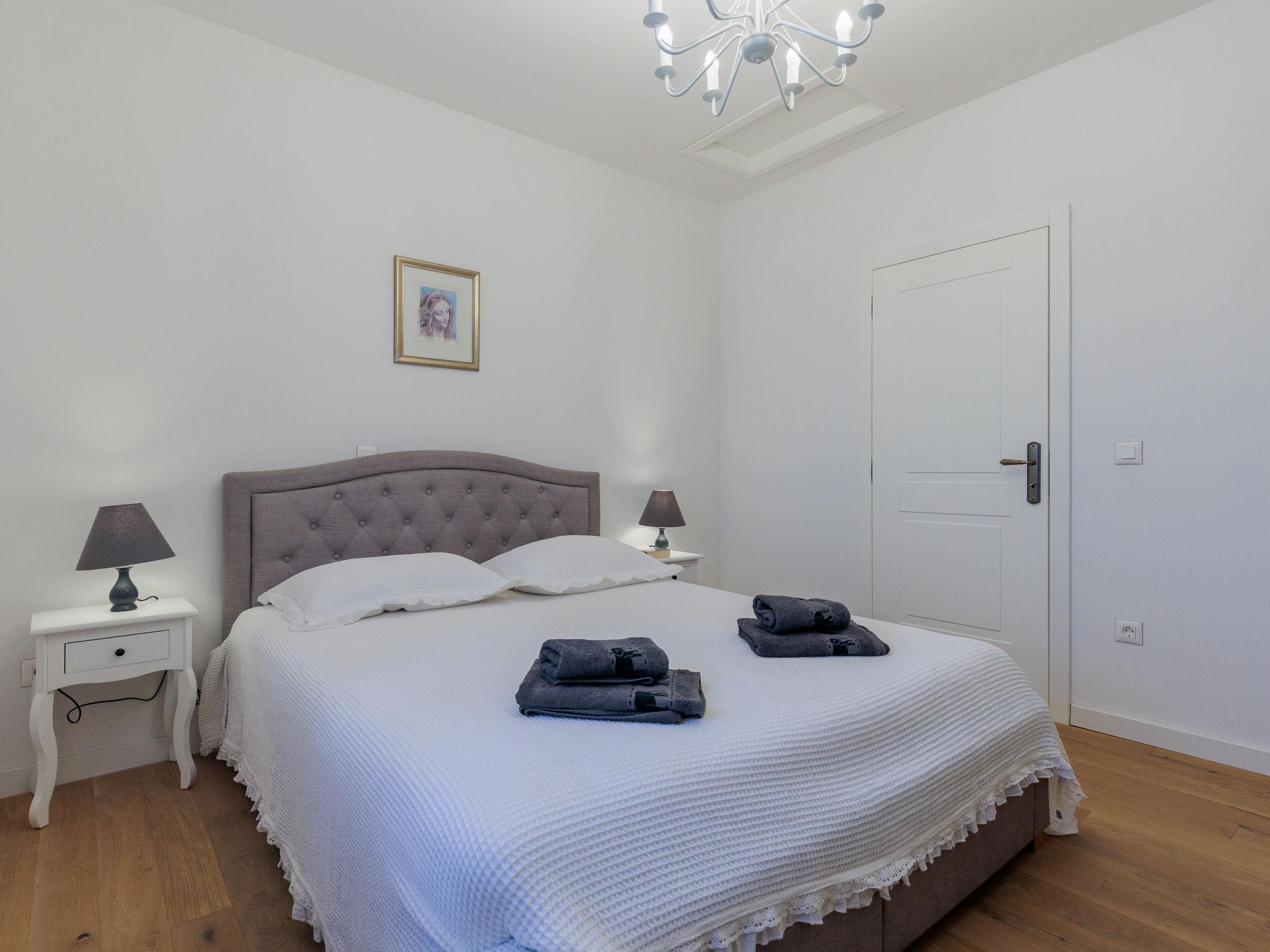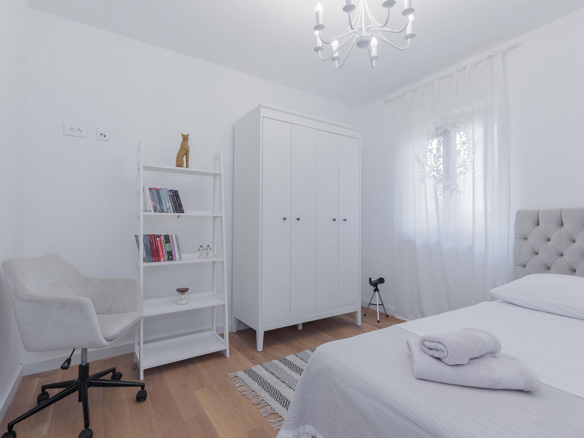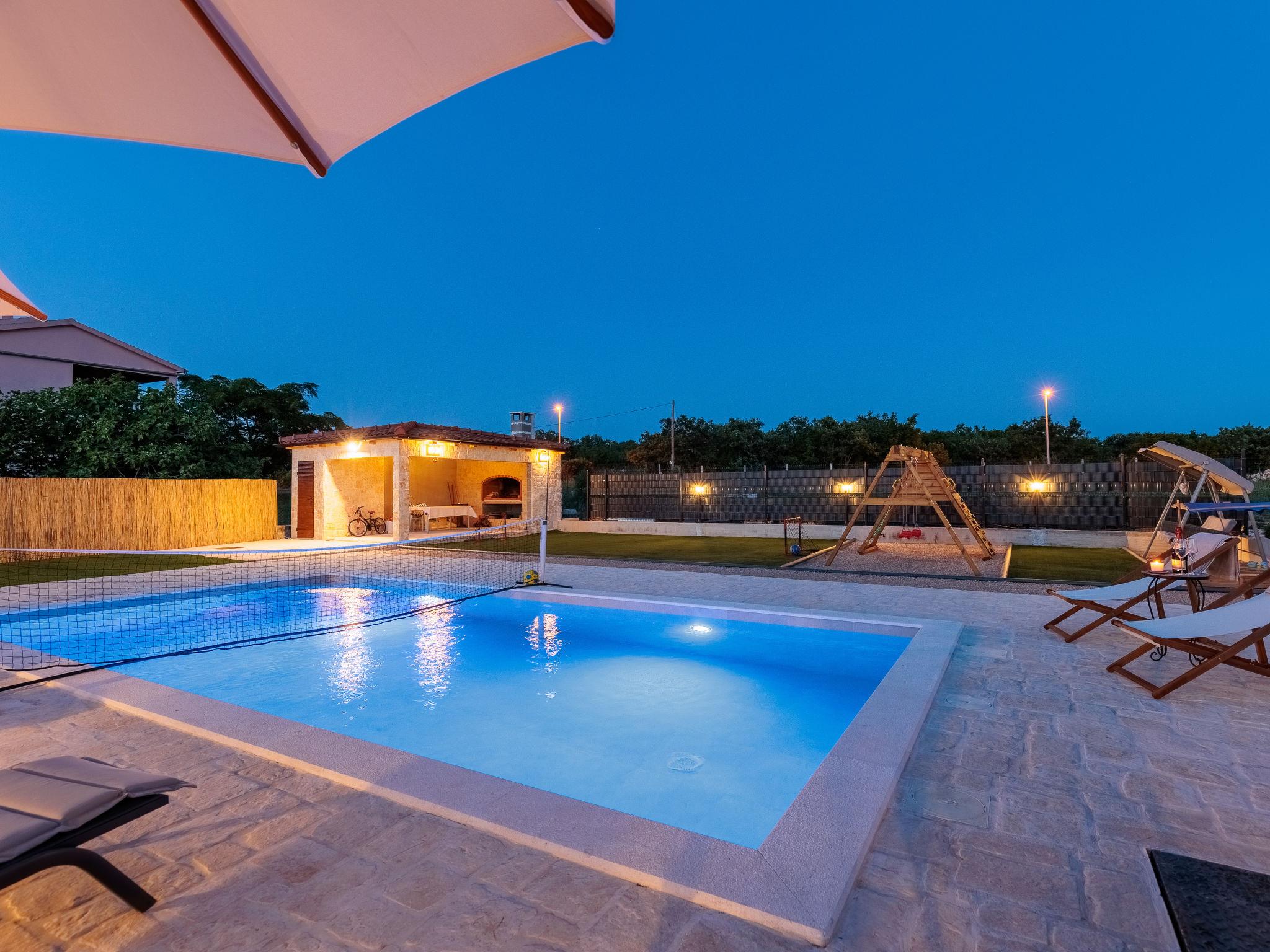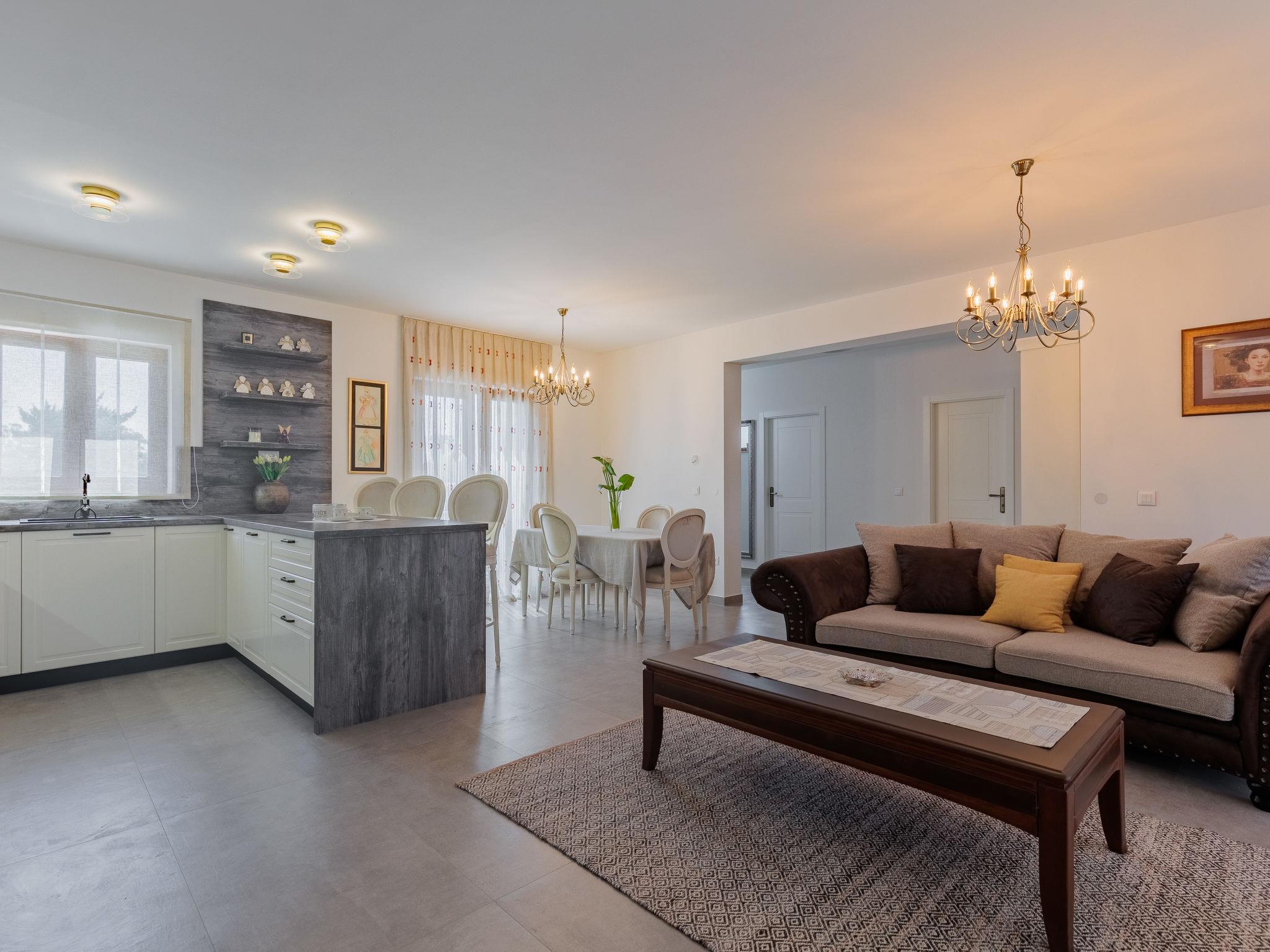 Beautiful, cosy single-family house "KLM", built in 2023. In the hamlet Rupalj 3.2 km from the centre of Policnik, 7.3 km from the centre of Posedarje, 16 km from the centre of Zadar, in a sunny position, 7 km from the sea. Private: property 1'000 m2 (fenced) with wildlife garden, swimming pool angular (8 x 4 m, 32 m2, depth 150 cm, seasonal availability: 01.Apr. - 01.Oct.) with internal staircase. Outdoor shower, volleyball, badminton, arbour (20 m2), barbecue (swing), pool maintenance by the owner/gardener. In the house: internet access, trampoline, washing machine. Parking (for 3 cars) at the house on the premises. Shop 300 m, restaurant 500 m, bus stop 750 m, sandy beach 7 km. Please note: airfield 21 km from the property.