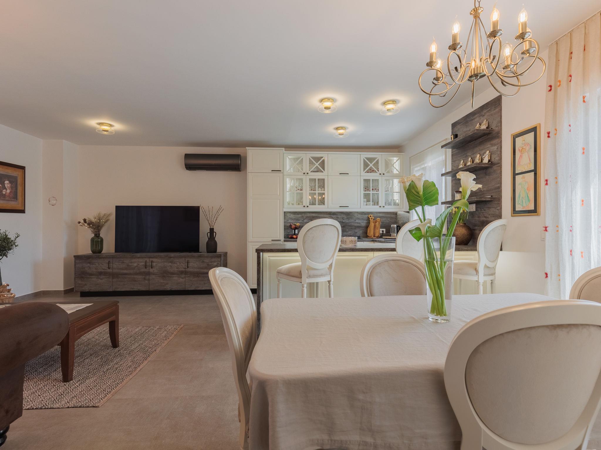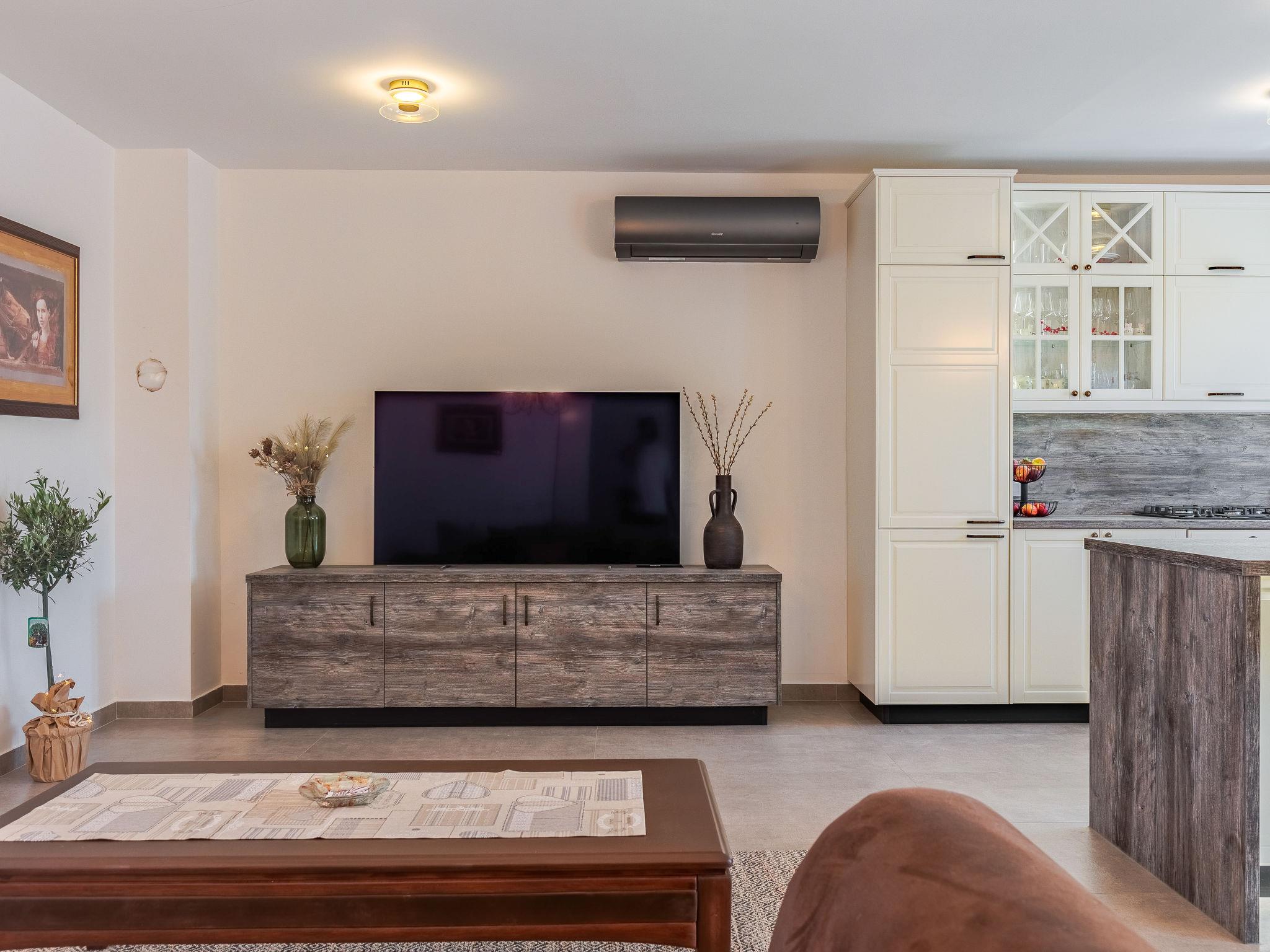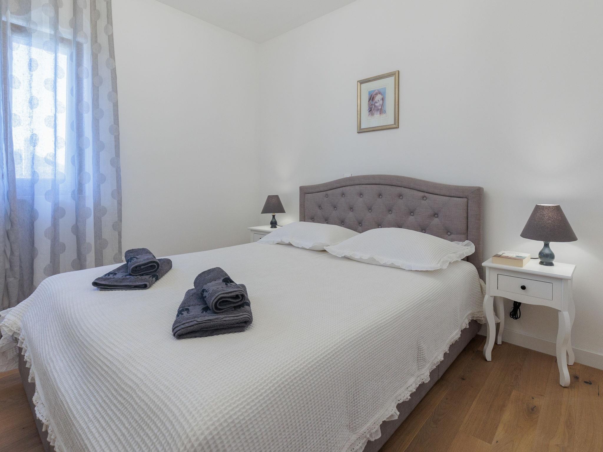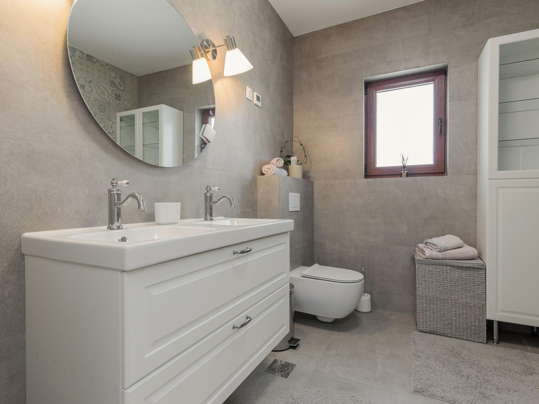 Beautiful, cosy single-family house "KLM", built in 2023. In the hamlet Rupalj 3.2 km from the centre of Policnik, 7.3 km from the centre of Posedarje, 16 km from the centre of Zadar, in a sunny position, 7 km from the sea. Private: property 1'000 m2 (fenced) with wildlife garden, swimming pool angular (8 x 4 m, 32 m2, depth 150 cm, seasonal availability: 01.Apr. - 01.Oct.) with internal staircase. Outdoor shower, volleyball, badminton, arbour (20 m2), barbecue (swing), pool maintenance by the owner/gardener. In the house: internet access, trampoline, washing machine. Parking (for 3 cars) at the house on the premises. Shop 300 m, restaurant 500 m, bus stop 750 m, sandy beach 7 km. Please note: airfield 21 km from the property.