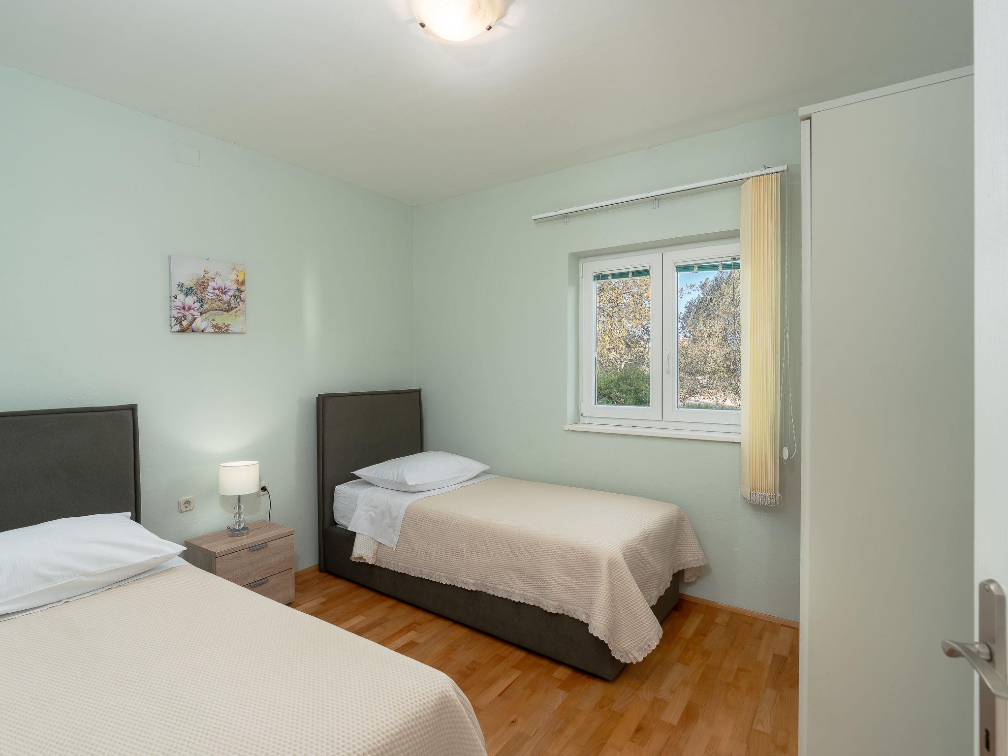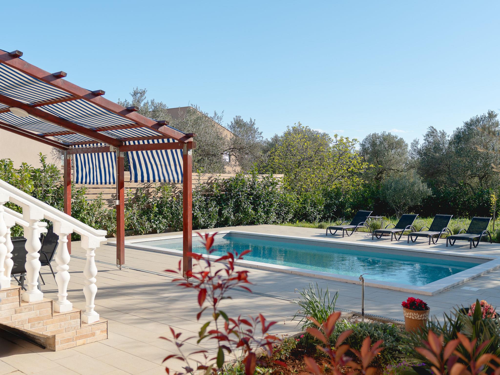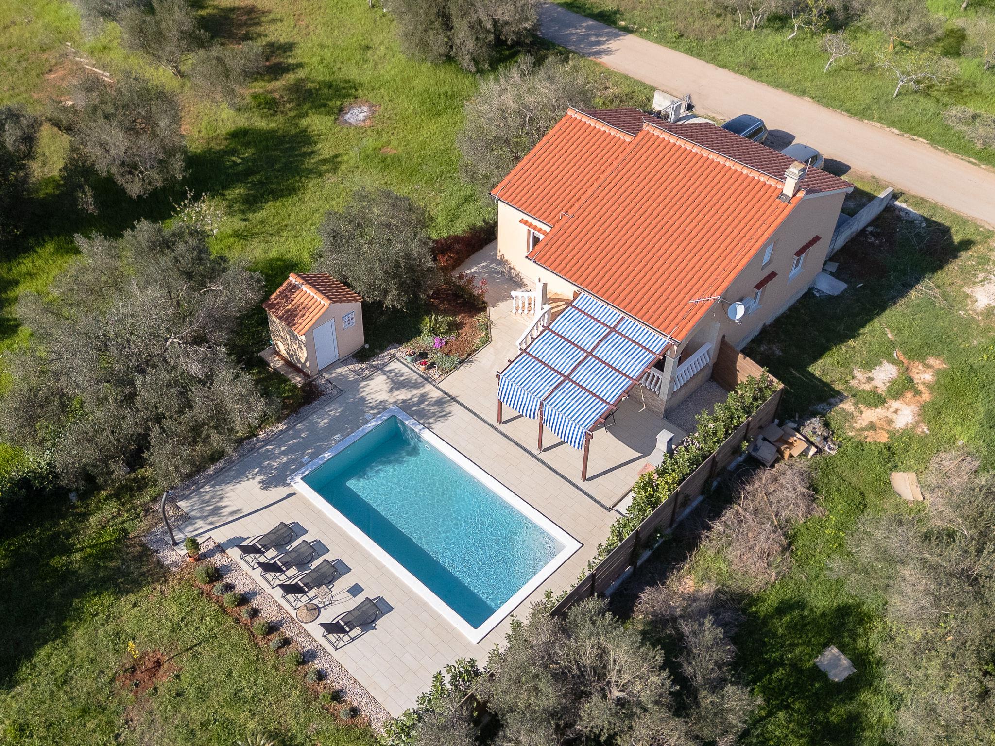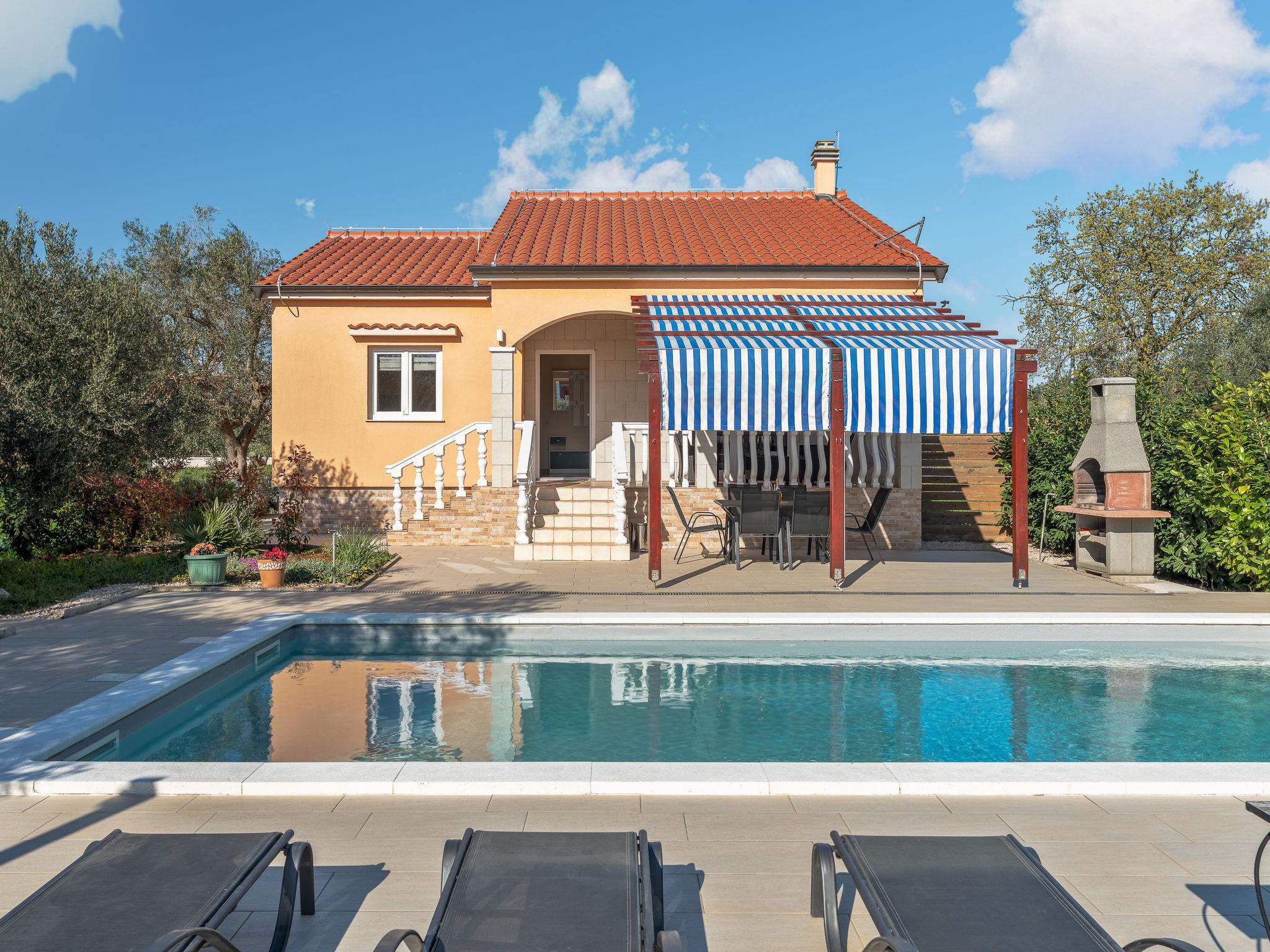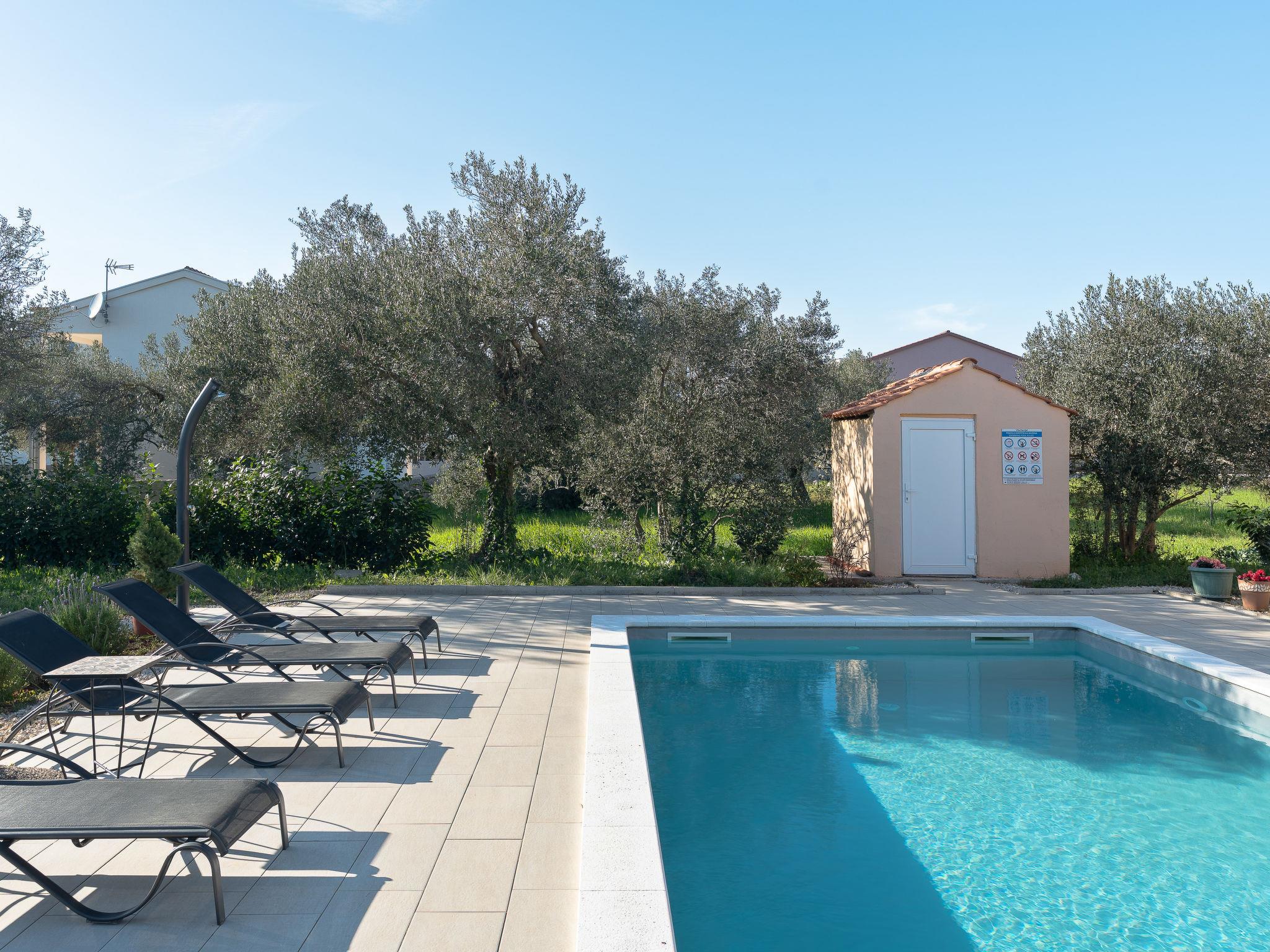 Single-family house "Danijel". 12 km from the centre of Zadar, 800 m from the centre of Sukošan, 18 km from the centre of Biograd, in the residential district, 700 m from the sea, 700 m from the beach. Private: property 700 m2, meadow, swimming pool angular (7 x 4 m, depth 150 cm, seasonal availability: 01.Apr. - 28.Oct.) with internal staircase. Outdoor shower, terrace, barbecue. In the house: internet access, washing machine. Parking (for 2 cars) on the premises. Supermarket 800 m, bus stop 1 km, rocky beach 700 m.