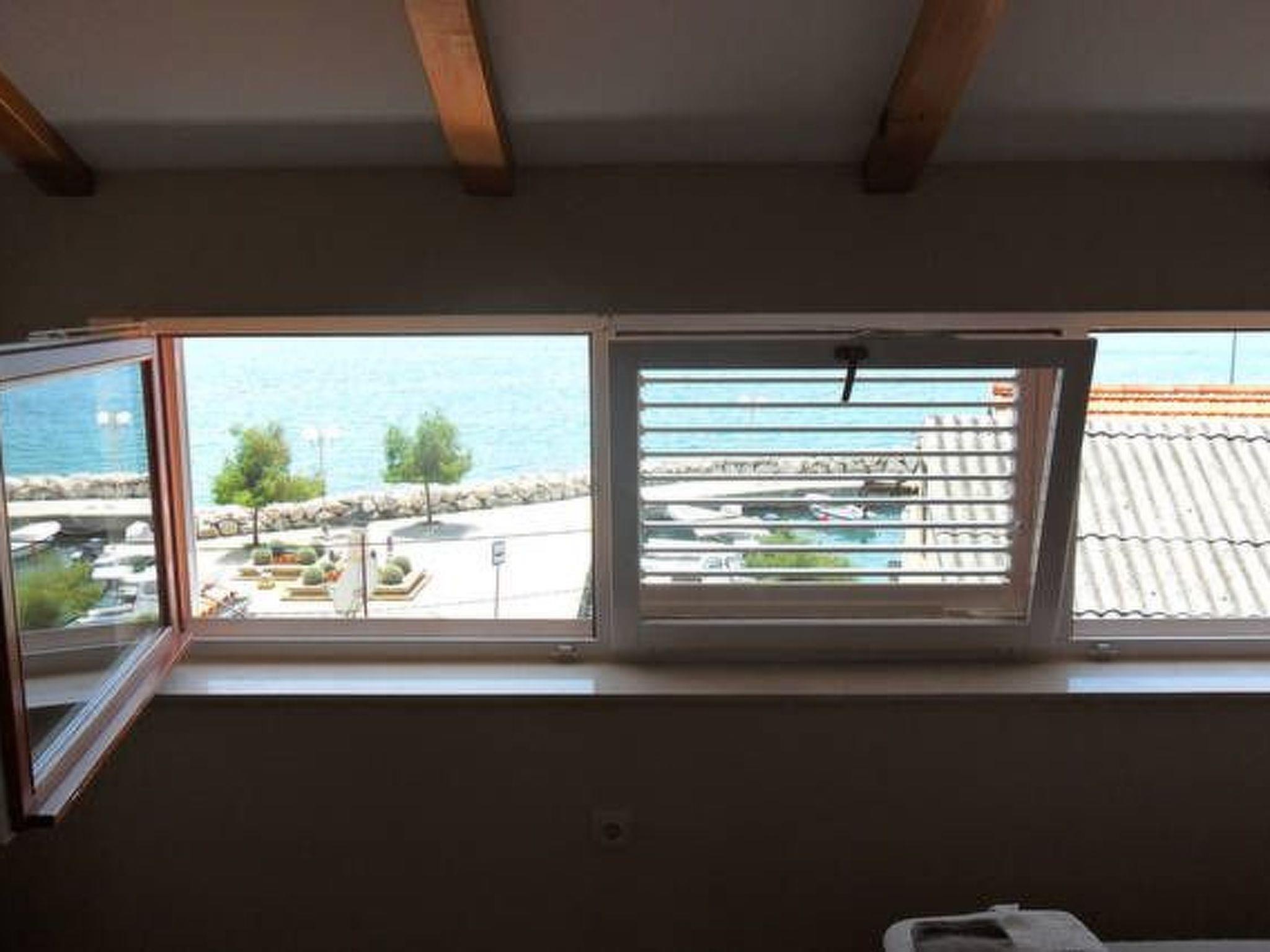 Two large wooden framed glass doors open off the living area directly onto the generous sun terrace which is a real highlight. Your private terrace is furnished with a dining table and four comfortable chairs. Here, you can relax with a good book or eat a meal while enjoying the stunning panoramic views across the sea and mountains. A parking space is available right outside the house.