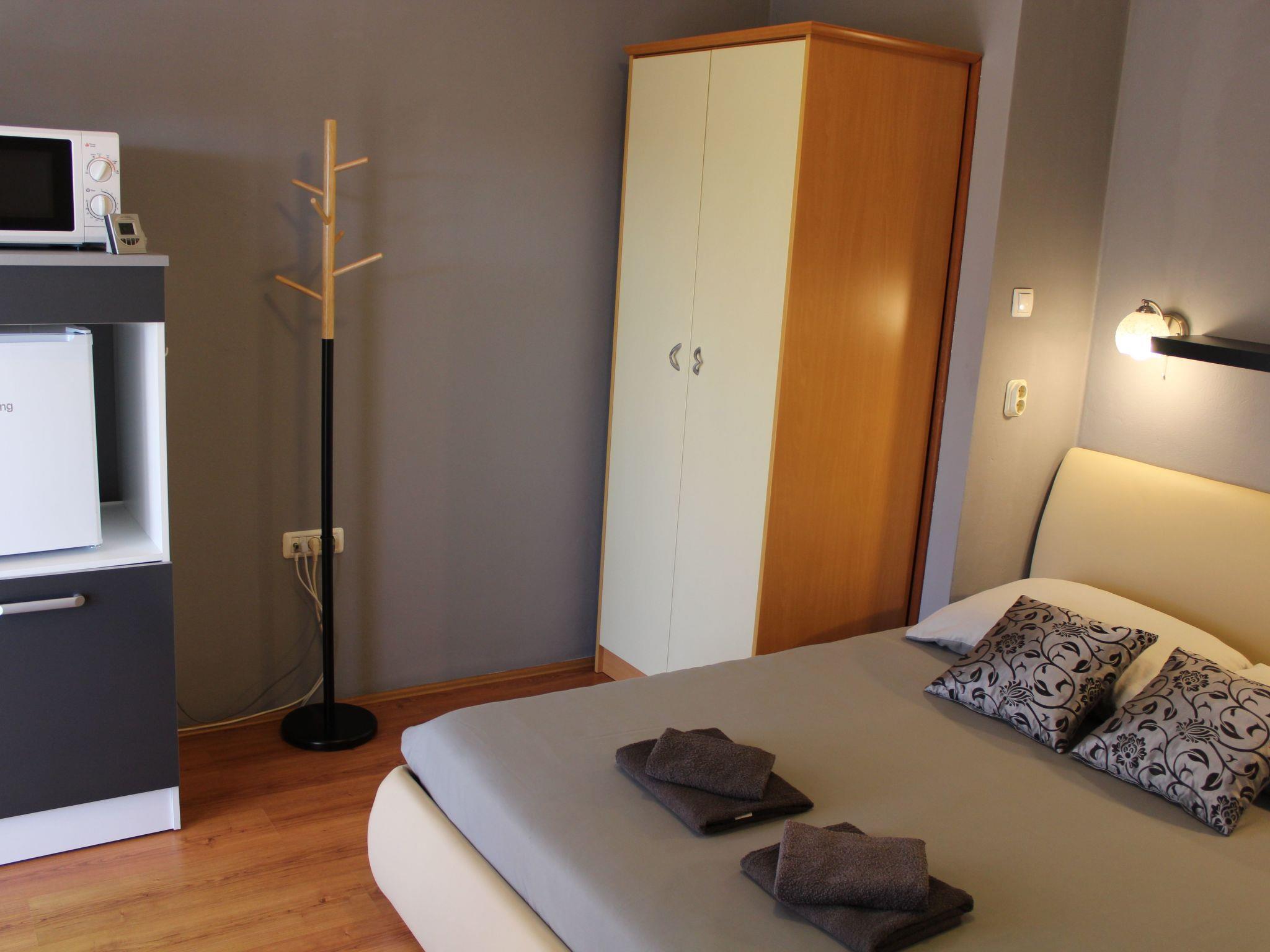 The room has everything you need for a comfortable stay: a nice big bed for two (160x200) with memory foam mattress, private bathroom with shower, flat TV with satellite programs. There is no kitchen but the room has a mini fridge, kettle, microwave, dishes and cups, and a small dining area. Also features a free WiFi and air condition unit.