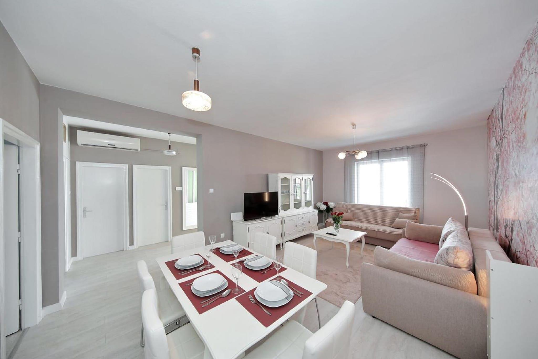 Væk fra byens centrum ligger dette enkle feriehus i Zadar. Det har 3 soveværelser med komfortabel plads til 7 gæster. Ideelt til en familie- eller gruppeferie, der planlægger at rejse sammen, er der en privat swimmingpool, hvor man kan tage en kølig og forfriskende dukkert. Du kan gå til centrum en kort gåtur væk for at shoppe og købe gaver til dine kære. Restauranterne 1 km væk byder dig velkommen med lækre lokale og internationale delikatesser, der er værd at prøve. Fra købmanden 200 m væk kan du købe mad til opholdet. Huset har en fantastisk beliggenhed til at udforske de omkringliggende områder. Dansemusikfestivaler i denne by er ret populære og derfor et besøg værd mindst én gang. Tilbring dine solrige dage på balkonen med at sole dig. Forbered en lækker grillfest for at fejre en særlig lejlighed med dine venner og familie. Der er parkeringsplads på stedet. Nyd et spil billard i din fritid. Zadar Lufthavn ligger 9 km væk.