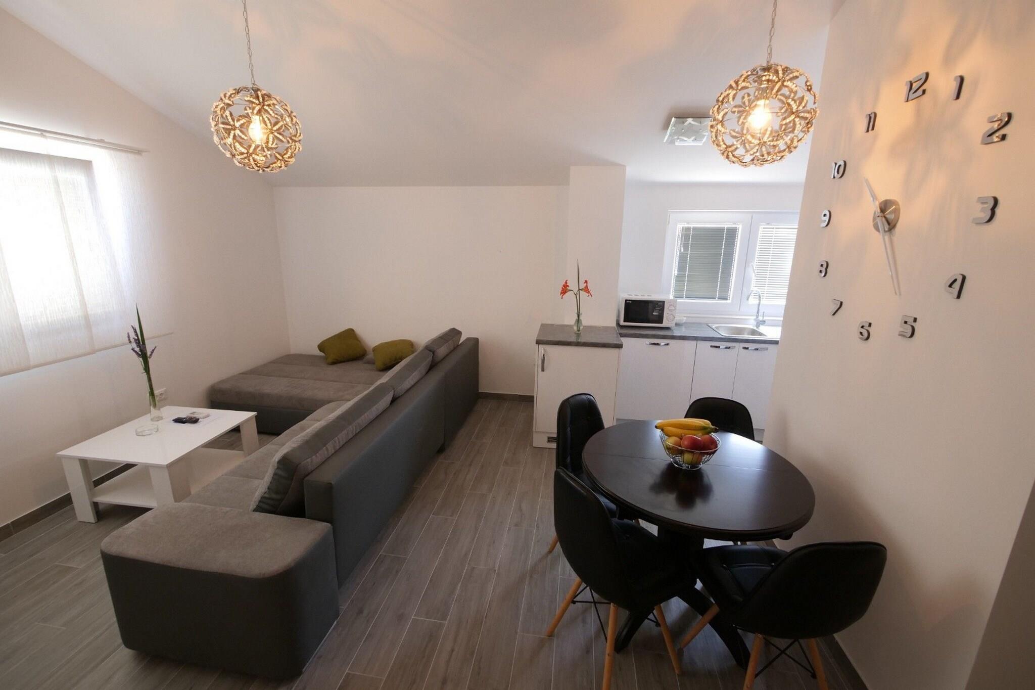 Denne lejlighed ligger i Zadar og har balkon med komfortable møbler med udsigt over udsigten. Stedet er ideelt for en lille familie på ferie. Lejligheden ligger i den næststørste by på den dalmatiske kyst berømt for sine betagende solnedgange. Centrum og havets strand ligger kun 2 km fra lejligheden. Grundet ejendommens gode beliggenhed, kan alt hvad du kan få brug for under dit ophold findes i nabolaget. Supermarked ligger kun 50 m fra ejendommen. Restauranter og barer ligger 100 m fra lejlighederne Maza. Lejligheden har gratis aircondition samt SAT LCD-tv. Den åbne stue er udstyret med sofa og opholdsområde, og det er kombineret med det udstyrede køkken og spiseplads. Busstationen ligger 50 m, og lufthavnen er kun 10 km væk.