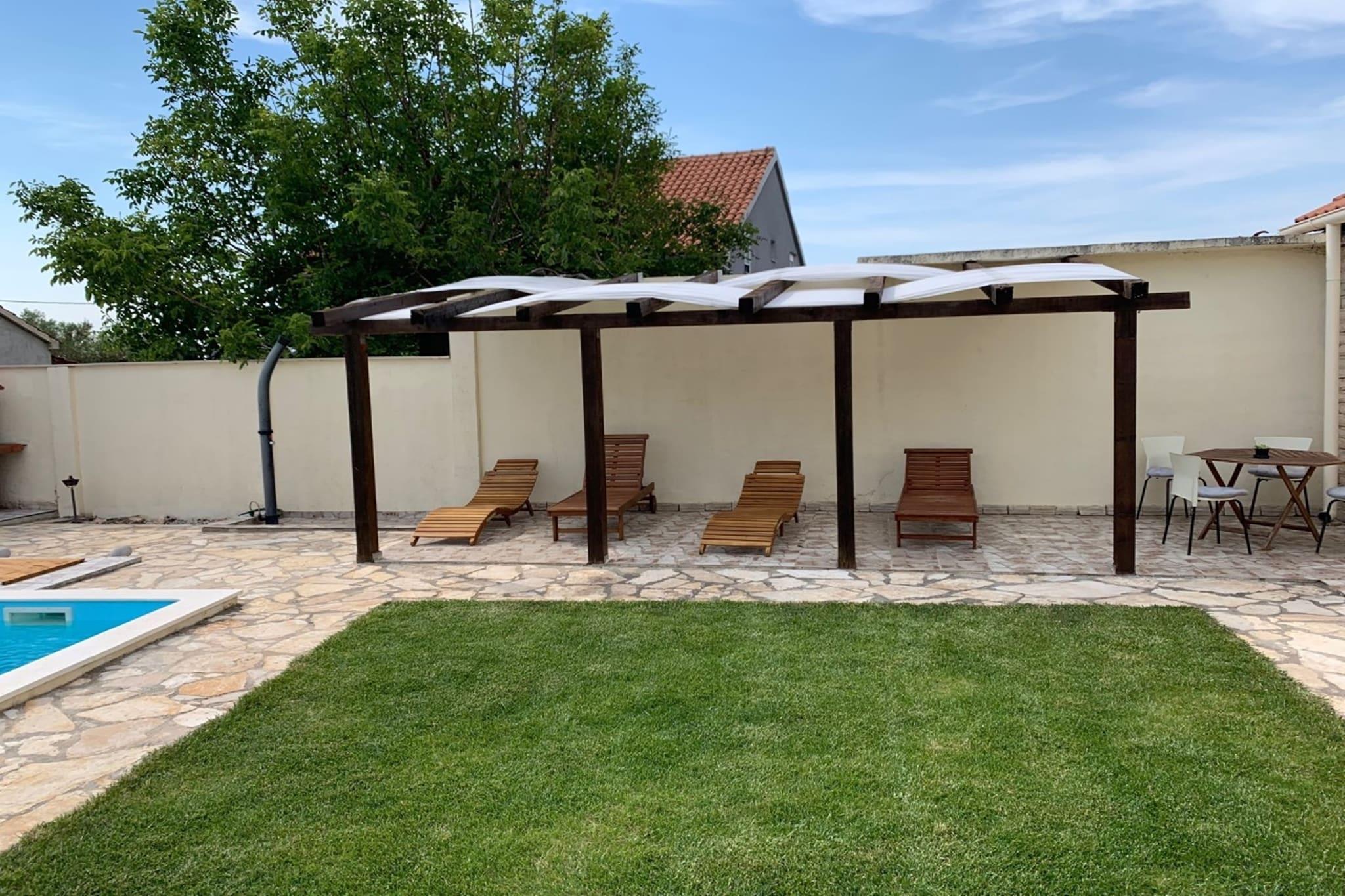 Dette kæledyrsvenlige feriehus til seks gæster ligger i Murvica, nær Zadar, og tilbyder et afslappende tilflugtssted med gratis WiFi og moderne faciliteter. Kun 6 km fra Zadars pulserende centrum og 6 km fra stranden kan gæsterne nyde både ro og nem adgang til kystattraktioner. Med generelle forsyninger og lægehjælp inden for 5 km er bekvemmeligheden garanteret. Indenfor har huset en rummelig opholds- og spisestue med satellit-tv, et fuldt udstyret køkken med moderne apparater og to hyggelige soveværelser, et med en dobbeltseng og en enkeltseng og et andet med en køjeseng. Gæsterne kan slappe af i den private have, tage en forfriskende dukkert i den store swimmingpool eller nyde underholdning med bordtennis og dart. Yderligere faciliteter inkluderer en vaskemaskine, terrasse og havemøbler for et behageligt ophold. I nærheden kan du udforske Havorglet, et arkitektonisk vidunder, der skaber musik fra bølgerne, eller besøge Zadar Land City Gates, en historisk indgang til den gamle bydel. Til spisning tilbyder Restoran Kantuna middelhavsretter, mens Proto Food & More serverer frisk fisk og skaldyr i hyggelige omgivelser. Uanset om du søger eventyr eller afslapning, er dette feriehus den perfekte flugt.
