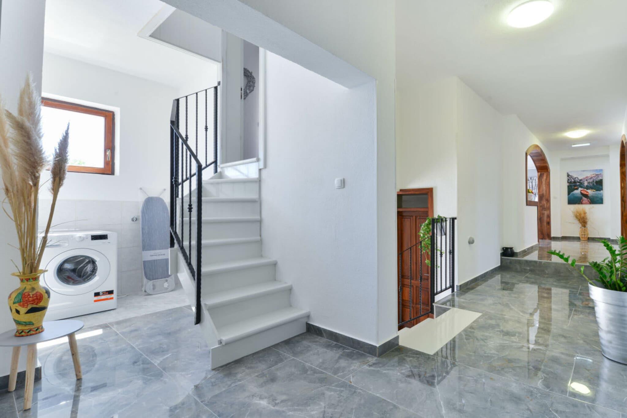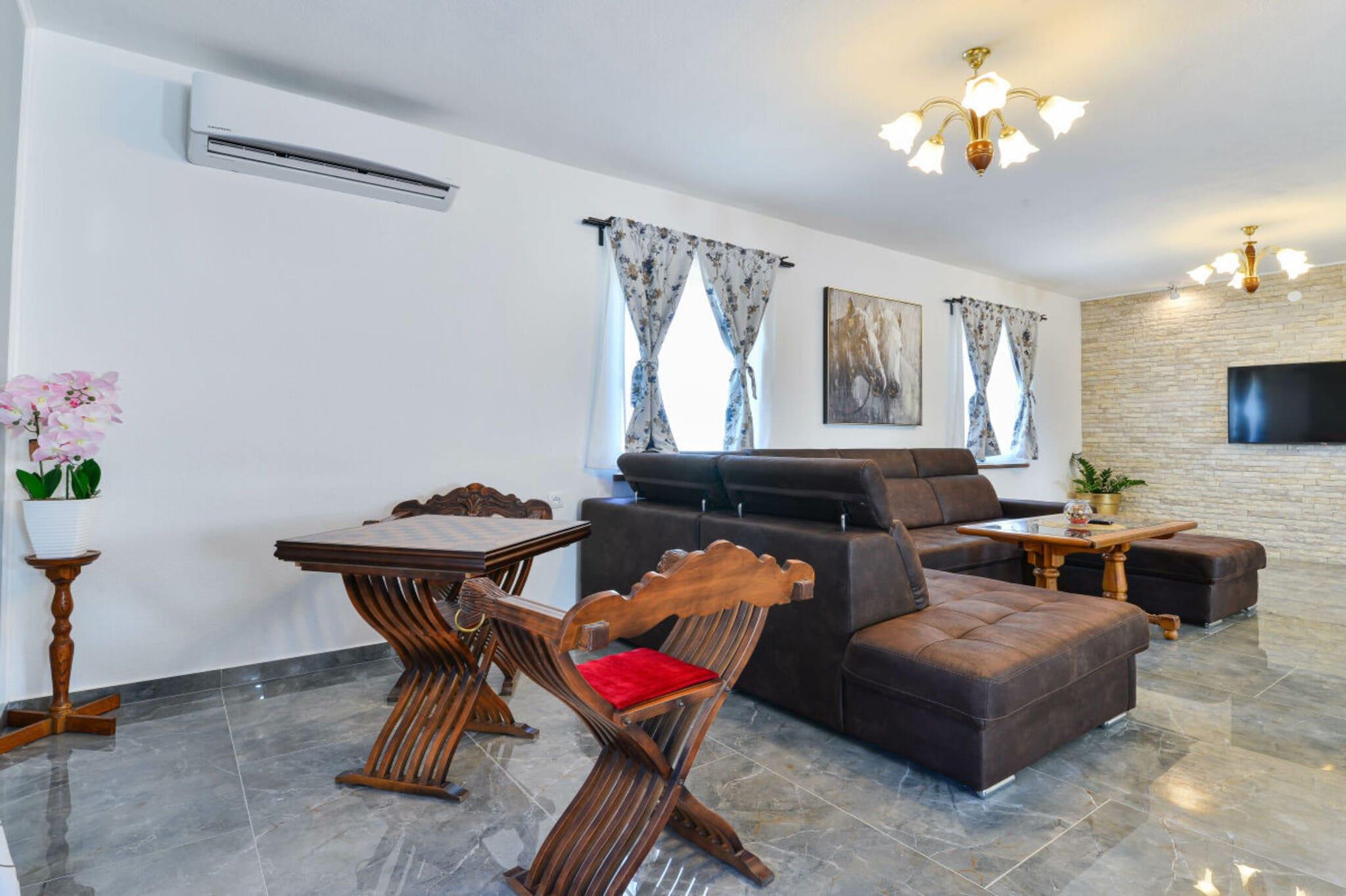 Den helt nye Villa Marinic, med sin private pool, underholdningsrum og håndlavede træmøbler, er ideelt egnet til 10-12 gæster i fem dobbeltværelser (to med ensuite badeværelser), en dobbelt sovesofa i stuen og seks brusebadeværelser. Hele ejendommen er placeret i den hævede stueetage. Et moderne åbent køkken med spiseplads og en moderne stue vil inspirere til mange fælles måltider og afslappede samtaler. Det er fuldt udstyret med alle nødvendige apparater, herunder ovn, opvaskemaskine, induktionskogeplade, køleskab med fryser, filterkaffemaskine, brødrister og mikrobølgeovn. Der er også et håndlavet skakbord. I underholdningsrummet finder du billard, bordtennis, dart og en PlayStation for dem, der søger indendørs sjov. Hele ejendommen er designet til ren nydelse og hedonisme. Der er et udendørs køkken med grill og siddeområde, en legeplads med trampolin, gynger og sandkasse samt en stor swimmingpool med liggestole og parasoller. Hele ejendommen har Wi-Fi-dækning og seks airconditionanlæg. Fem parkeringspladser er tilgængelige på ejendommen.