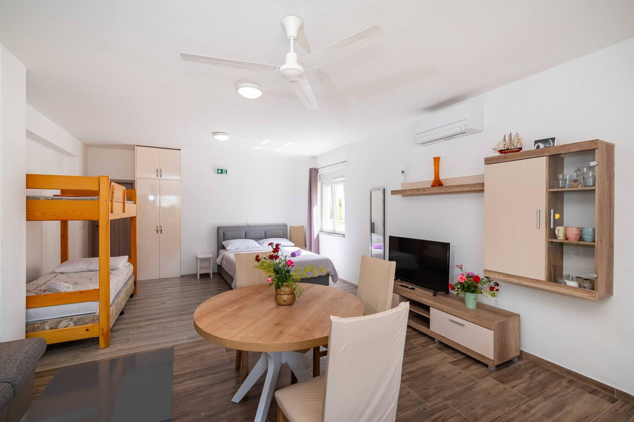 Denne lyse og moderne lejlighed ligger i et roligt boligområde i Zadar og tilbyder komfortabel indkvartering kun 1 km fra havet og i gåafstand fra den gamle bydel. Den er ideel til par eller små familier, der søger et afslappende ophold tæt på både stranden og byens kulturelle attraktioner. Denne nybyggede lejlighed på 44 m² har en åben stue med spiseplads, et stort dobbeltseng og en ekstra køjeseng, der er velegnet til et barn. Det fuldt udstyrede køkken har opvaskemaskine, ovn og alle nødvendige køkkenredskaber, der gør det nemt at tilberede måltider. Det moderne badeværelse er udstyret med brusebad og vaskemaskine, og aircondition, hurtigt Wi-Fi og fladskærms-Smart-tv sikrer et behageligt ophold og adgang til internettet. Gæsterne kan benytte den bekvemme private parkeringsplads på stedet. I nærheden findes en købmand, et bageri, et apotek og et lokalt marked. Den nærmeste restaurant ligger ca. 10 minutters gang fra ejendommen, og stranden kan nås på 15 minutter. Den historiske gamle bydel i Zadar – med charmerende gader, smukke kirker, museer og berømte havorgler – ligger kun en kort køretur væk, hvilket gør dette sted til et perfekt udgangspunkt for at udforske den dalmatiske kyst.