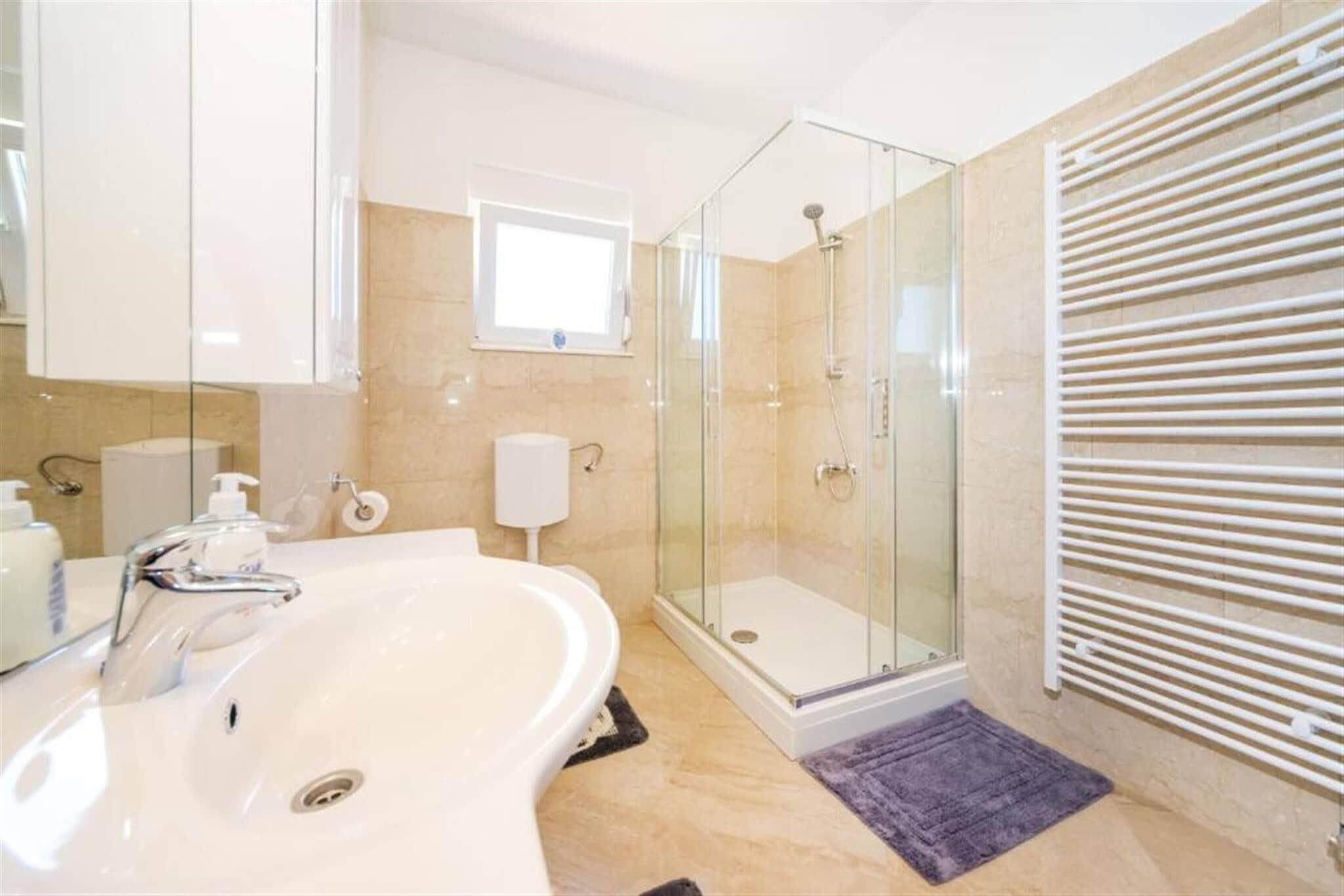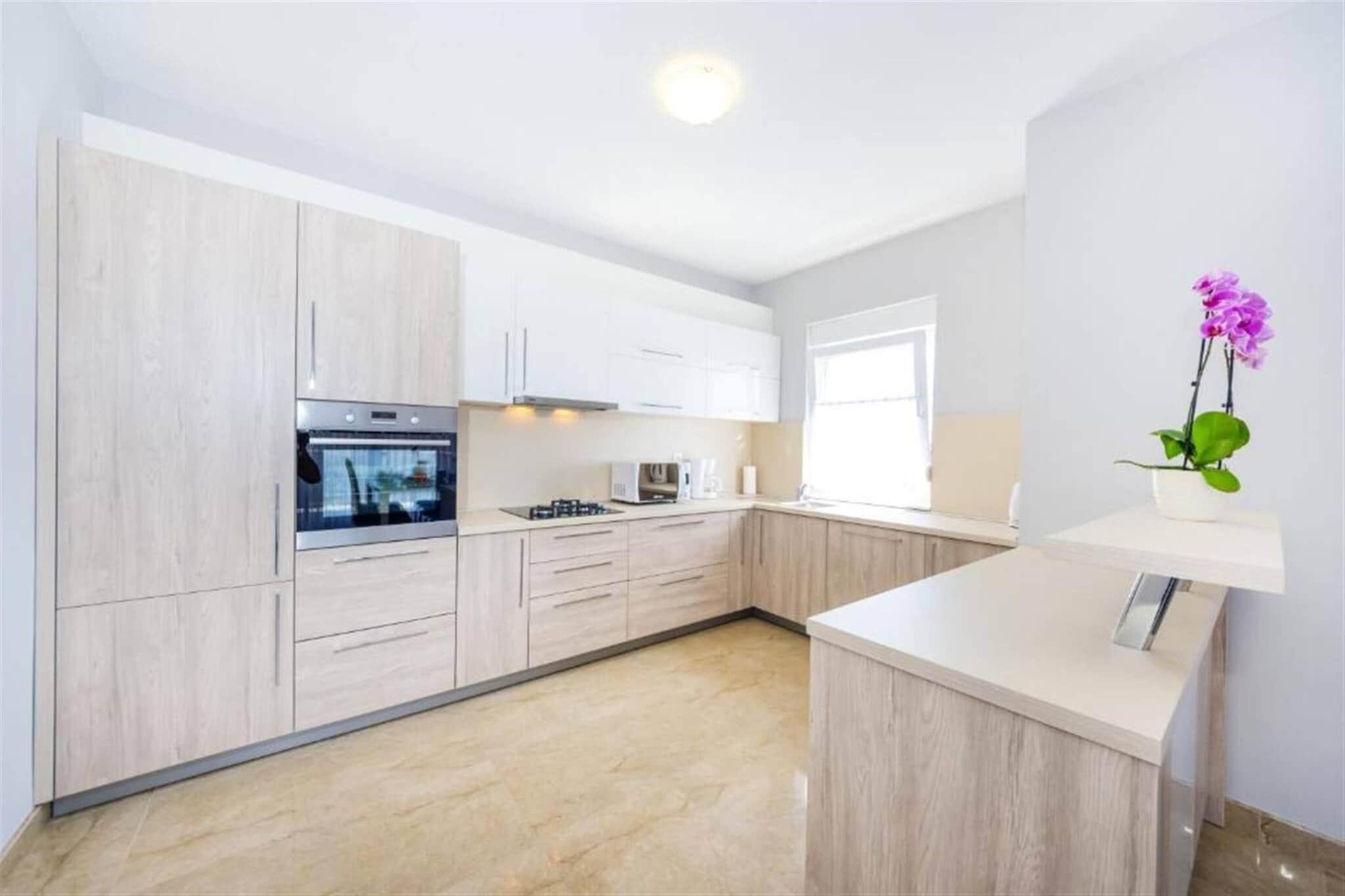 Oplev exceptionel komfort og plads i Superior Apartment Zadar, et perfekt sted for din næste familieferie. Denne rummelige lejlighed på 130 kvadratmeter i stueetagen har en fredelig beliggenhed kun 2,5 kilometer fra det livlige centrum og kan komfortabelt rumme op til seks gæster. Den tilbyder et lyst og elegant tilflugtssted for en familie eller en gruppe venner. Interiøret er omhyggeligt designet med tre moderne soveværelser, et fuldt udstyret åbent køkken og en lys opholds- og spisestue. For nemheds skyld er der et komplet badeværelse med vaskemaskine og et ekstra separat toilet. Fra stuen har du direkte adgang til en dejlig balkon møbleret med rattanstole, som er et perfekt sted til morgenkaffe eller aftendrinks. Gæsterne kan nyde vidunderlige fællesfaciliteter i den store, indhegnede have på 530 kvadratmeter. Dette inkluderer en indbydende fælles swimmingpool, der er åben i hele sommersæsonen (1. juni til 15. oktober), og en fælles terrasse med grillfaciliteter til at nyde måltider under åben himmel. Med butikker og restauranter kun 150 meter væk og Zadars gamle bydel inden for rækkevidde er beliggenheden uovertruffen. Derudover fungerer lejligheden som en ideel base for at udforske fem af Kroatiens fantastiske nationalparker - en sand velsignelse for naturelskere. For alle fremtidige gæsters bekvemmelighed bedes du bemærke, at rygning ikke er tilladt inde i lejligheden, og kæledyr er ikke tilladt på ejendommen.