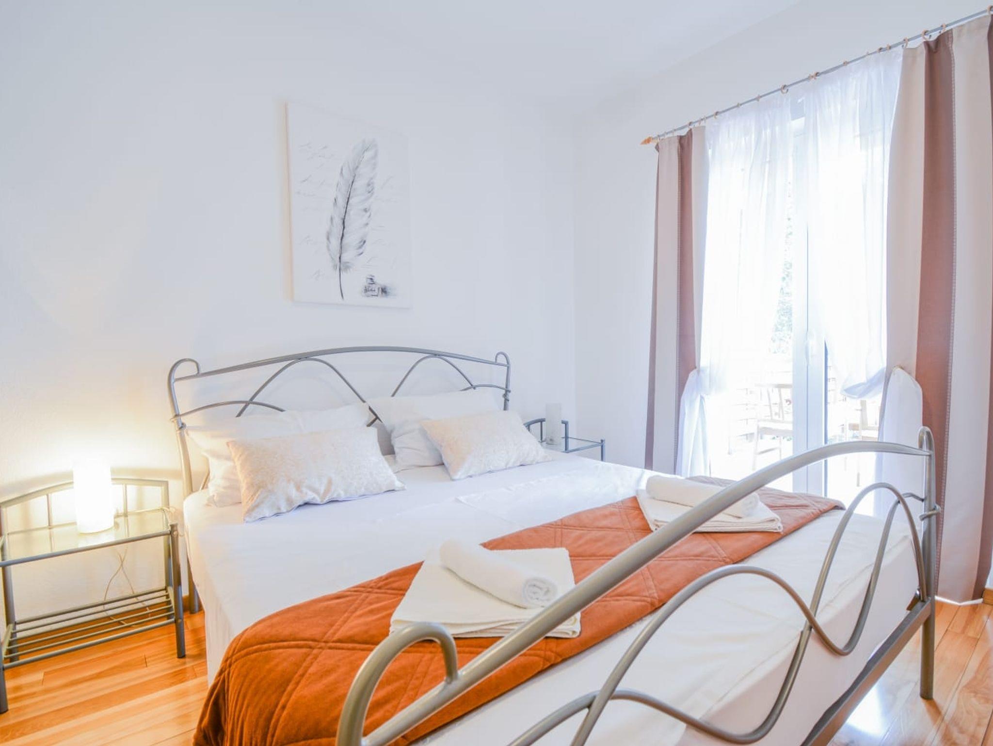 Ferienwohnung bietet Platz für 5 Gäste. Die Betten sind in Schlafzimmern, die es 2 gibt, und in Wohnzimmer, innerhalb einer Gesamtfläche von 59m2, angeordnet. Die Gäste haben eine eigene Terrasse zur Verfügung, auf der sie in warmen Sommernächten genießen können. Es ist erlaubt, Speisen auf dem Gemeinschafts-Grill vorzubereiten. In der Unterkunftseinheit besteht die Möglichkeit des Mitbringens von Haustieren gegen Aufpreis. IM PREIS INBEGRIFFEN: Kurtaxe, Endreinigung, Klimatisierung, Parkplatz, Internet, Kinderbett, Bügeleisen, Bügelbrett, Föhn. VERBINDLICHE ZUSÄTZLICHE KOSTEN: Aufzahlung für Kurzaufenthalte (prozentualer Zuschlag pro Nächtigungsanzahl: 30% - 1, 20% - 2, 10% - 3). UNVERBINDLICHE ZUSÄTZLICHE KOSTEN: Haustiere (10,00 € pro Nacht), Zusatzbett (10,00 € pro Nacht). Die Verfügbarkeit zusätzlicher Dienstleistungen in Ihrem reservierten Termin und die Preise derselben (falls nicht aufgeführt) müssen im Voraus überprüft werden. Zusätzliche Dienstleistungen die in der Zahlungsaufforderung nicht aufgeführt sind werden direkt beim Vermieter bezahlt, angenommen der Gast nutzt auch diese. Ermäßigung auf den Grundpreis: Gratistag 14=13 (bei einem Aufenthalt von 14 Tagen oder mehr erhalten Sie einen Gratistag für den Aufenthalt bis 31.12.26).