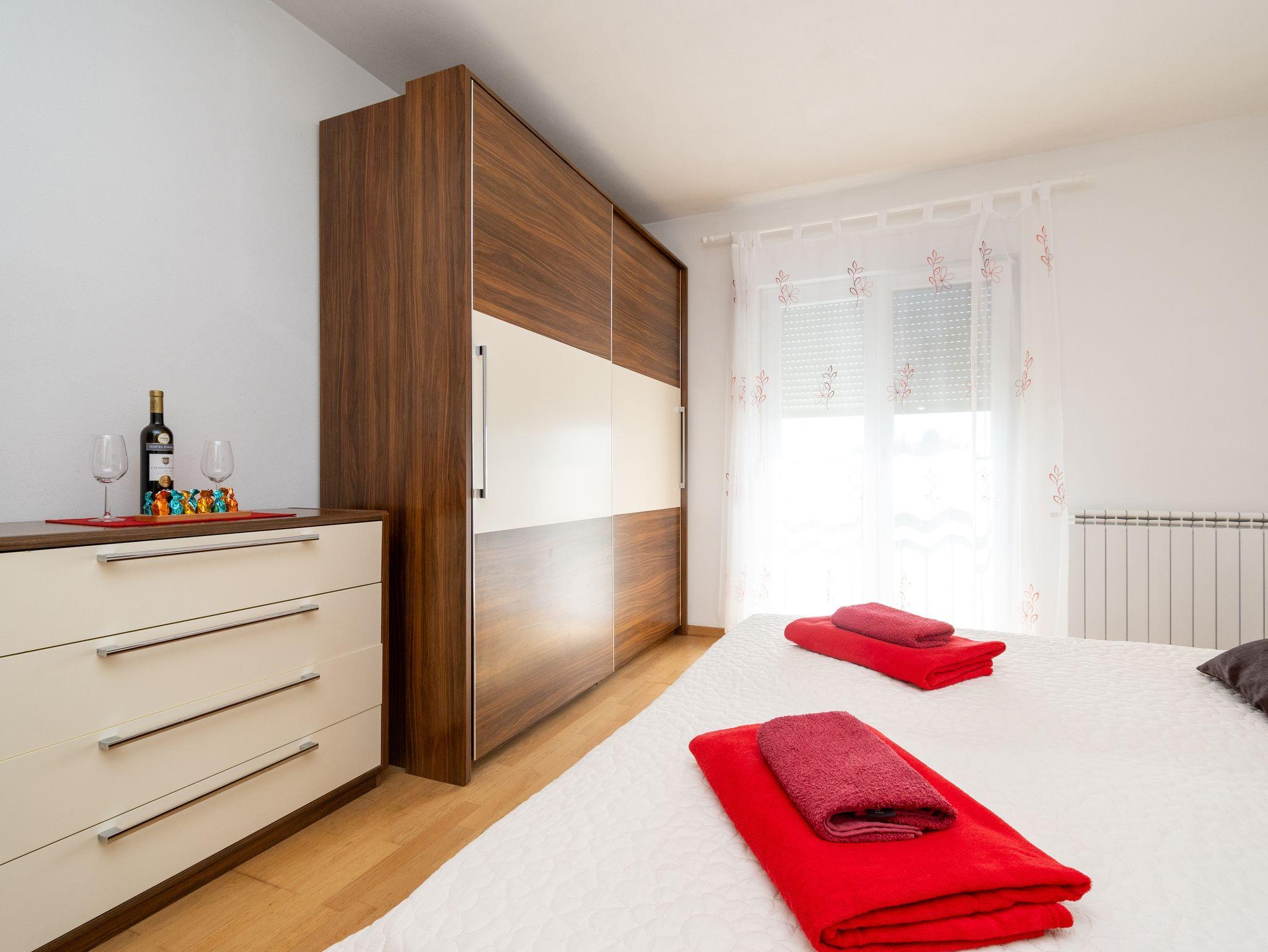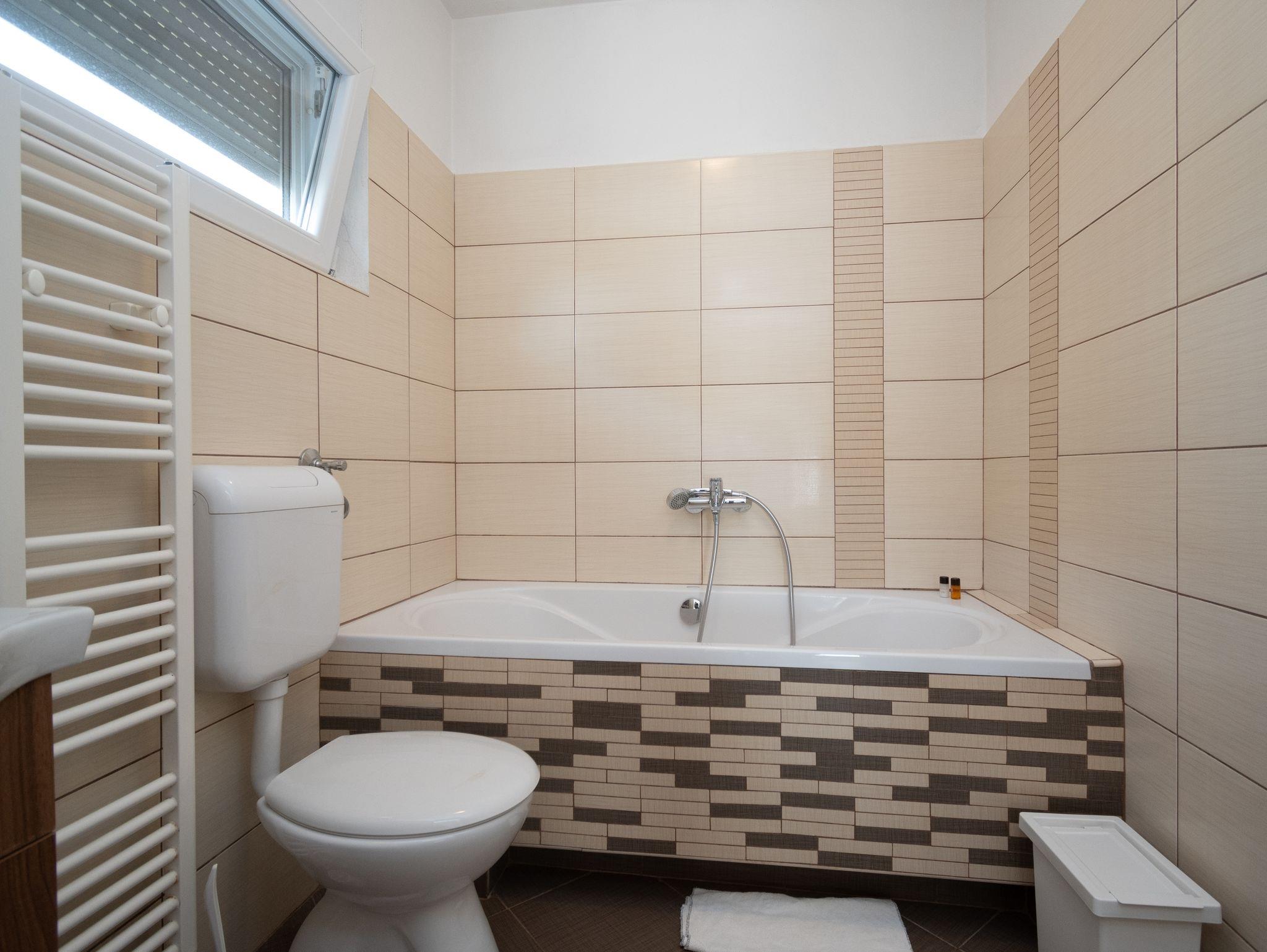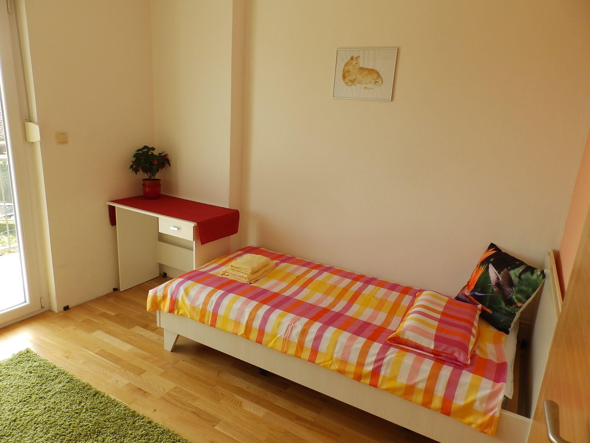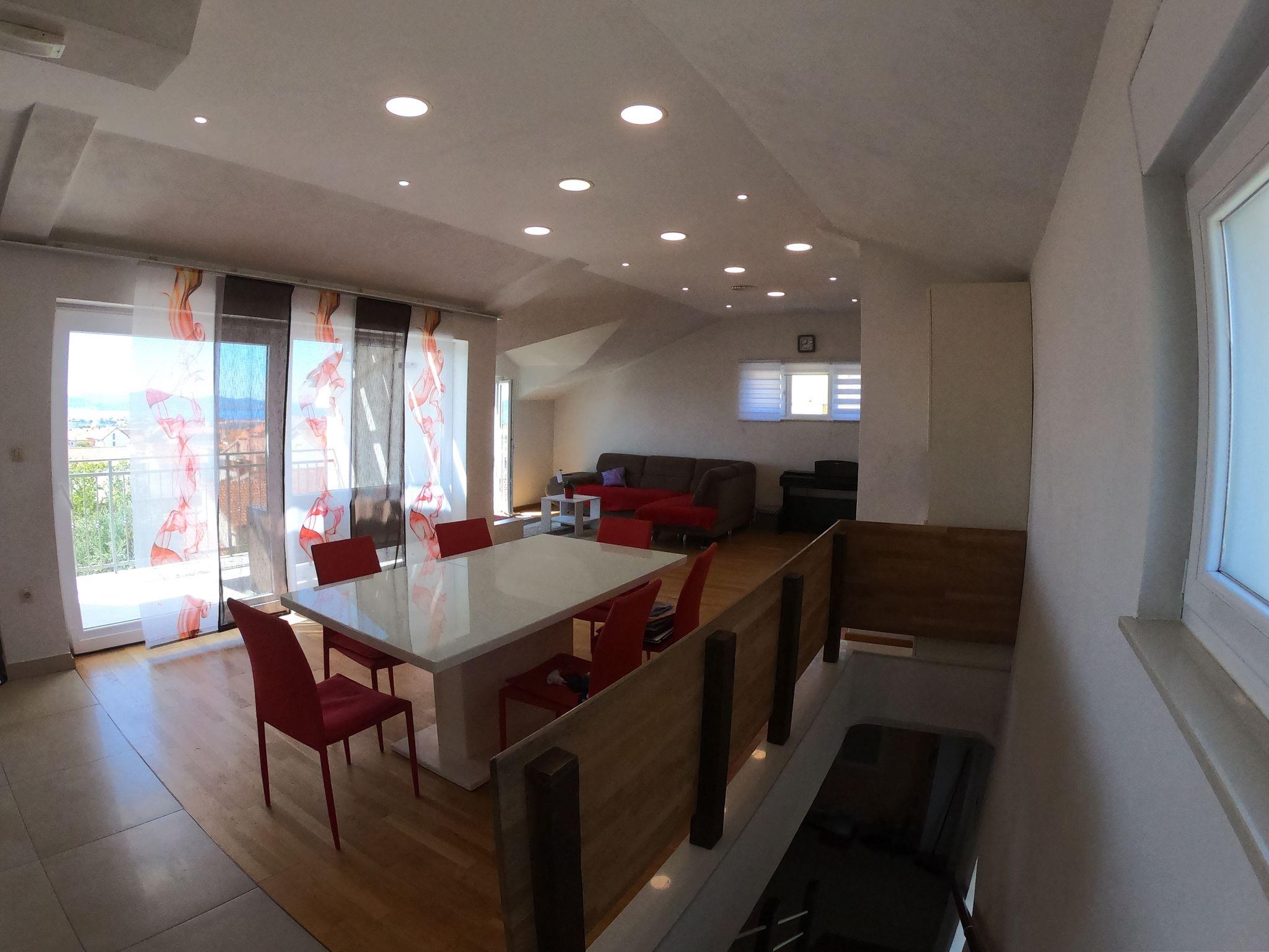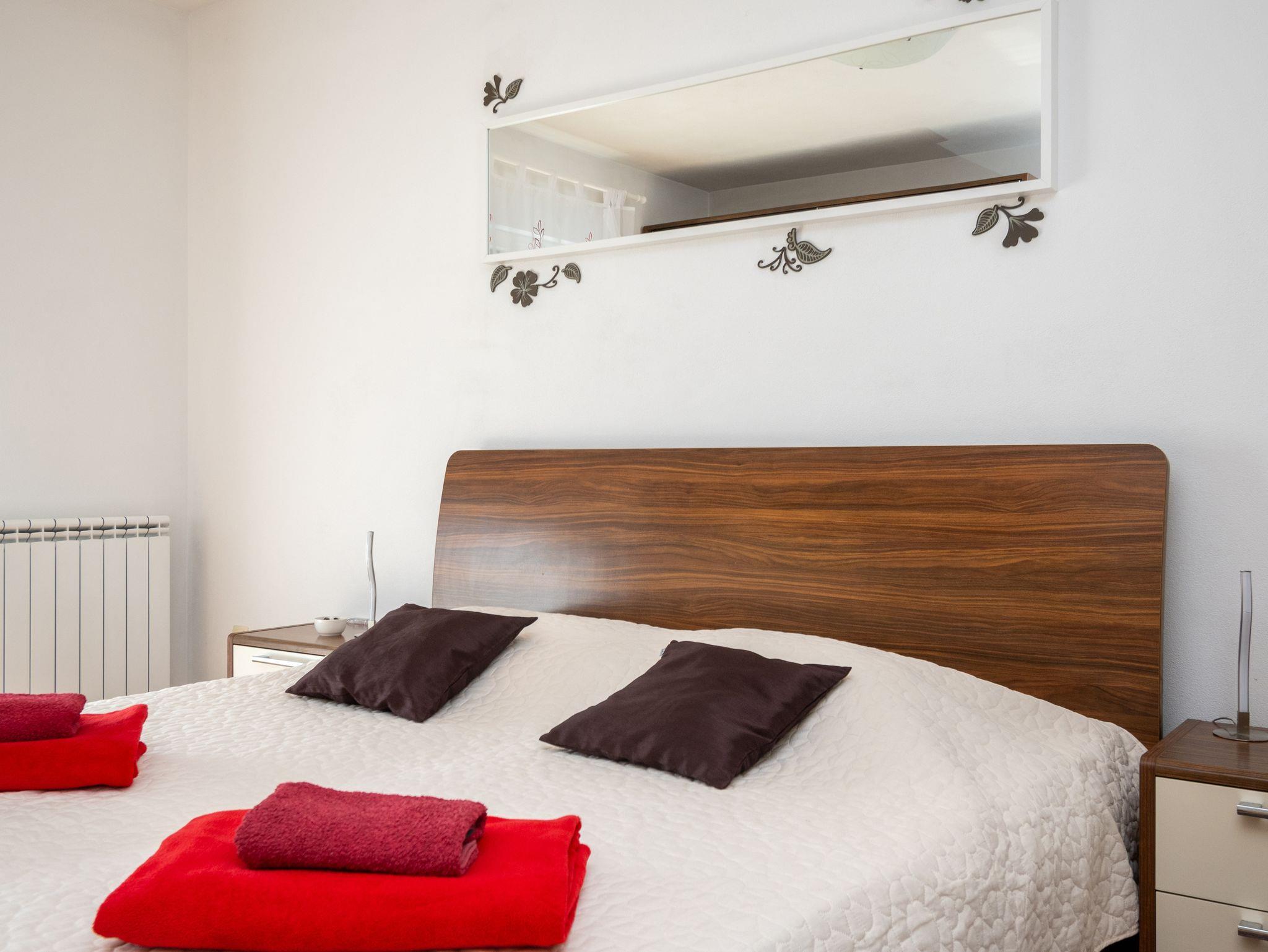 Haus bietet Platz für 8 Gäste. Die Betten sind in Schlafzimmern, die es 3 gibt, und in Wohnzimmer, innerhalb einer Gesamtfläche von 110m2, angeordnet. Die Gäste haben eine eigene Terrasse zur Verfügung, auf der sie in warmen Sommernächten genießen können. Das Haus bietet Meerblick. Für vollen Genuss und Entspannung gibt es einen privaten Grill für Gäste dieser Unterkunft. In der Unterkunftseinheit besteht die Möglichkeit des Mitbringens von Haustieren gegen Aufpreis. IM PREIS INBEGRIFFEN: Kurtaxe, Endreinigung, Klimatisierung, Parkplatz, Internet, Kinderbett, Bügeleisen, Bügelbrett, Föhn, Sonnenschirm, Liegestühle. VERBINDLICHE ZUSÄTZLICHE KOSTEN: Aufzahlung für Kurzaufenthalte (prozentualer Zuschlag pro Nächtigungsanzahl: 30% - 1, 20% - 2, 10% - 3). UNVERBINDLICHE ZUSÄTZLICHE KOSTEN: Haustiere (5,00 € pro Nacht). Die Verfügbarkeit zusätzlicher Dienstleistungen in Ihrem reservierten Termin und die Preise derselben (falls nicht aufgeführt) müssen im Voraus überprüft werden. Zusätzliche Dienstleistungen die in der Zahlungsaufforderung nicht aufgeführt sind werden direkt beim Vermieter bezahlt, angenommen der Gast nutzt auch diese. Ermäßigung auf den Grundpreis: Gratistag 14=13 (bei einem Aufenthalt von 14 Tagen oder mehr erhalten Sie einen Gratistag für den Aufenthalt bis 31.12.26).