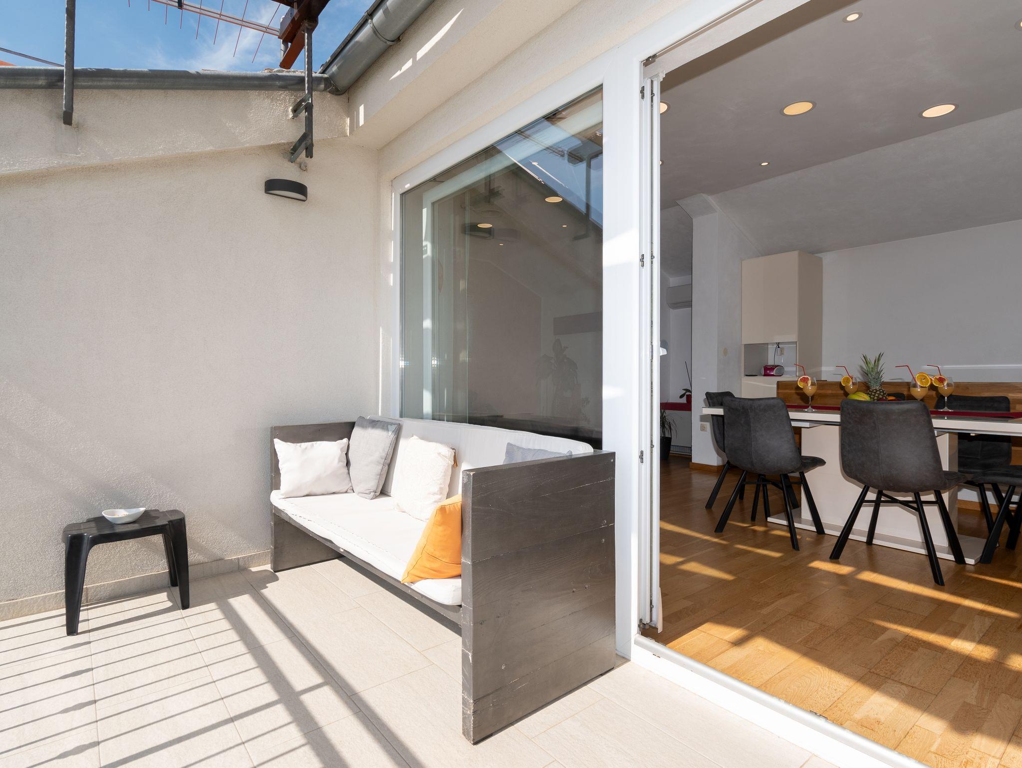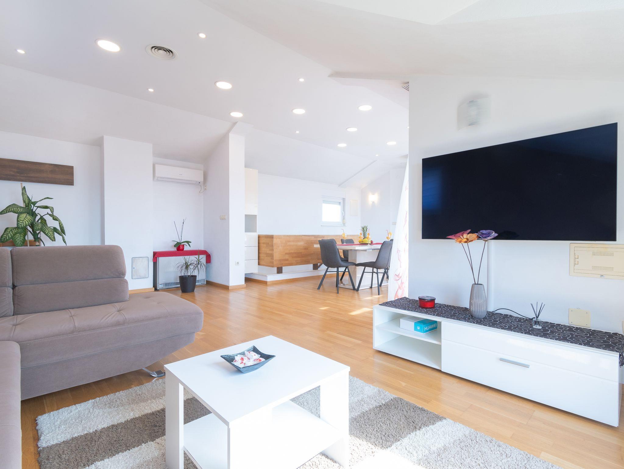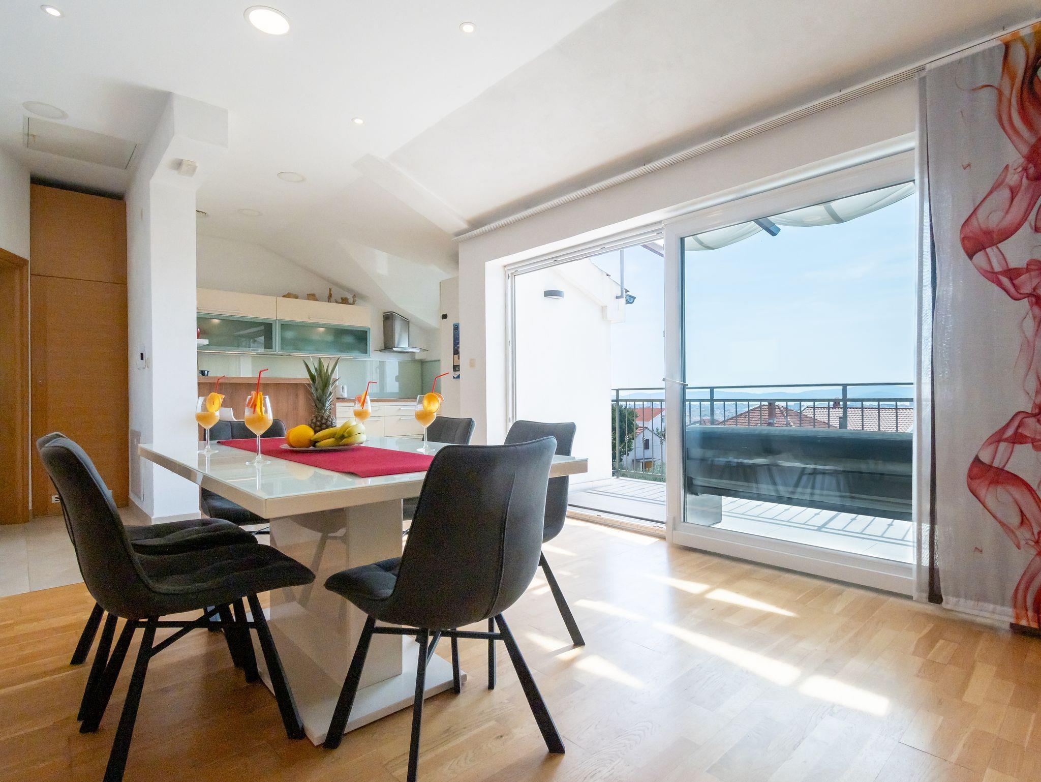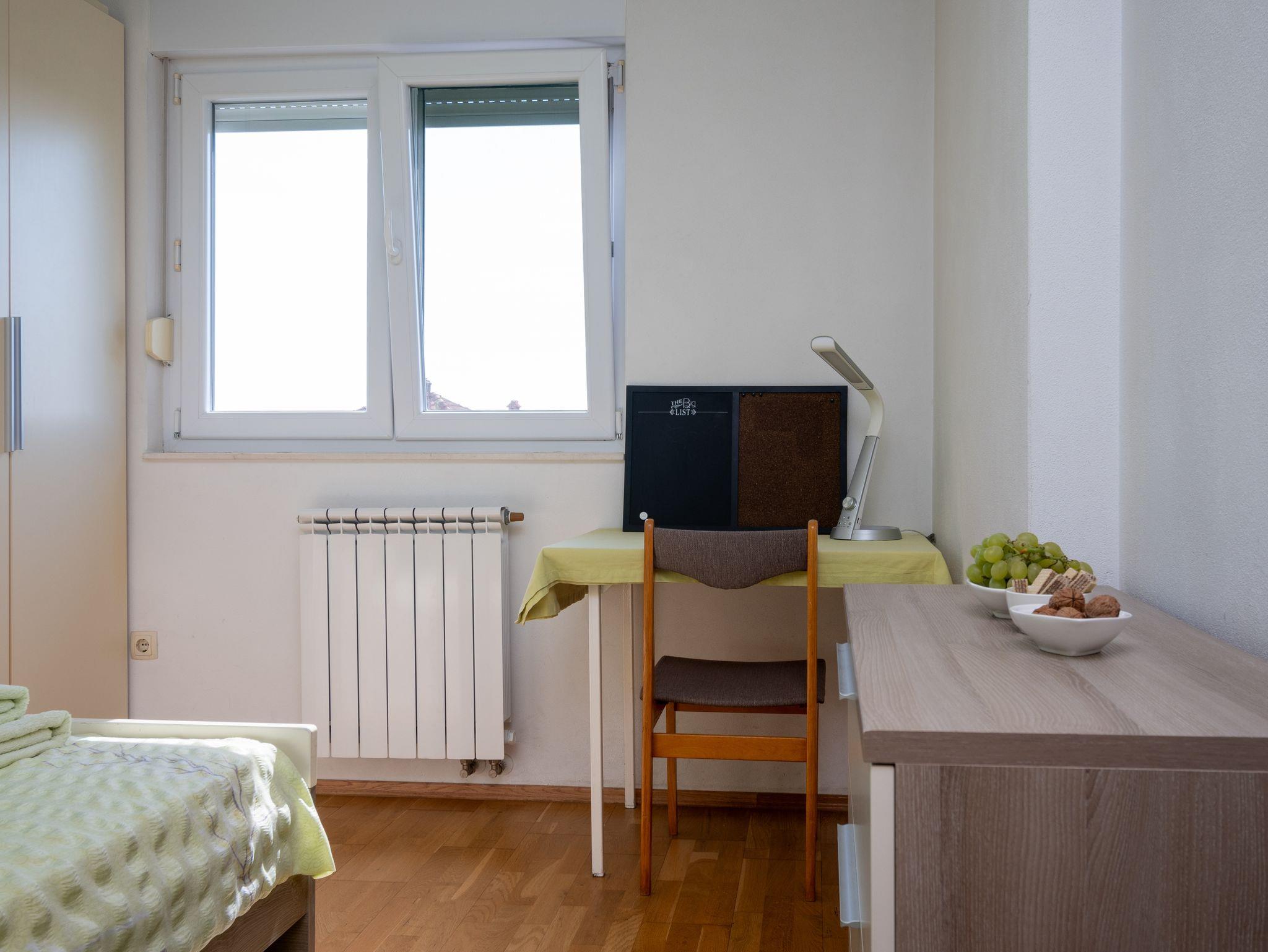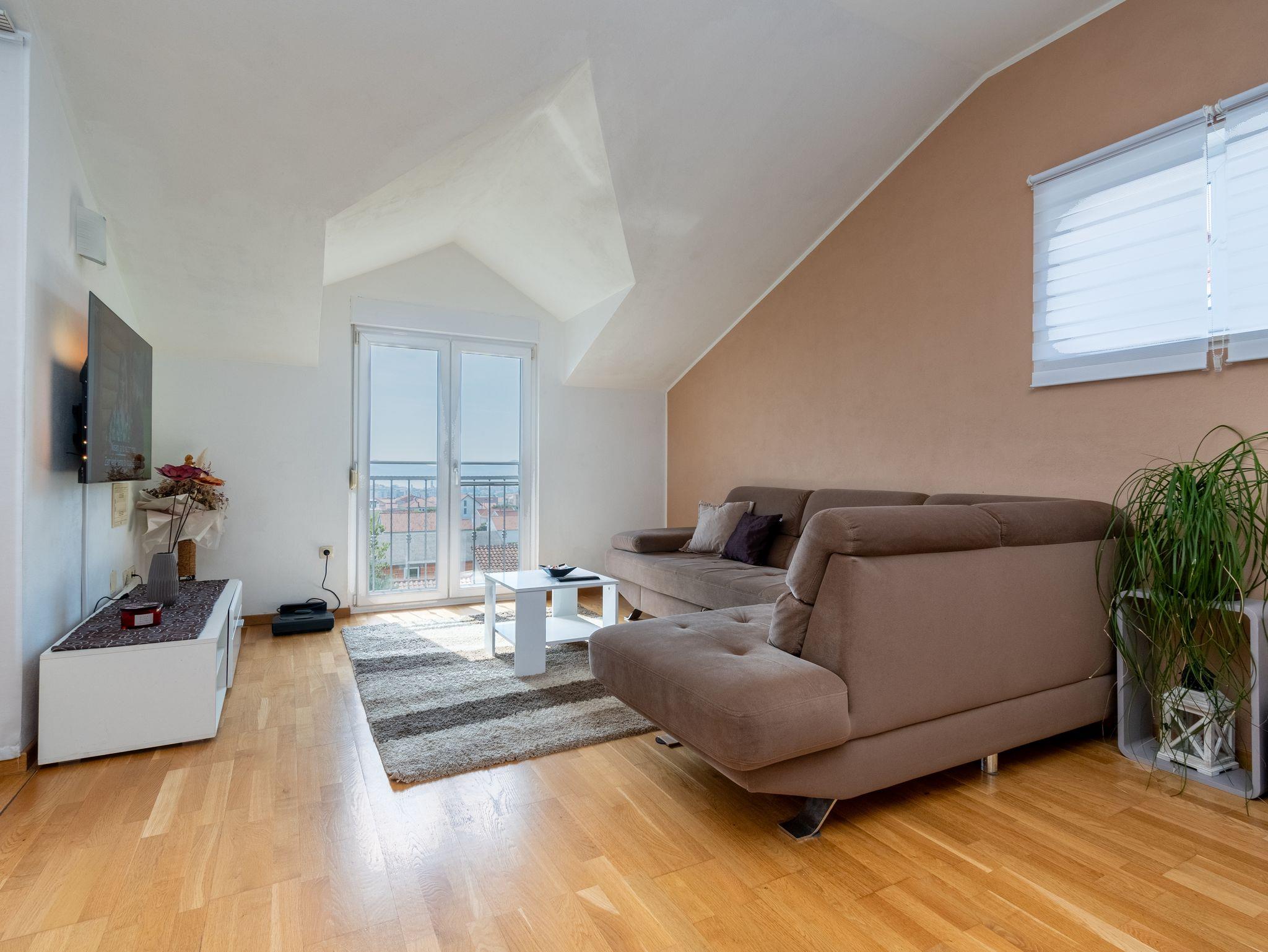 Haus bietet Platz für 8 Gäste. Die Betten sind in Schlafzimmern, die es 3 gibt, und in Wohnzimmer, innerhalb einer Gesamtfläche von 110m2, angeordnet. Die Gäste haben eine eigene Terrasse zur Verfügung, auf der sie in warmen Sommernächten genießen können. Das Haus bietet Meerblick. Für vollen Genuss und Entspannung gibt es einen privaten Grill für Gäste dieser Unterkunft. In der Unterkunftseinheit besteht die Möglichkeit des Mitbringens von Haustieren gegen Aufpreis. IM PREIS INBEGRIFFEN: Kurtaxe, Endreinigung, Klimatisierung, Parkplatz, Internet, Kinderbett, Bügeleisen, Bügelbrett, Föhn, Sonnenschirm, Liegestühle. VERBINDLICHE ZUSÄTZLICHE KOSTEN: Aufzahlung für Kurzaufenthalte (prozentualer Zuschlag pro Nächtigungsanzahl: 30% - 1, 20% - 2, 10% - 3). UNVERBINDLICHE ZUSÄTZLICHE KOSTEN: Haustiere (5,00 € pro Nacht). Die Verfügbarkeit zusätzlicher Dienstleistungen in Ihrem reservierten Termin und die Preise derselben (falls nicht aufgeführt) müssen im Voraus überprüft werden. Zusätzliche Dienstleistungen die in der Zahlungsaufforderung nicht aufgeführt sind werden direkt beim Vermieter bezahlt, angenommen der Gast nutzt auch diese. Ermäßigung auf den Grundpreis: Gratistag 14=13 (bei einem Aufenthalt von 14 Tagen oder mehr erhalten Sie einen Gratistag für den Aufenthalt bis 31.12.26).