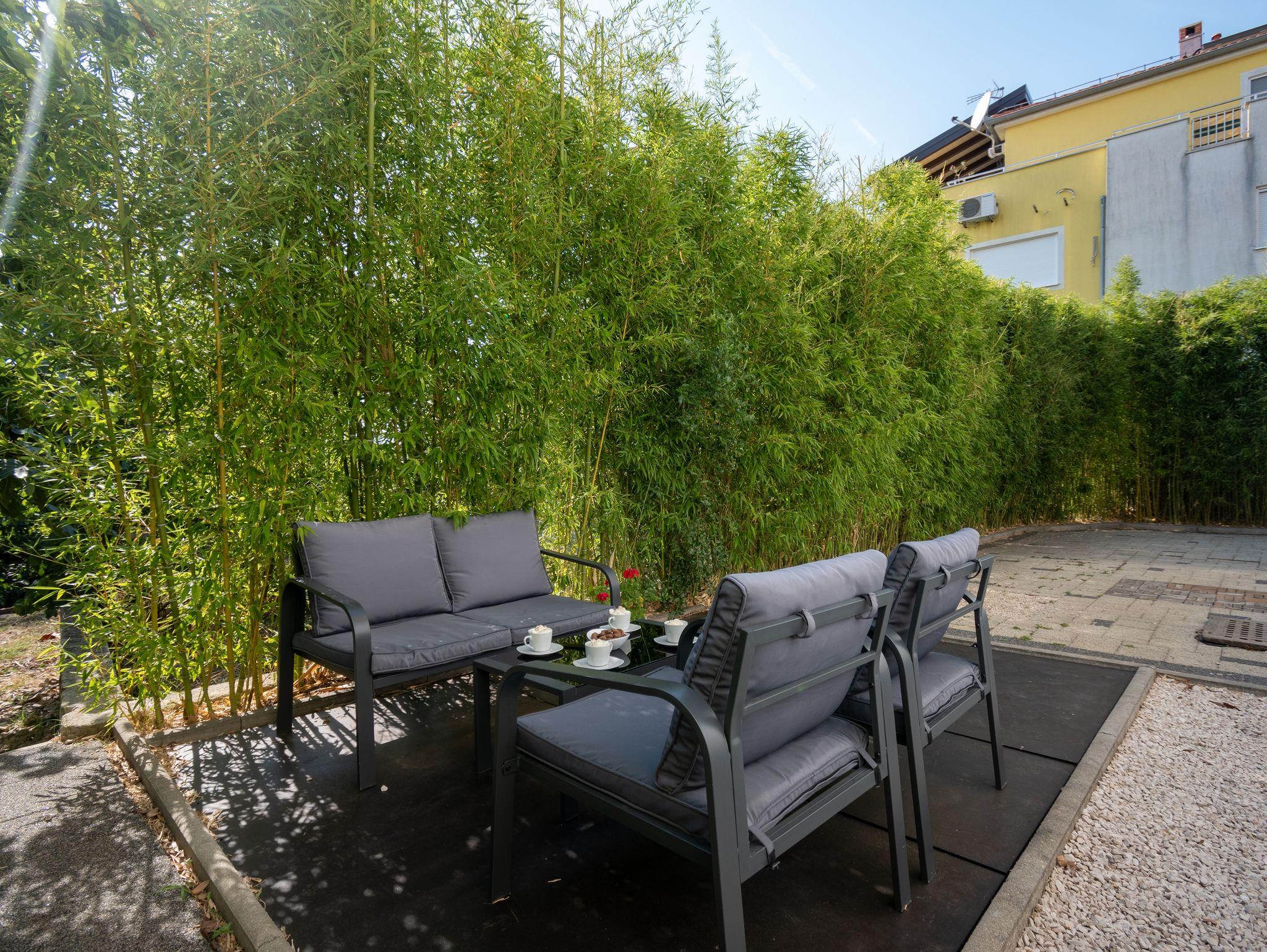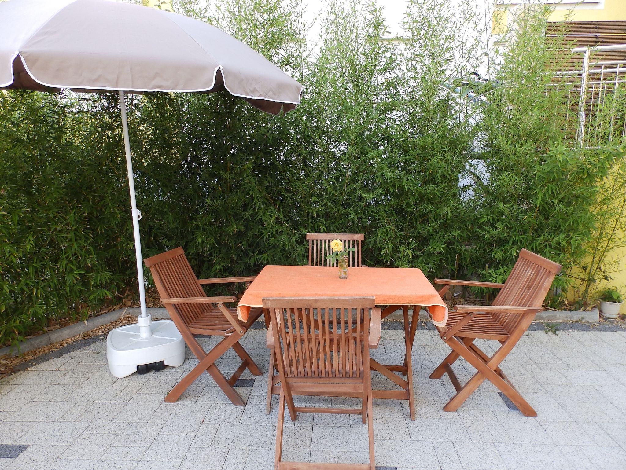 Hof (100m2, Sitzbereich), Parkplatz (Anzahl der Parkplätze: 4, Entfernung vom Objekt: im Hof), WiFi Internet, Föhn, Bügeleisen, Bügelbrett, Sonnenschirm, Liegestühle, Kinderbett