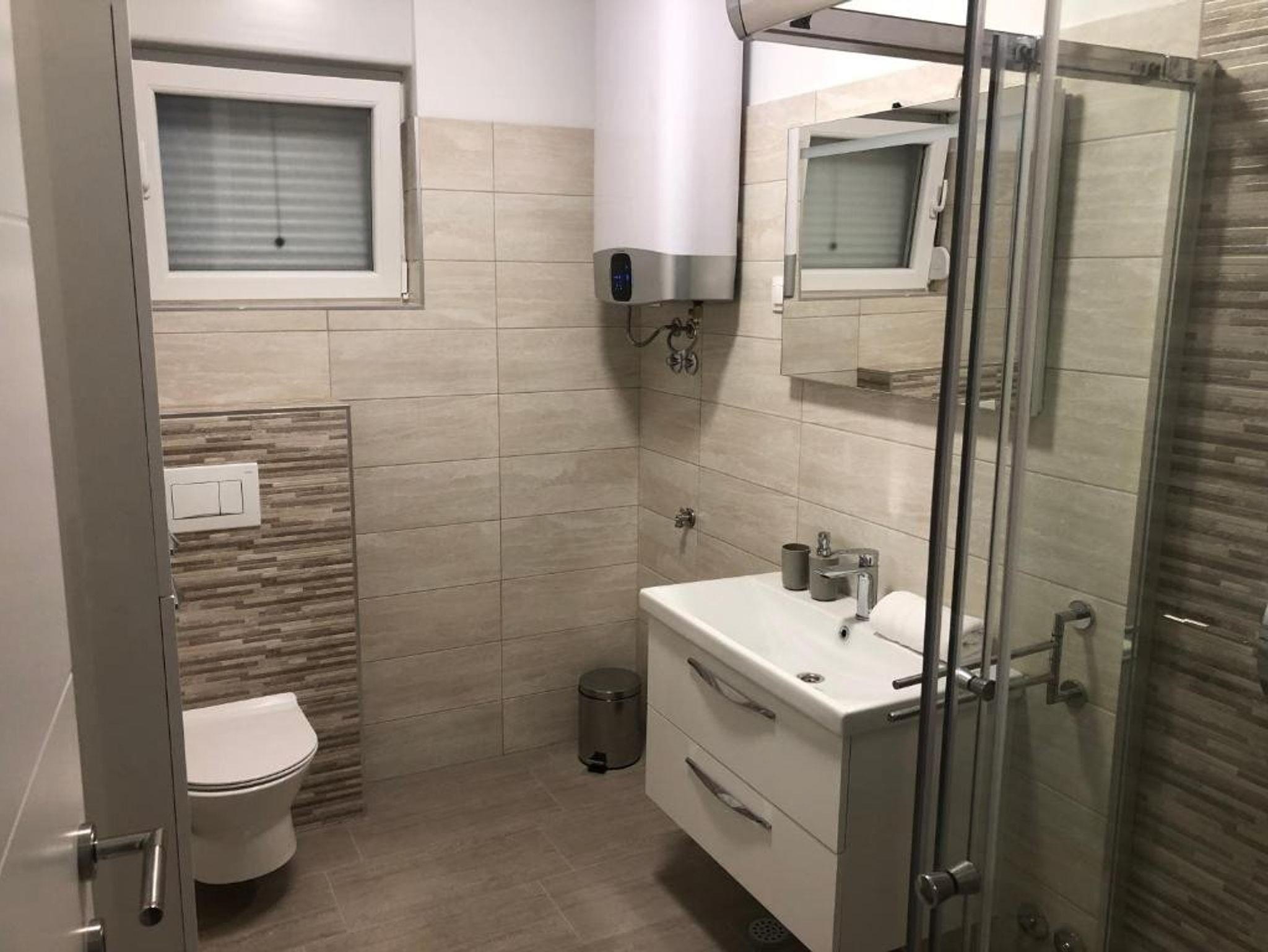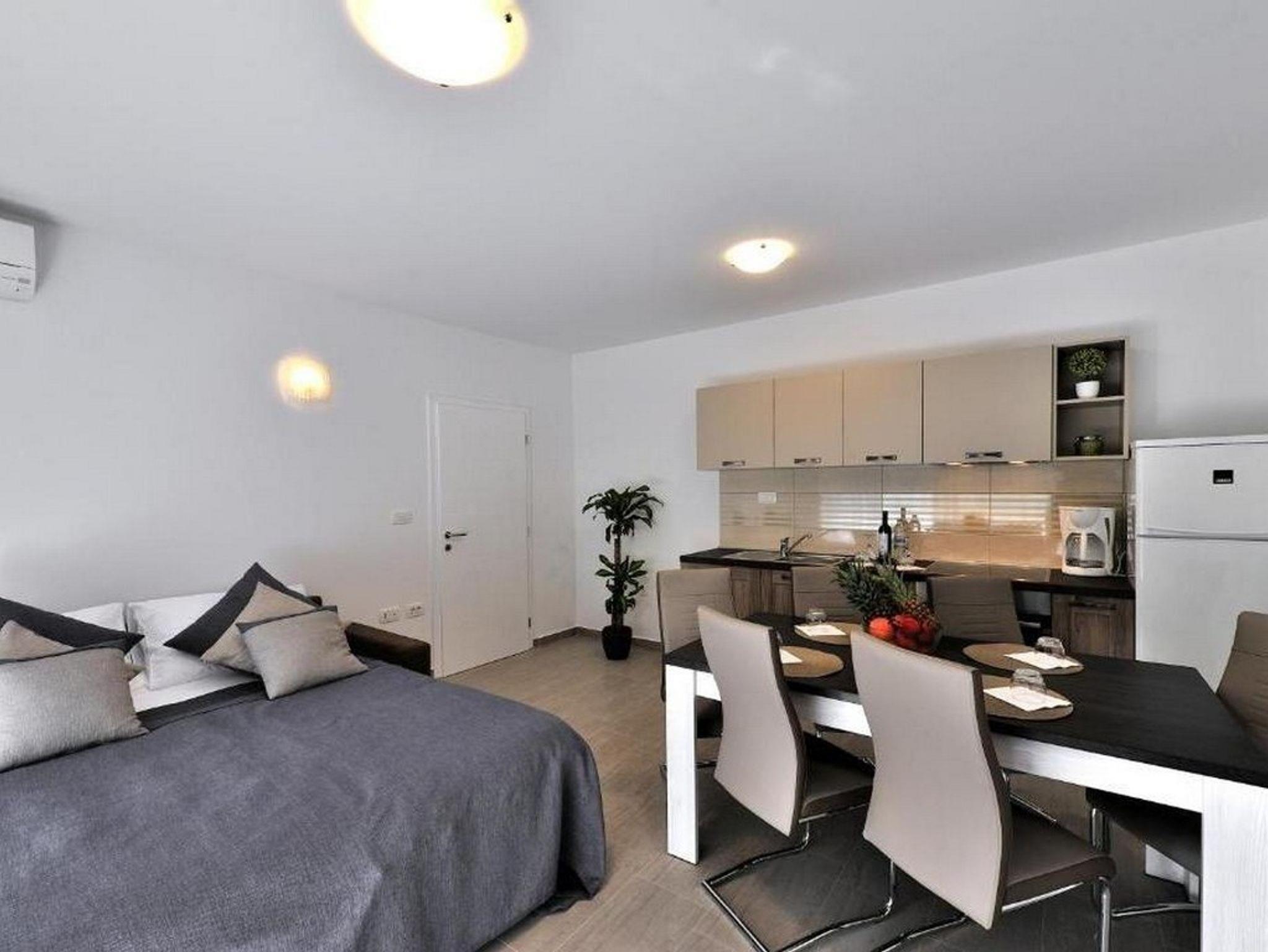 Ferienwohnung bietet Platz für 5 Gäste. Die Betten sind in Schlafzimmern, die es 1 gibt, und in Wohnzimmer, innerhalb einer Gesamtfläche von 45m2, angeordnet. Die Gäste haben einen eigenen Balkon zur Verfügung, auf der sie in warmen Sommernächten genießen können. Das Apartment bietet Meerblick. Es ist erlaubt, Speisen auf dem Gemeinschafts-Grill vorzubereiten. IM PREIS INBEGRIFFEN: Kurtaxe, Endreinigung, Klimatisierung, Parkplatz, Internet, Kinderbett, Bügeleisen, Bügelbrett, Föhn, tragbarer Grill. VERBINDLICHE ZUSÄTZLICHE KOSTEN: Aufzahlung für Kurzaufenthalte (prozentualer Zuschlag pro Nächtigungsanzahl: 30% - 1, 20% - 2, 10% - 3). Die Verfügbarkeit zusätzlicher Dienstleistungen in Ihrem reservierten Termin und die Preise derselben (falls nicht aufgeführt) müssen im Voraus überprüft werden. Zusätzliche Dienstleistungen die in der Zahlungsaufforderung nicht aufgeführt sind werden direkt beim Vermieter bezahlt, angenommen der Gast nutzt auch diese. Ermäßigung auf den Grundpreis: Gratistag 14=13 (bei einem Aufenthalt von 14 Tagen oder mehr erhalten Sie einen Gratistag für den Aufenthalt bis 31.12.26).