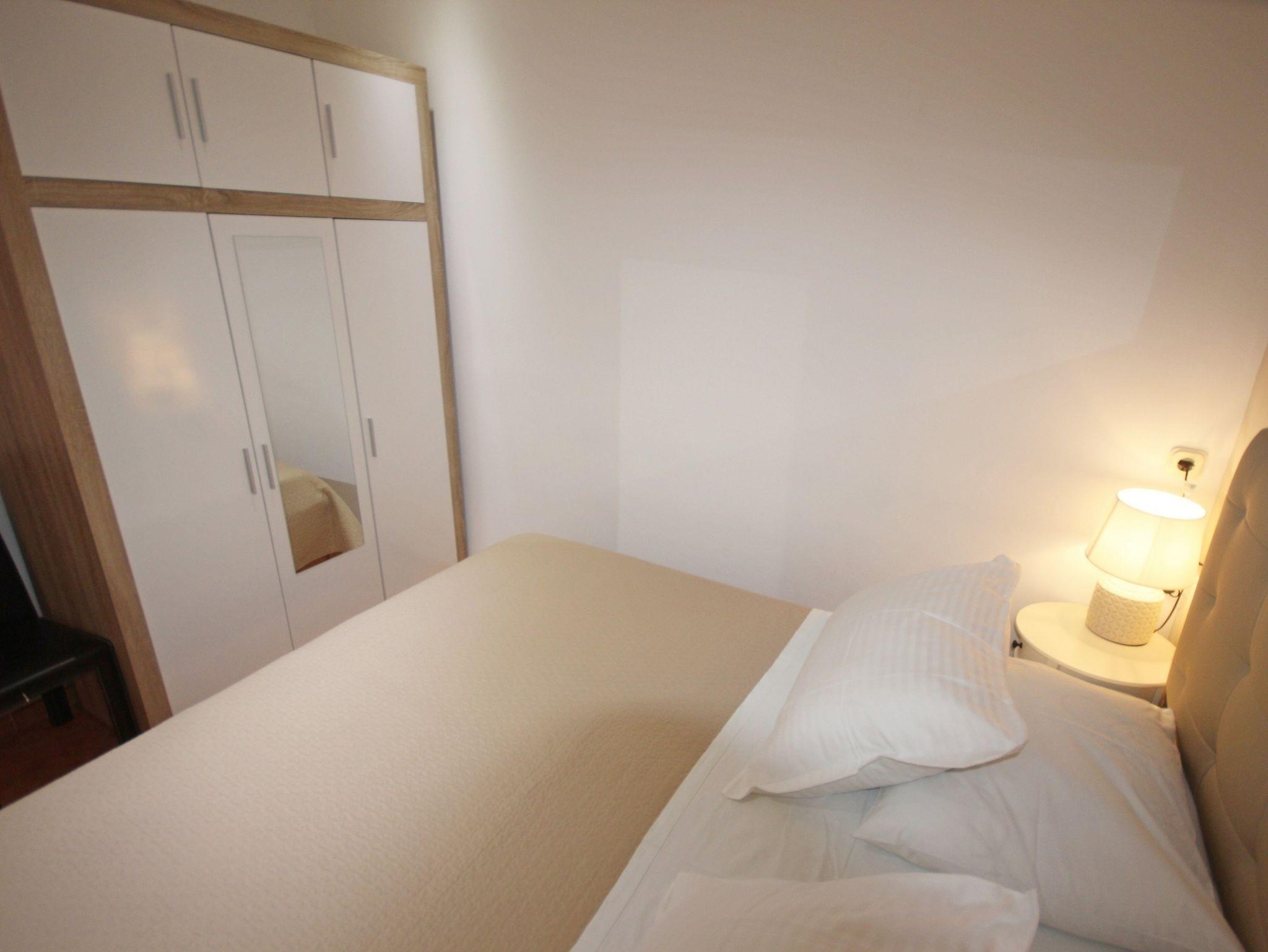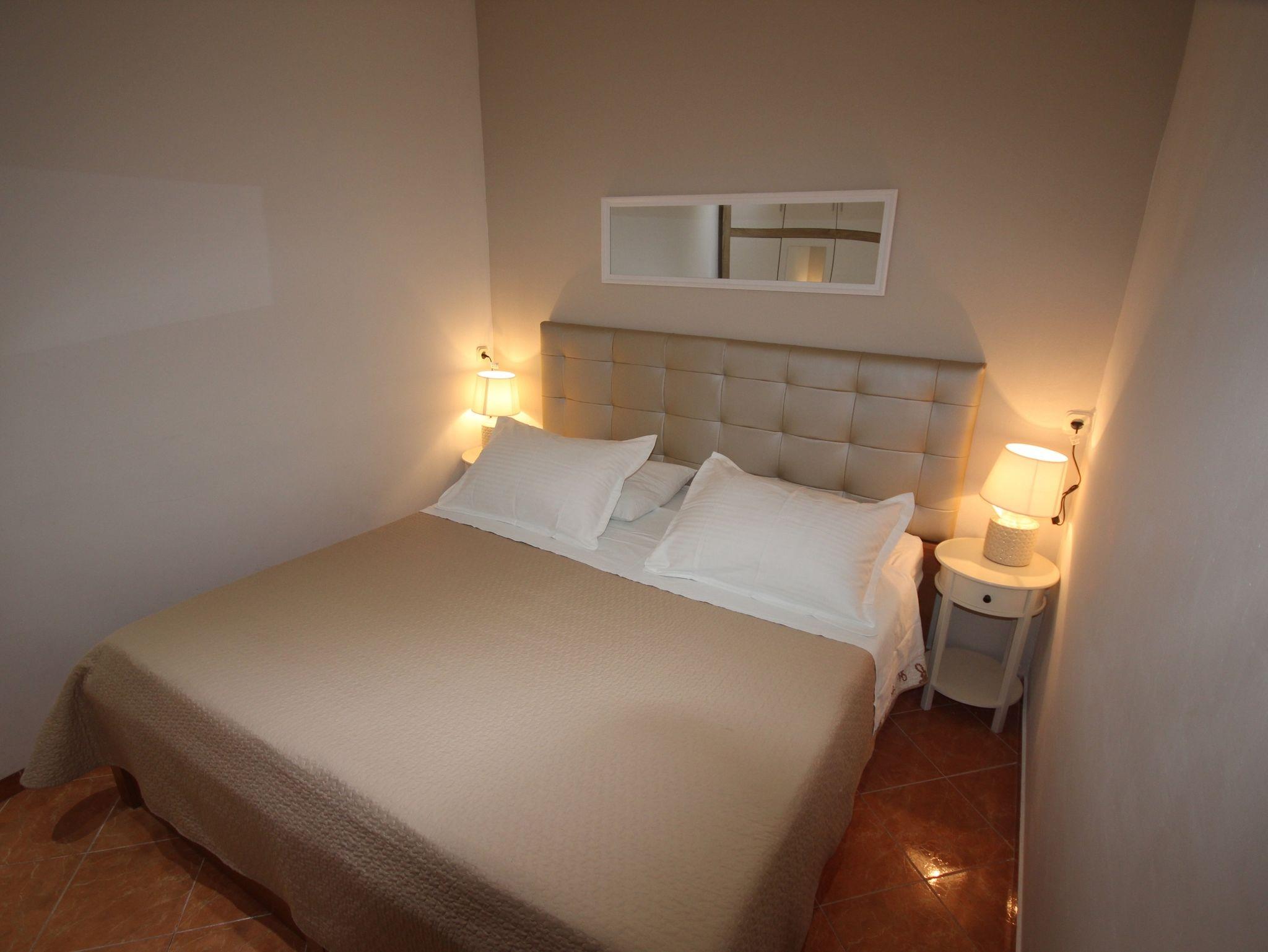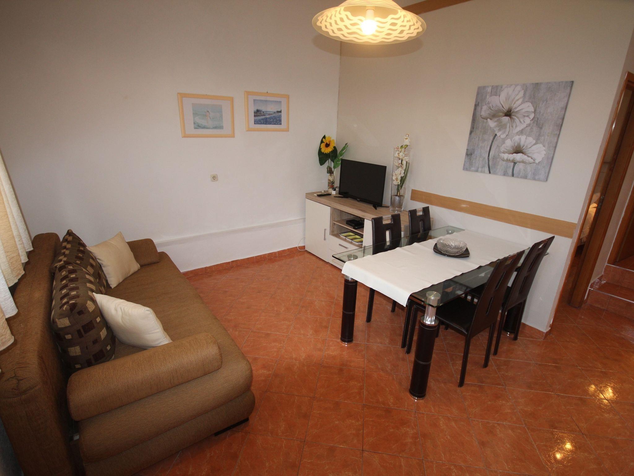 Ferienwohnung bietet Platz für 4 Gäste. Die Betten sind in Schlafzimmern, die es 1 gibt, und in Wohnzimmer, innerhalb einer Gesamtfläche von 33m2, angeordnet. Die Gäste haben eine eigene Terrasse zur Verfügung, auf der sie in warmen Sommernächten genießen können. Es ist erlaubt, Speisen auf dem Gemeinschafts-Grill vorzubereiten. In der Unterkunftseinheit besteht die Möglichkeit des Mitbringens von Haustieren gegen Aufpreis. IM PREIS INBEGRIFFEN: Kurtaxe, Endreinigung, Klimatisierung, Parkplatz, Internet, Bügeleisen, Bügelbrett, Föhn. VERBINDLICHE ZUSÄTZLICHE KOSTEN: Aufzahlung für Kurzaufenthalte (prozentualer Zuschlag pro Nächtigungsanzahl: 30% - 1, 20% - 2, 10% - 3). UNVERBINDLICHE ZUSÄTZLICHE KOSTEN: Haustiere (6,00 € pro Nacht). Die Verfügbarkeit zusätzlicher Dienstleistungen in Ihrem reservierten Termin und die Preise derselben (falls nicht aufgeführt) müssen im Voraus überprüft werden. Zusätzliche Dienstleistungen die in der Zahlungsaufforderung nicht aufgeführt sind werden direkt beim Vermieter bezahlt, angenommen der Gast nutzt auch diese.