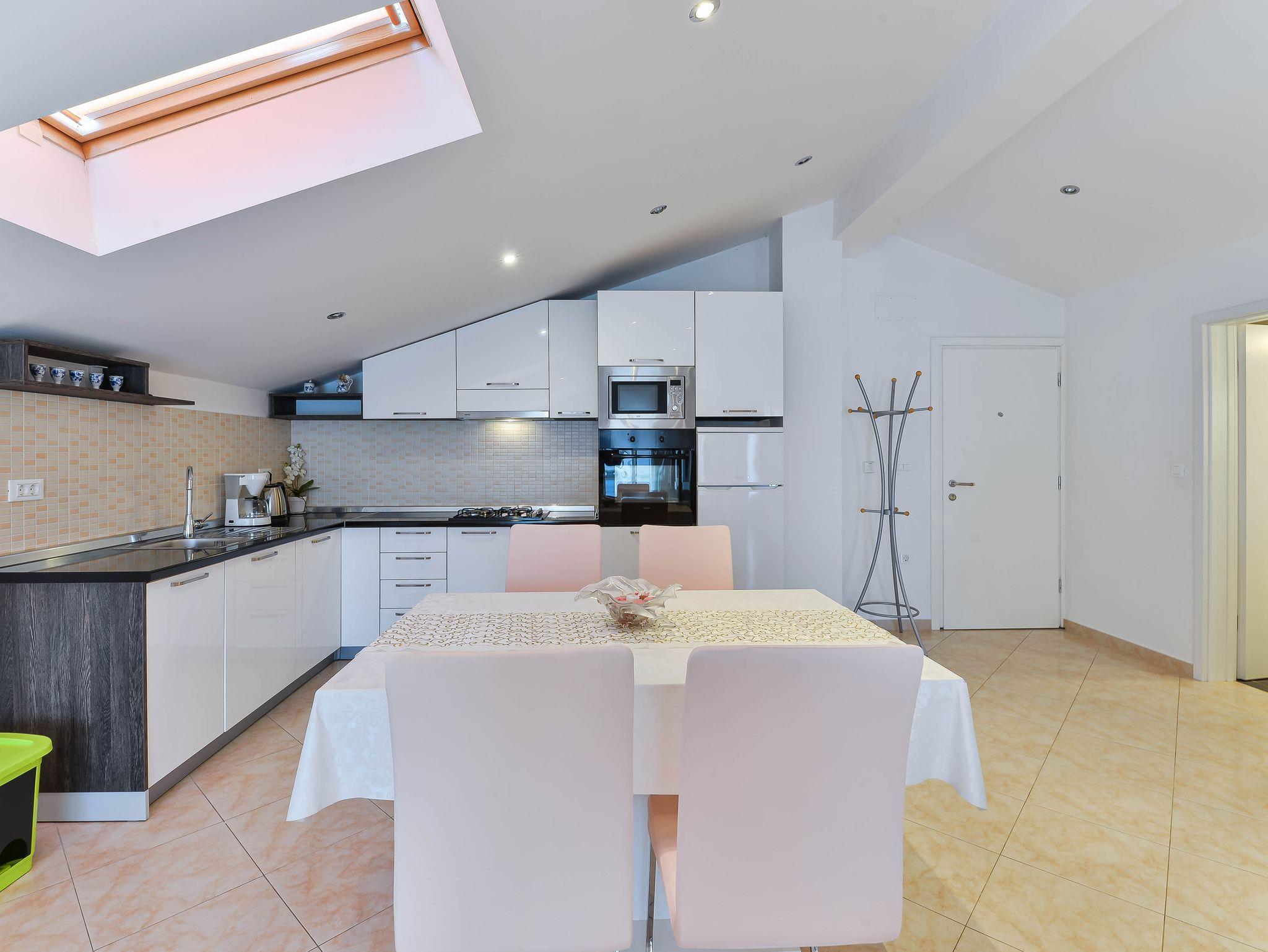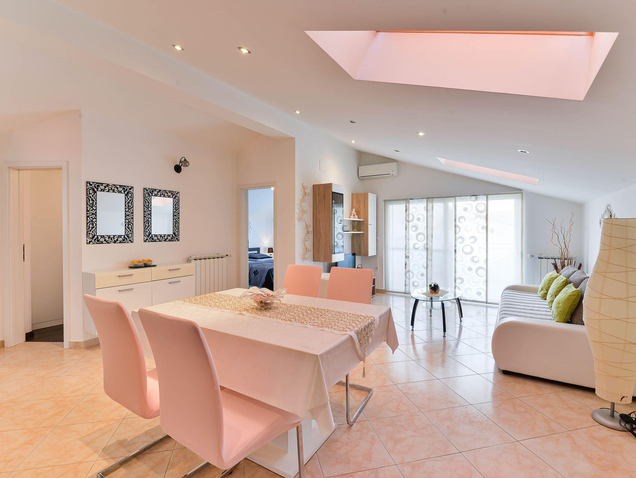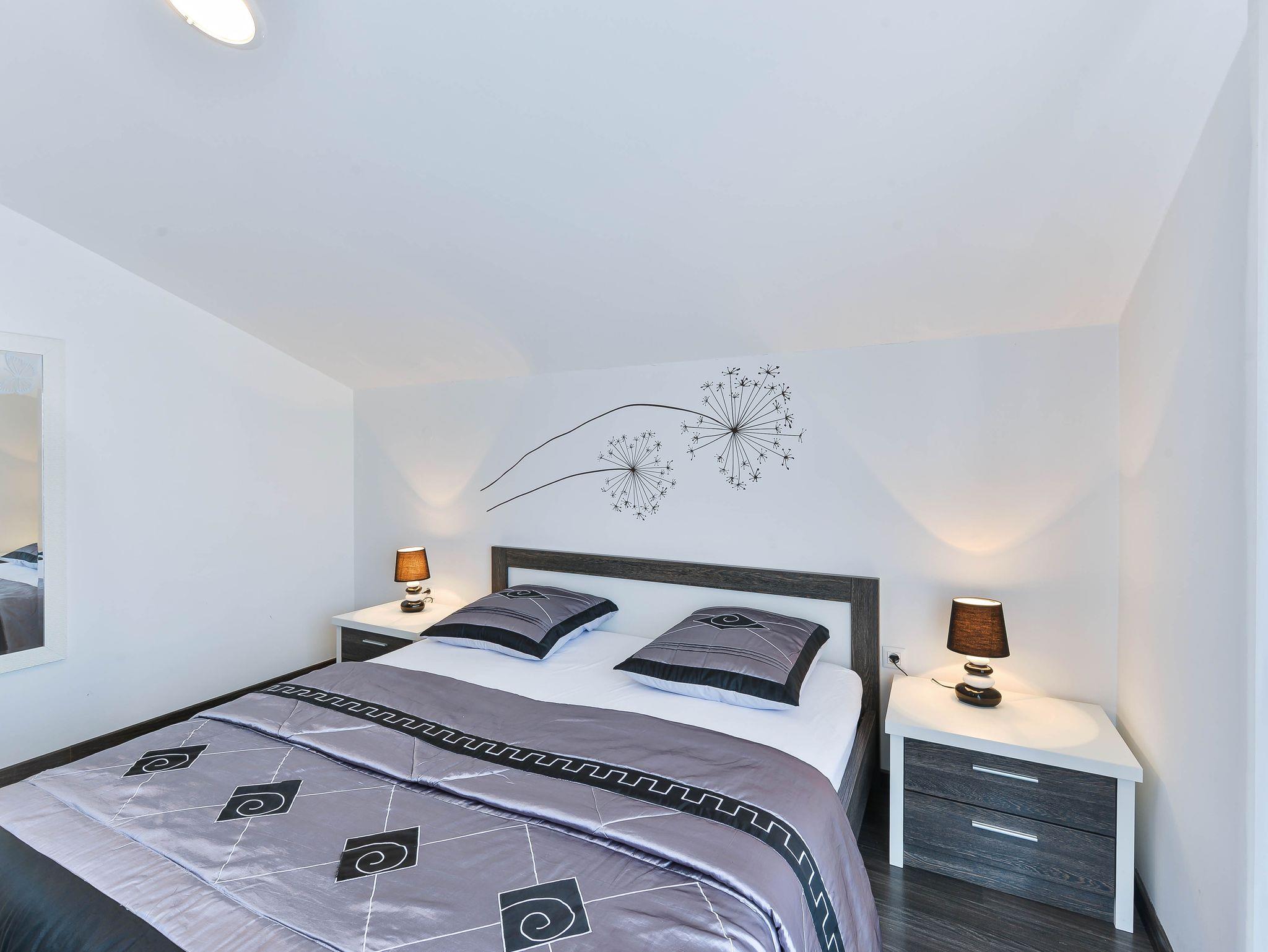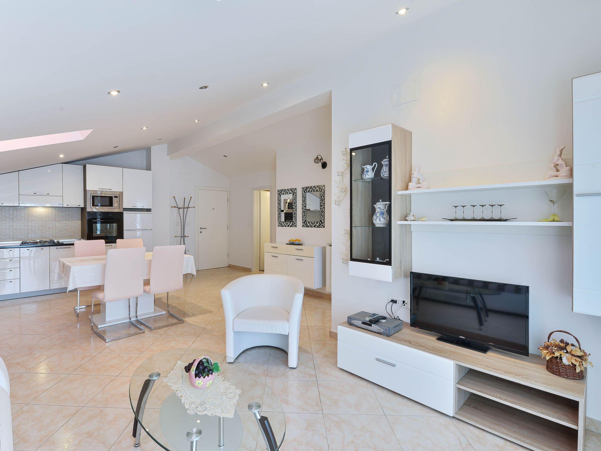 Ferienwohnung bietet Platz für 4 Gäste. Die Betten sind in Schlafzimmern, die es 2 gibt, innerhalb einer Gesamtfläche von 65m2, angeordnet. Die Gäste haben eine eigene Terrasse zur Verfügung, auf der sie in warmen Sommernächten genießen können. Es ist erlaubt, Speisen auf dem Gemeinschafts-Grill vorzubereiten. Während ihres Aufenthalts können Gäste das gemeinsam zur Nutzung stehende Schwimmbad benutzen. In der gebuchten Unterkunftseinheit zahlt man am Ort ein Depositum ( der Preis ist an der Internetseite angeführt ). IM PREIS INBEGRIFFEN: Kurtaxe, Endreinigung, Klimatisierung, Pool, Parkplatz, Internet, Kinderbett, Bügeleisen, Bügelbrett, Föhn, tragbarer Grill. VERBINDLICHE ZUSÄTZLICHE KOSTEN: Kaution (100,00 € Einmalzahlung), Aufzahlung für Kurzaufenthalte (prozentualer Zuschlag pro Nächtigungsanzahl: 30% - 1, 20% - 2, 10% - 3). UNVERBINDLICHE ZUSÄTZLICHE KOSTEN: Wäschewaschen (5,00 € Waschen). Die Verfügbarkeit zusätzlicher Dienstleistungen in Ihrem reservierten Termin und die Preise derselben (falls nicht aufgeführt) müssen im Voraus überprüft werden. Zusätzliche Dienstleistungen die in der Zahlungsaufforderung nicht aufgeführt sind werden direkt beim Vermieter bezahlt, angenommen der Gast nutzt auch diese.
