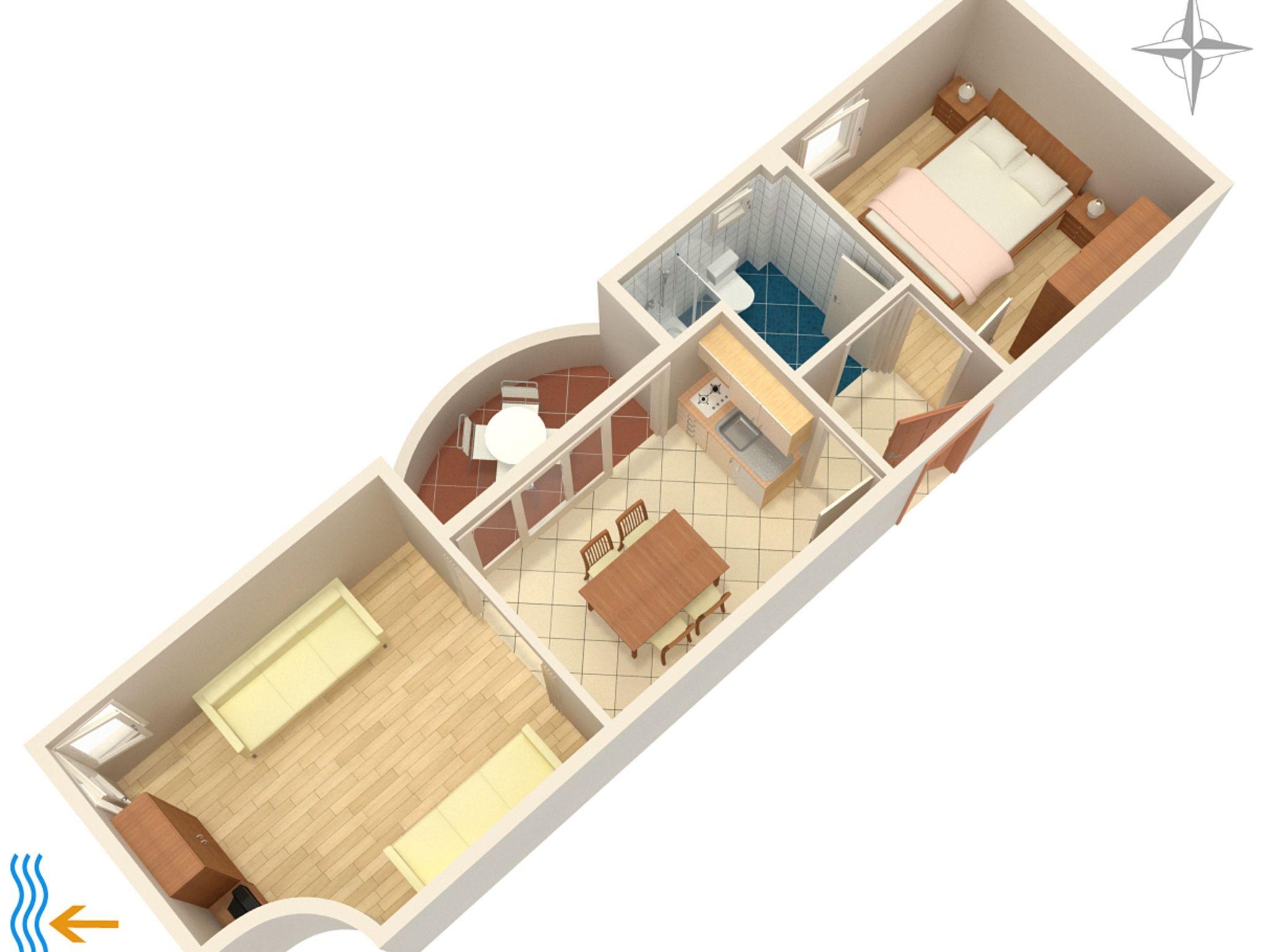 Ferienwohnung bietet Platz für 4 Gäste. Die Betten sind in Schlafzimmern, die es 1 gibt, und in Wohnzimmer, innerhalb einer Gesamtfläche von 40m2, angeordnet. Die Gäste haben eine eigene Terrasse zur Verfügung, auf der sie in warmen Sommernächten genießen können. Das Apartment bietet Meerblick. Es ist erlaubt, Speisen auf dem Gemeinschafts-Grill vorzubereiten. IM PREIS INBEGRIFFEN: Kurtaxe, Endreinigung, Klimatisierung, Parkplatz, Internet, Zusatzbett, Bügeleisen, Bügelbrett, Föhn. VERBINDLICHE ZUSÄTZLICHE KOSTEN: Aufzahlung für Kurzaufenthalte (prozentualer Zuschlag pro Nächtigungsanzahl: 30% - 1, 20% - 2, 10% - 3). UNVERBINDLICHE ZUSÄTZLICHE KOSTEN: Wäschewaschen (5,00 € Waschen). Die Verfügbarkeit zusätzlicher Dienstleistungen in Ihrem reservierten Termin und die Preise derselben (falls nicht aufgeführt) müssen im Voraus überprüft werden. Zusätzliche Dienstleistungen die in der Zahlungsaufforderung nicht aufgeführt sind werden direkt beim Vermieter bezahlt, angenommen der Gast nutzt auch diese.