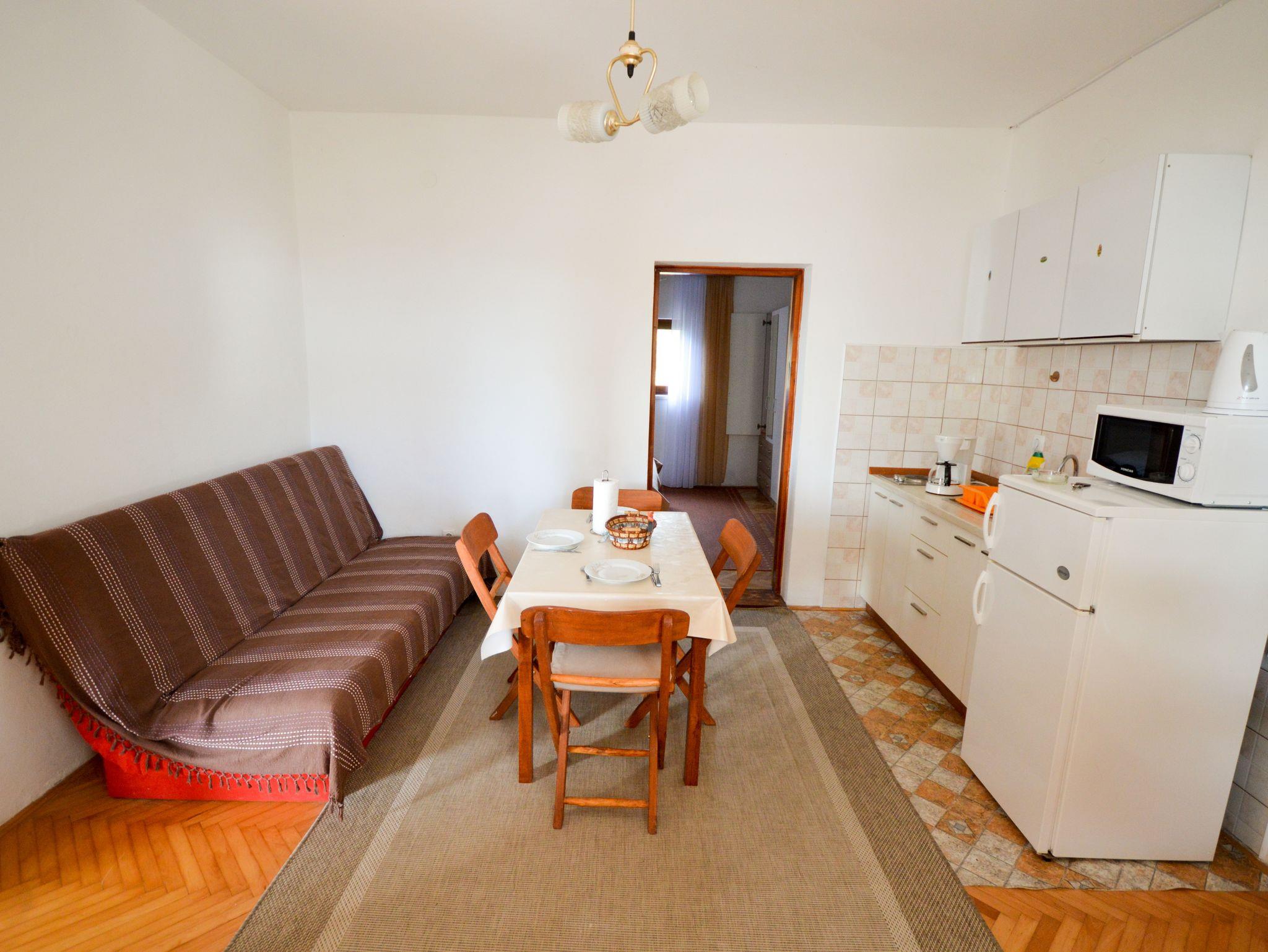 Ferienwohnung bietet Platz für 3 Gäste. Die Betten sind in Schlafzimmern, die es 1 gibt, und in Wohnzimmer, innerhalb einer Gesamtfläche von 35m2, angeordnet. Die Gäste haben eine eigene Terrasse zur Verfügung, auf der sie in warmen Sommernächten genießen können. Das Apartment bietet Meerblick. Es ist erlaubt, Speisen auf dem Gemeinschafts-Grill vorzubereiten. IM PREIS INBEGRIFFEN: Kurtaxe, Endreinigung, Klimatisierung, Parkplatz, Internet, Föhn, Sonnenschirm. VERBINDLICHE ZUSÄTZLICHE KOSTEN: Aufzahlung für Kurzaufenthalte (prozentualer Zuschlag pro Nächtigungsanzahl: 30% - 1, 20% - 2, 10% - 3). Die Verfügbarkeit zusätzlicher Dienstleistungen in Ihrem reservierten Termin und die Preise derselben (falls nicht aufgeführt) müssen im Voraus überprüft werden. Zusätzliche Dienstleistungen die in der Zahlungsaufforderung nicht aufgeführt sind werden direkt beim Vermieter bezahlt, angenommen der Gast nutzt auch diese.