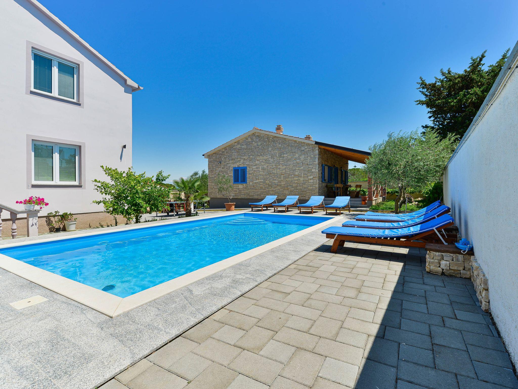 Hof (400m2, Kinderbereich, Sitzbereich), Parkplatz (Anzahl der Parkplätze: 3, Entfernung vom Objekt: im Hof), Pool: gemeinsam, Dimensionen: 8m x 4m x 1.4m, Wassertyp: Süßwasser, Grill: gemeinsam, WiFi Internet, Föhn, Bügeleisen