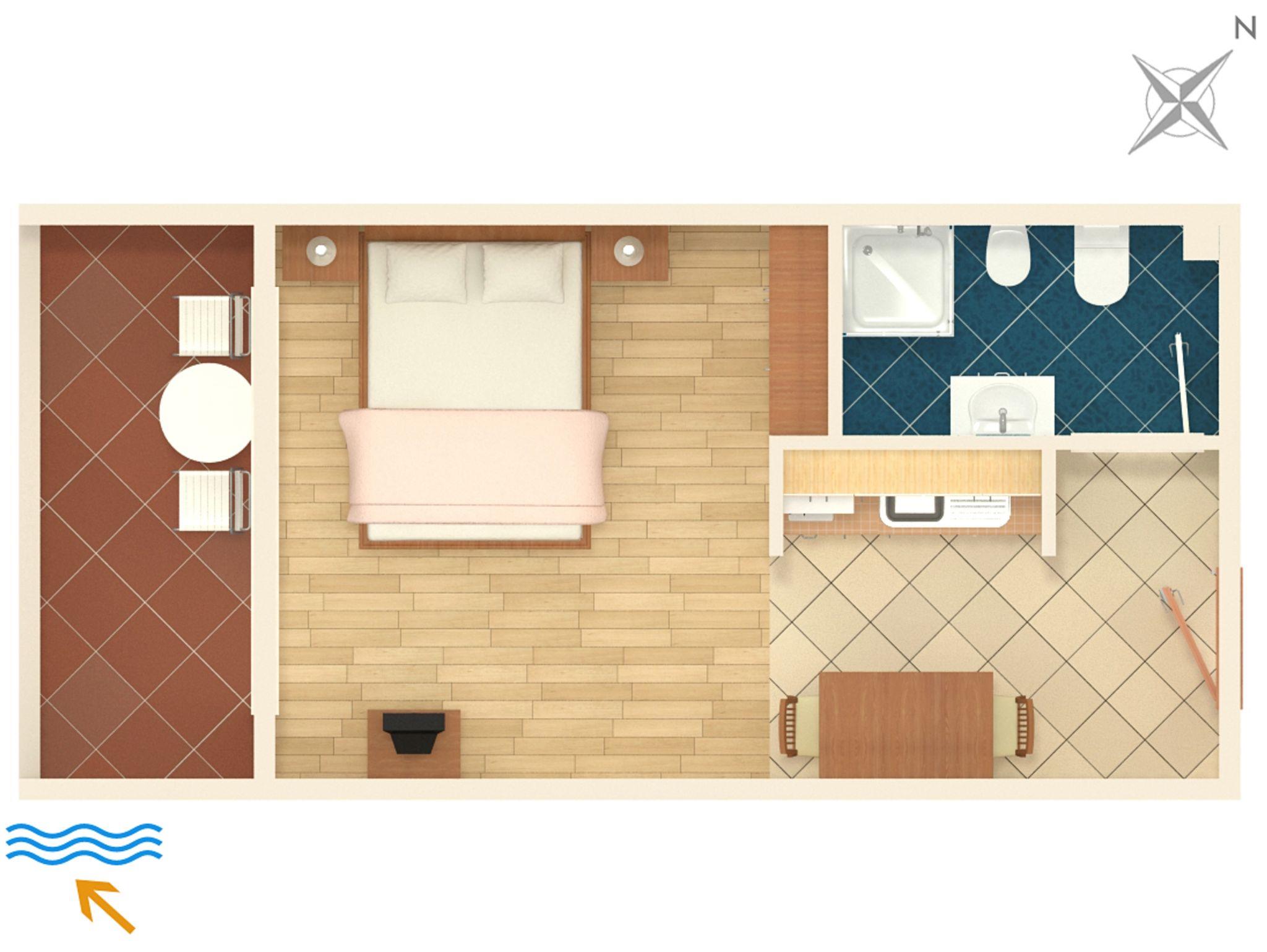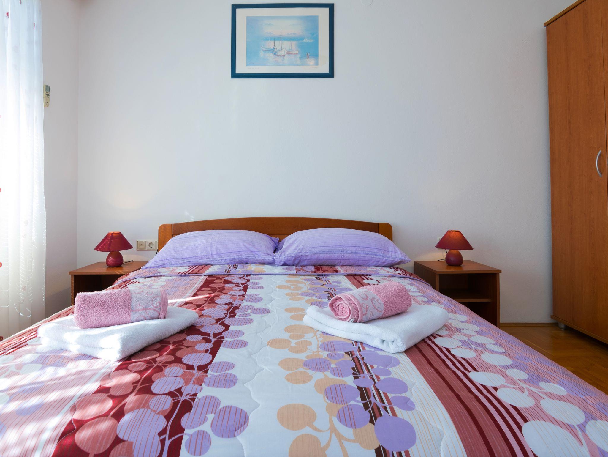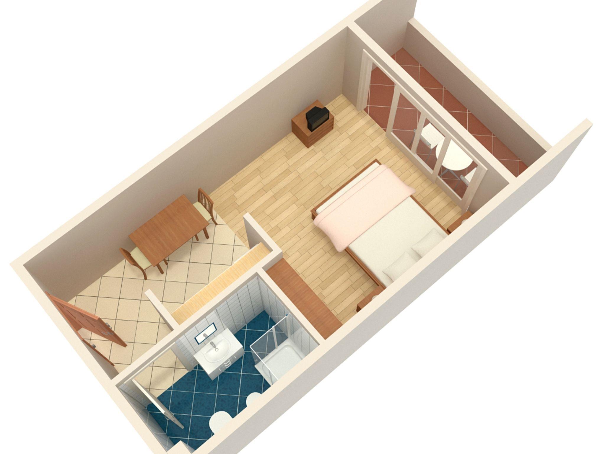 Studio bietet Platz für 2 Gäste. Die Betten sind in Schlafzimmern, die es 1 gibt, innerhalb einer Gesamtfläche von 27m2, angeordnet. Die Gäste haben eine eigene Terrasse zur Verfügung, auf der sie in warmen Sommernächten genießen können. Es ist erlaubt, Speisen auf dem Gemeinschafts-Grill vorzubereiten. IM PREIS INBEGRIFFEN: Kurtaxe, Endreinigung, Klimatisierung, Parkplatz, Internet, Bügeleisen, Bügelbrett, Föhn. VERBINDLICHE ZUSÄTZLICHE KOSTEN: Aufzahlung für Kurzaufenthalte (prozentualer Zuschlag pro Nächtigungsanzahl: 30% - 1, 20% - 2, 10% - 3). UNVERBINDLICHE ZUSÄTZLICHE KOSTEN: Wäschewaschen (5,00 € Waschen). Die Verfügbarkeit zusätzlicher Dienstleistungen in Ihrem reservierten Termin und die Preise derselben (falls nicht aufgeführt) müssen im Voraus überprüft werden. Zusätzliche Dienstleistungen die in der Zahlungsaufforderung nicht aufgeführt sind werden direkt beim Vermieter bezahlt, angenommen der Gast nutzt auch diese.