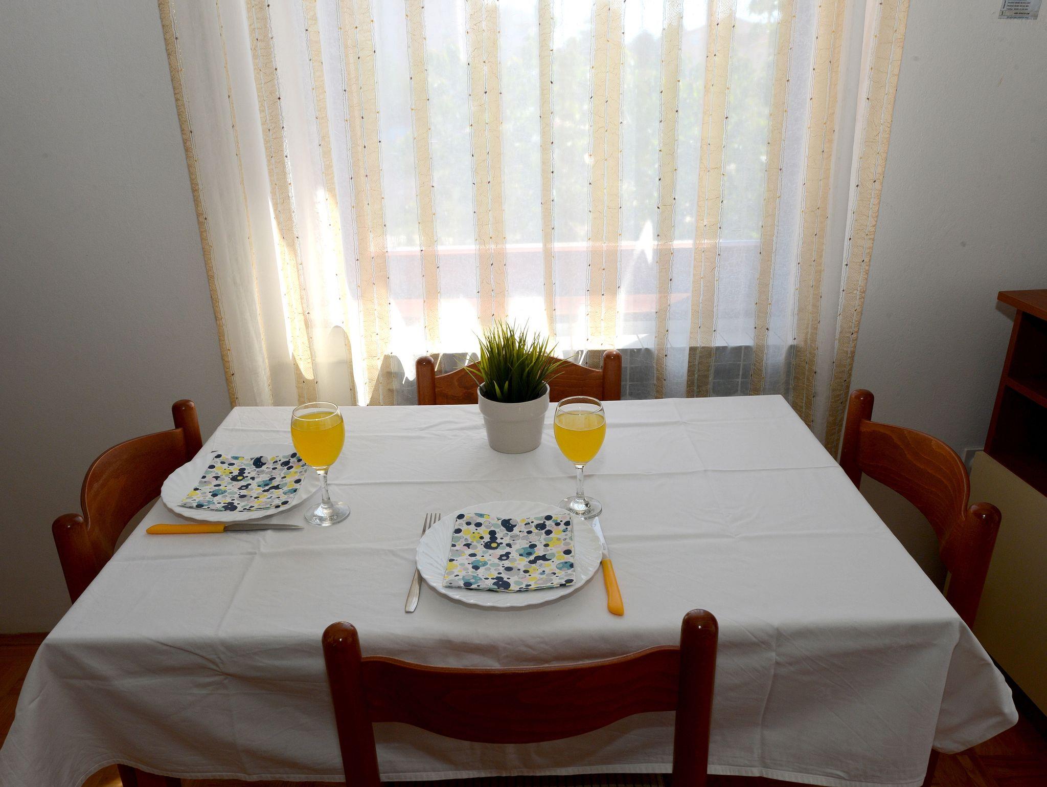 Ferienwohnung bietet Platz für 4 Gäste. Die Betten sind in Schlafzimmern, die es 1 gibt, und in Wohnzimmer, innerhalb einer Gesamtfläche von 35m2, angeordnet. Die Gäste haben eine eigene Terrasse zur Verfügung, auf der sie in warmen Sommernächten genießen können. Das Apartment bietet Meerblick. Es ist erlaubt, Speisen auf dem Gemeinschafts-Grill vorzubereiten. IM PREIS INBEGRIFFEN: Kurtaxe, Endreinigung, Klimatisierung, Parkplatz, Internet, Kinderbett, Bügeleisen, Bügelbrett, Föhn. VERBINDLICHE ZUSÄTZLICHE KOSTEN: Aufzahlung für Kurzaufenthalte (prozentualer Zuschlag pro Nächtigungsanzahl: 30% - 1, 20% - 2, 10% - 3). UNVERBINDLICHE ZUSÄTZLICHE KOSTEN: Wäschewaschen (3,00 € Waschen). Die Verfügbarkeit zusätzlicher Dienstleistungen in Ihrem reservierten Termin und die Preise derselben (falls nicht aufgeführt) müssen im Voraus überprüft werden. Zusätzliche Dienstleistungen die in der Zahlungsaufforderung nicht aufgeführt sind werden direkt beim Vermieter bezahlt, angenommen der Gast nutzt auch diese.