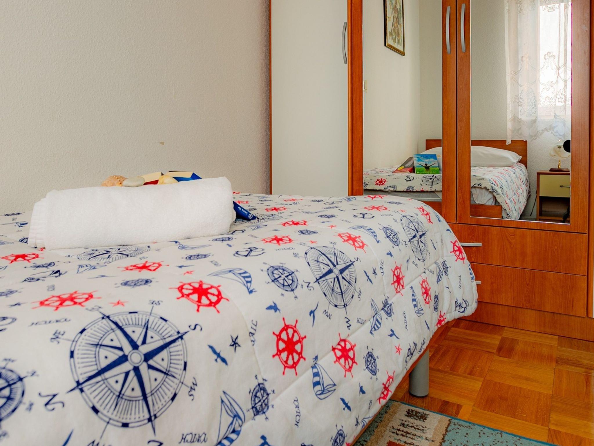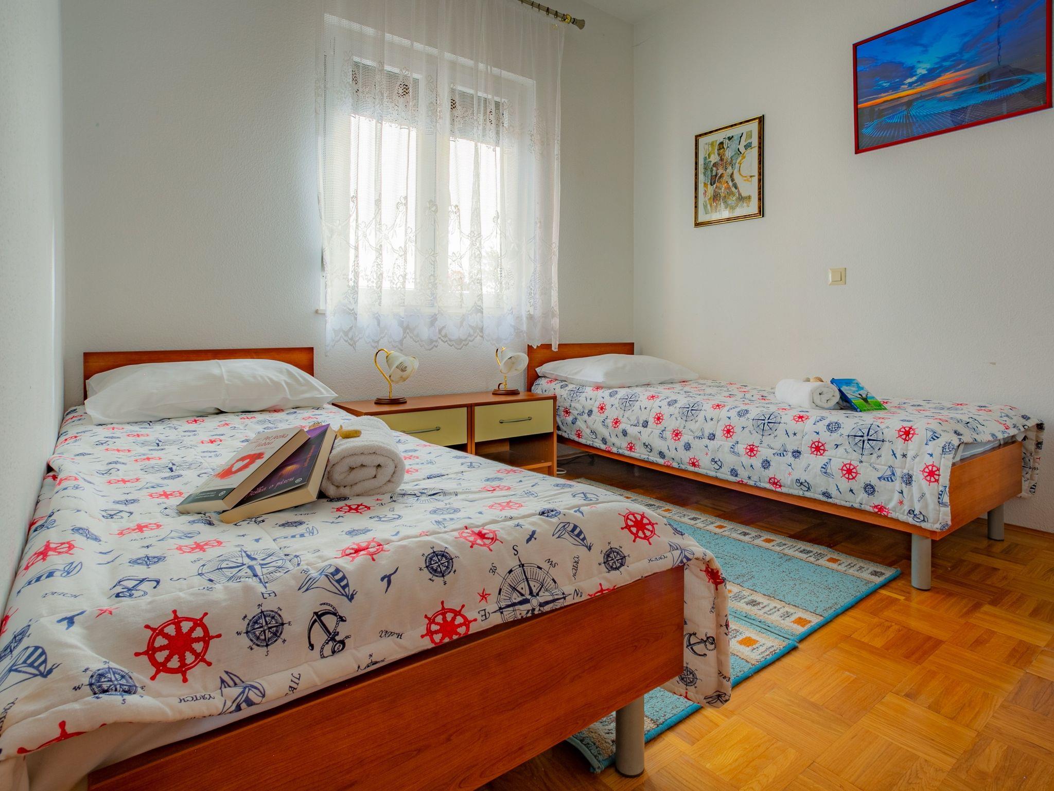Ferienwohnung bietet Platz für 5 Gäste. Die Betten sind in Schlafzimmern, die es 2 gibt, und in Wohnzimmer, innerhalb einer Gesamtfläche von 54m2, angeordnet. Die Gäste haben eine eigene Terrasse zur Verfügung, auf der sie in warmen Sommernächten genießen können. Das Apartment bietet Meerblick. Es ist erlaubt, Speisen auf dem Gemeinschafts-Grill vorzubereiten. IM PREIS INBEGRIFFEN: Kurtaxe, Endreinigung, Klimatisierung, Parkplatz, Internet, Bügeleisen, Bügelbrett, Föhn. VERBINDLICHE ZUSÄTZLICHE KOSTEN: Aufzahlung für Kurzaufenthalte (prozentualer Zuschlag pro Nächtigungsanzahl: 30% - 1, 20% - 2, 10% - 3). UNVERBINDLICHE ZUSÄTZLICHE KOSTEN: Zusatzbett (27,00 € pro Nacht). Die Verfügbarkeit zusätzlicher Dienstleistungen in Ihrem reservierten Termin und die Preise derselben (falls nicht aufgeführt) müssen im Voraus überprüft werden. Zusätzliche Dienstleistungen die in der Zahlungsaufforderung nicht aufgeführt sind werden direkt beim Vermieter bezahlt, angenommen der Gast nutzt auch diese.