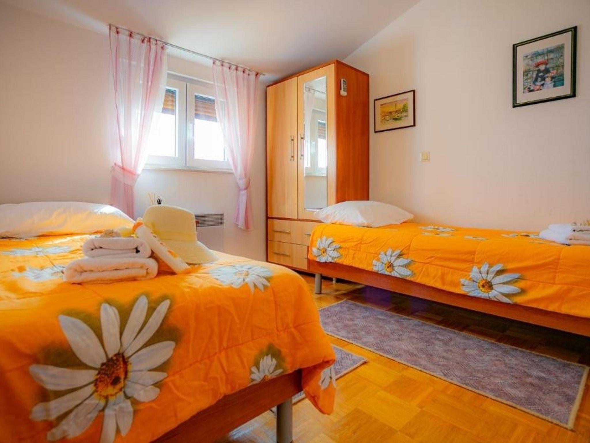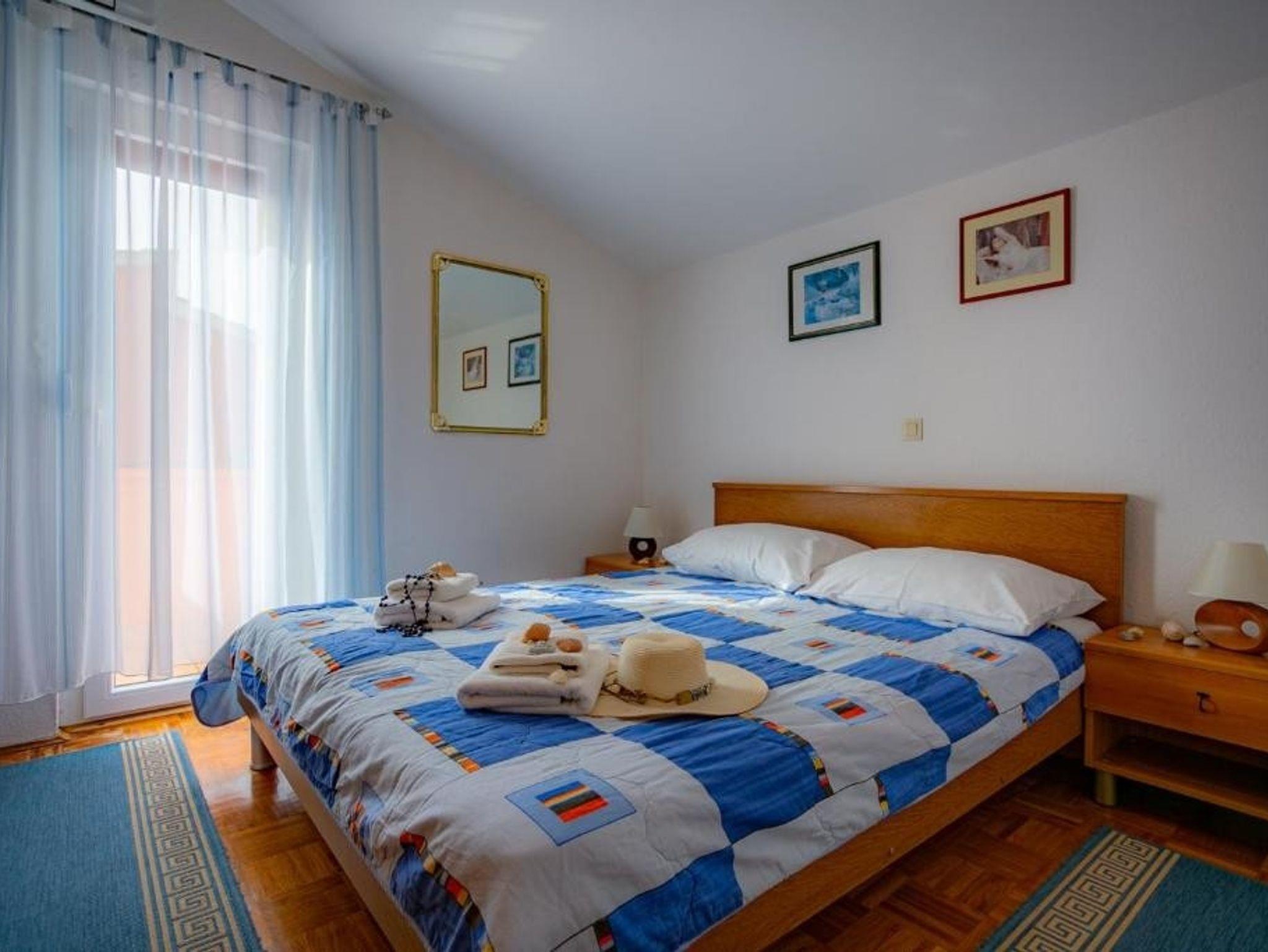 Ferienwohnung bietet Platz für 5 Gäste. Die Betten sind in Schlafzimmern, die es 2 gibt, und in Wohnzimmer, innerhalb einer Gesamtfläche von 56m2, angeordnet. Die Gäste haben einen eigenen Balkon zur Verfügung, auf der sie in warmen Sommernächten genießen können. Das Apartment bietet Meerblick. Es ist erlaubt, Speisen auf dem Gemeinschafts-Grill vorzubereiten. IM PREIS INBEGRIFFEN: Kurtaxe, Endreinigung, Klimatisierung, Parkplatz, Internet, Bügeleisen, Bügelbrett, Föhn. VERBINDLICHE ZUSÄTZLICHE KOSTEN: Aufzahlung für Kurzaufenthalte (prozentualer Zuschlag pro Nächtigungsanzahl: 30% - 1, 20% - 2, 10% - 3). UNVERBINDLICHE ZUSÄTZLICHE KOSTEN: Zusatzbett (27,00 € pro Nacht). Die Verfügbarkeit zusätzlicher Dienstleistungen in Ihrem reservierten Termin und die Preise derselben (falls nicht aufgeführt) müssen im Voraus überprüft werden. Zusätzliche Dienstleistungen die in der Zahlungsaufforderung nicht aufgeführt sind werden direkt beim Vermieter bezahlt, angenommen der Gast nutzt auch diese.