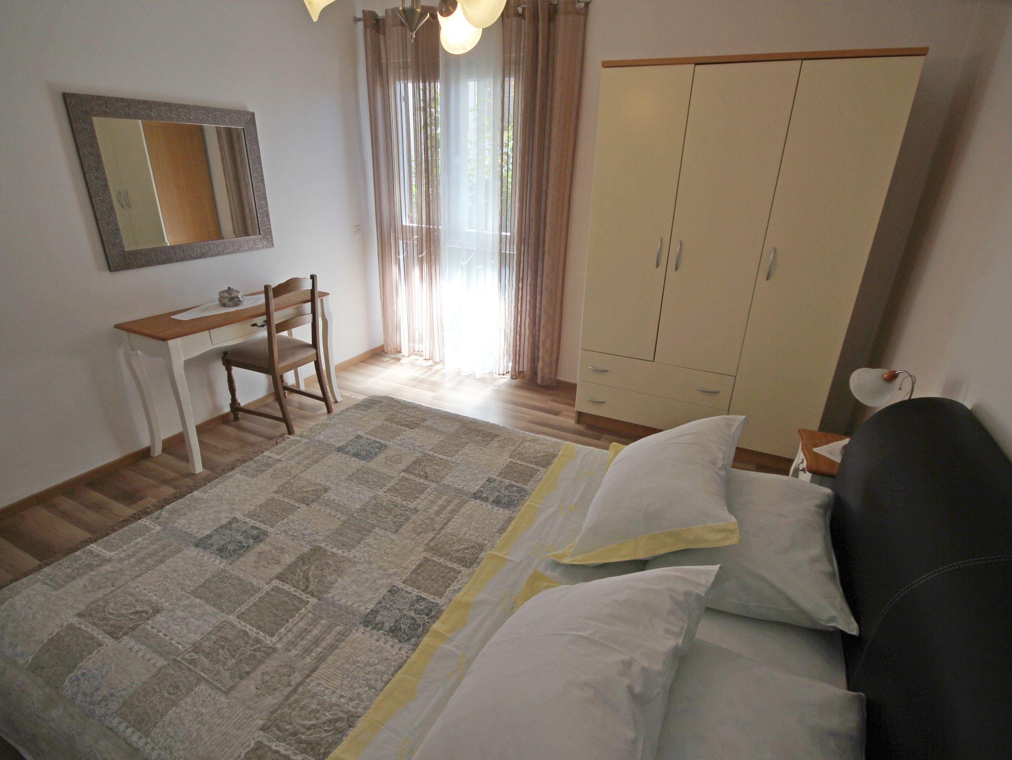 Ferienwohnung bietet Platz für 4 Gäste. Die Betten sind in Schlafzimmern, die es 1 gibt, und in Wohnzimmer, innerhalb einer Gesamtfläche von 43m2, angeordnet. Die Gäste haben eine eigene Terrasse zur Verfügung, auf der sie in warmen Sommernächten genießen können. Es ist erlaubt, Speisen auf dem Gemeinschafts-Grill vorzubereiten. In der Unterkunftseinheit besteht die Möglichkeit des Mitbringens von Haustieren gegen Aufpreis. IM PREIS INBEGRIFFEN: Kurtaxe, Endreinigung, Klimatisierung, Parkplatz, Internet, Bügeleisen, Bügelbrett, Föhn. VERBINDLICHE ZUSÄTZLICHE KOSTEN: Aufzahlung für Kurzaufenthalte (prozentualer Zuschlag pro Nächtigungsanzahl: 30% - 1, 20% - 2, 10% - 3). UNVERBINDLICHE ZUSÄTZLICHE KOSTEN: Haustiere (6,00 € pro Nacht). Die Verfügbarkeit zusätzlicher Dienstleistungen in Ihrem reservierten Termin und die Preise derselben (falls nicht aufgeführt) müssen im Voraus überprüft werden. Zusätzliche Dienstleistungen die in der Zahlungsaufforderung nicht aufgeführt sind werden direkt beim Vermieter bezahlt, angenommen der Gast nutzt auch diese.