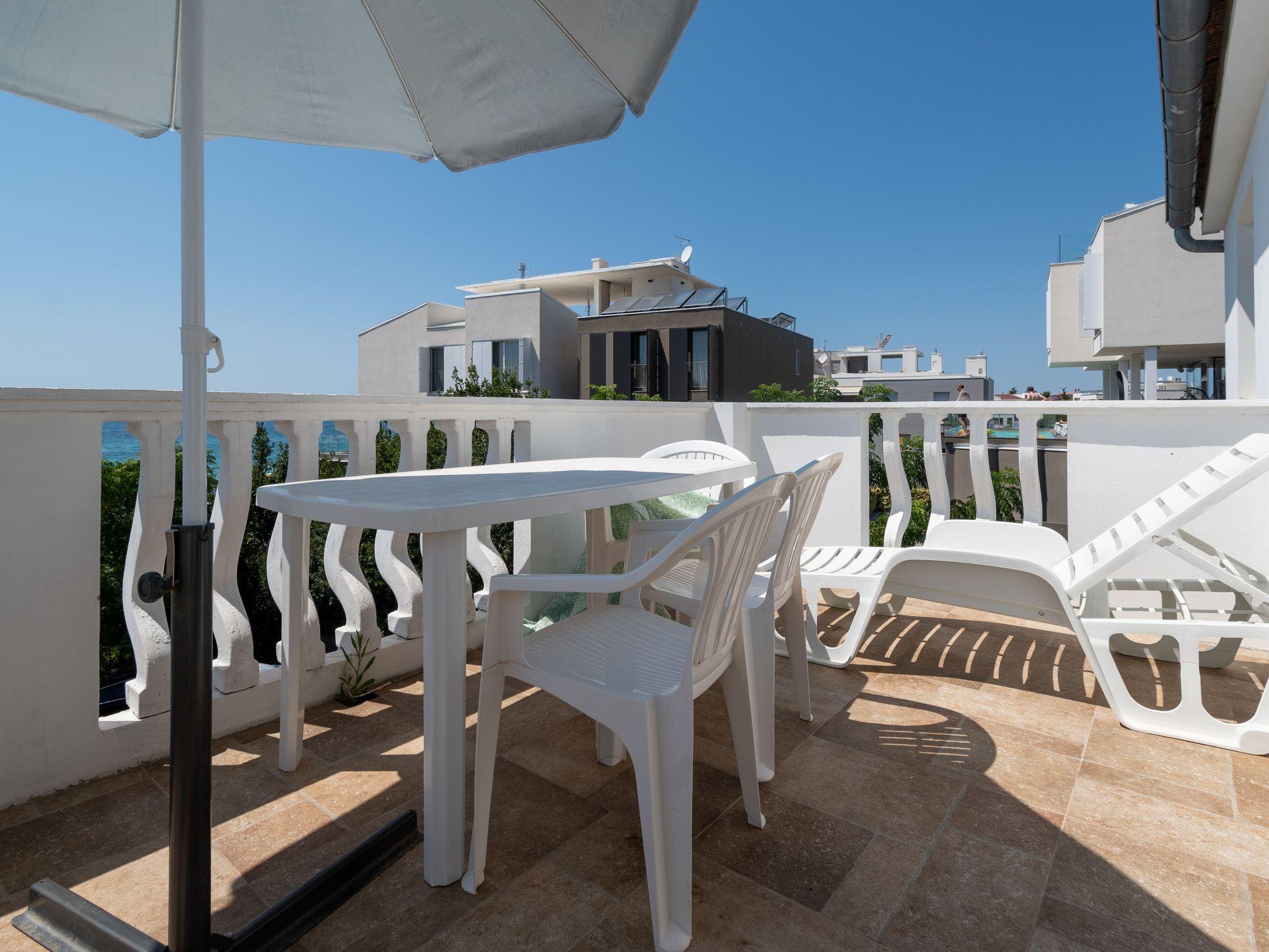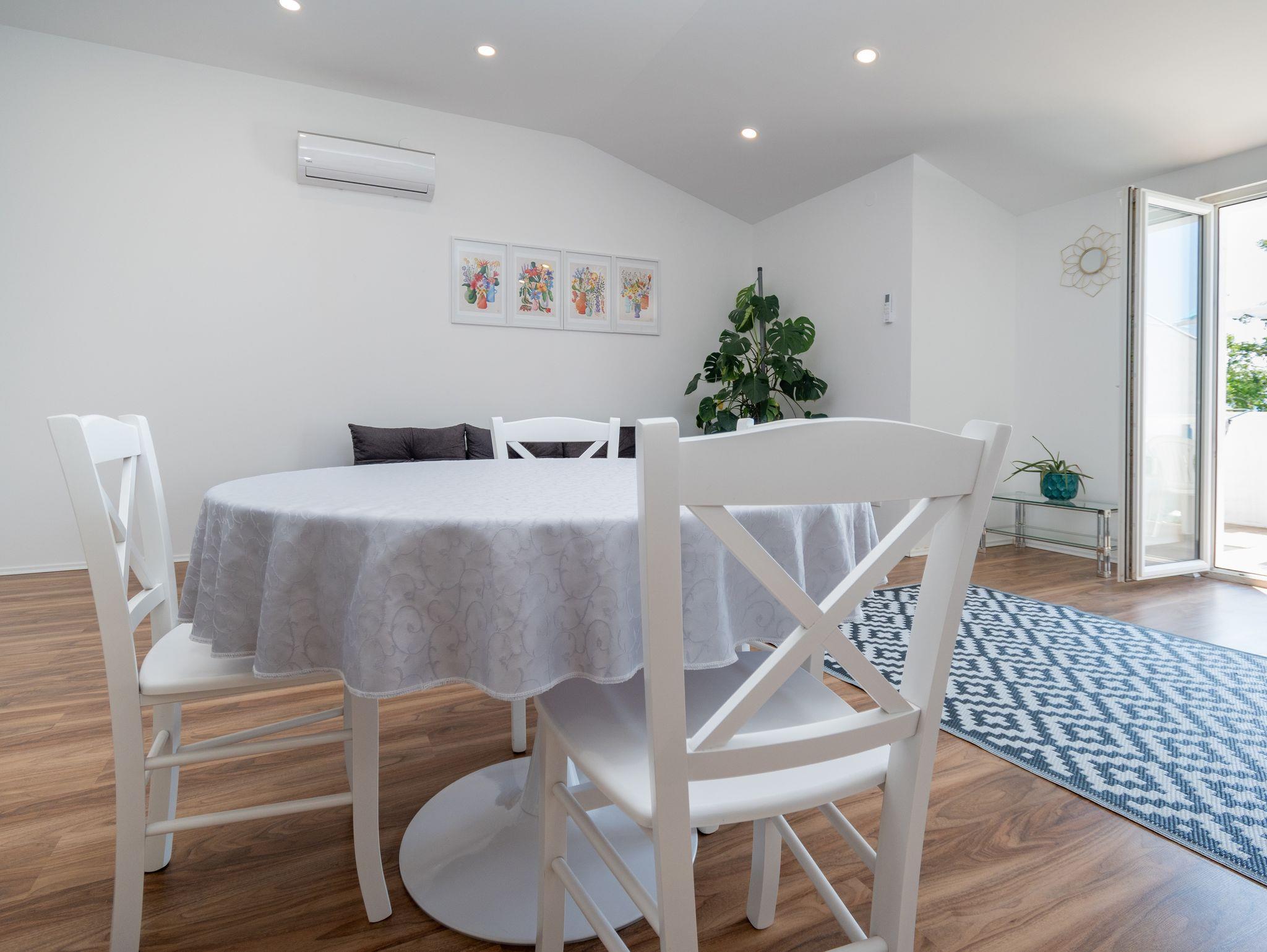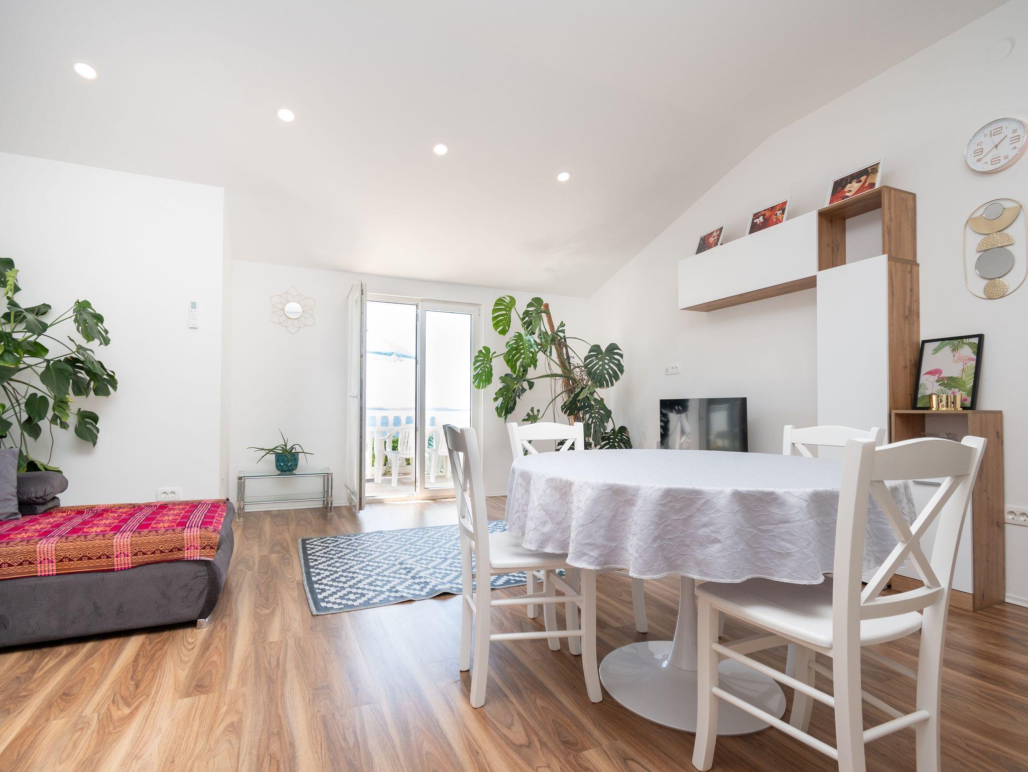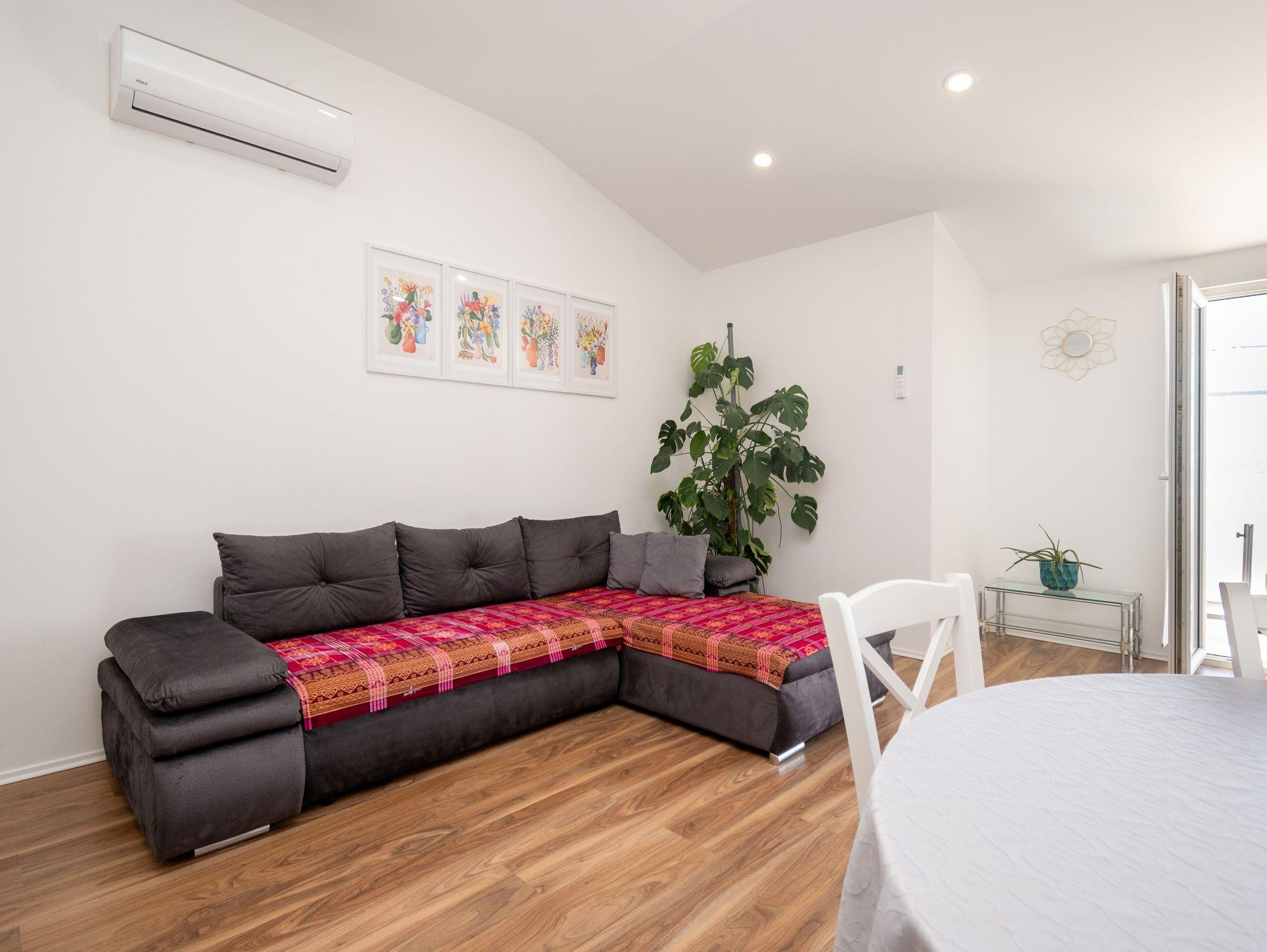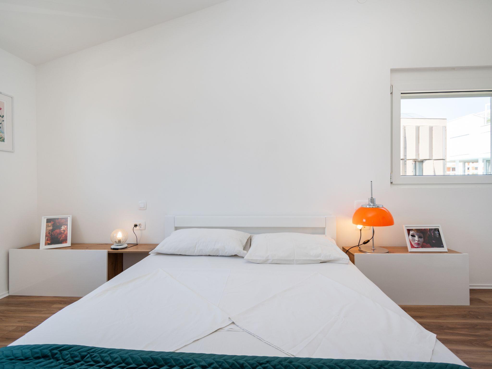 Ferienwohnung bietet Platz für 4 Gäste. Die Betten sind in Schlafzimmern, die es 1 gibt, und in Wohnzimmer, innerhalb einer Gesamtfläche von 60m2, angeordnet. Die Gäste haben eine eigene Terrasse zur Verfügung, auf der sie in warmen Sommernächten genießen können. Das Apartment bietet Meerblick. IM PREIS INBEGRIFFEN: Kurtaxe, Endreinigung, Klimatisierung, Parkplatz, Internet. VERBINDLICHE ZUSÄTZLICHE KOSTEN: Aufzahlung für Kurzaufenthalte (prozentualer Zuschlag pro Nächtigungsanzahl: 30% - 1, 20% - 2, 10% - 3). Die Verfügbarkeit zusätzlicher Dienstleistungen in Ihrem reservierten Termin und die Preise derselben (falls nicht aufgeführt) müssen im Voraus überprüft werden. Zusätzliche Dienstleistungen die in der Zahlungsaufforderung nicht aufgeführt sind werden direkt beim Vermieter bezahlt, angenommen der Gast nutzt auch diese.