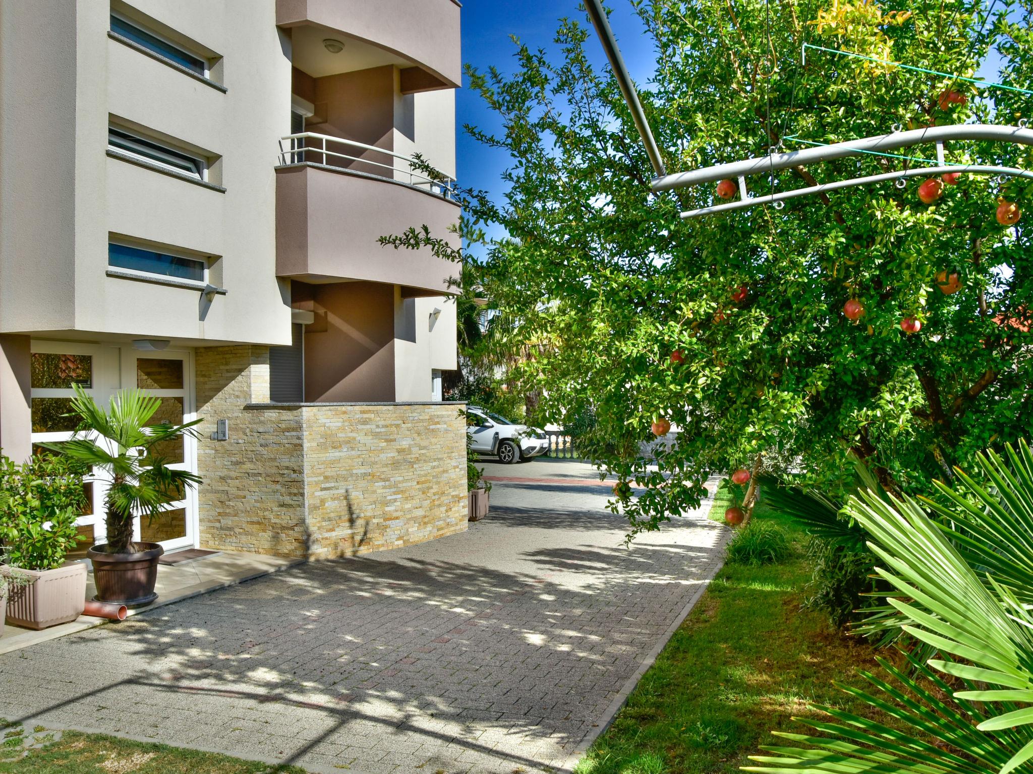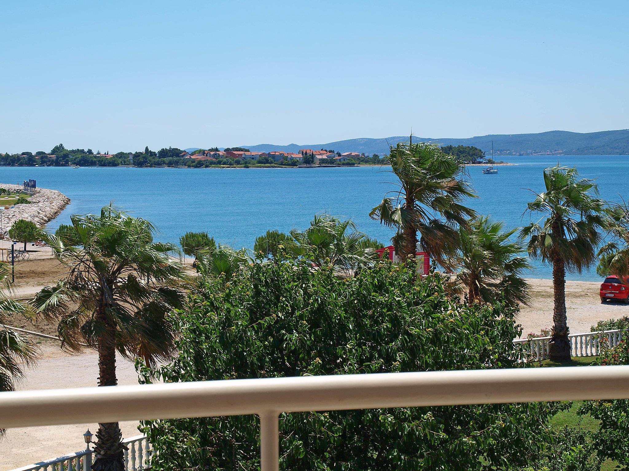 Bibinje 10 km from Zadar: Apartment house "Marko". 2 km from the centre of Bibinje, in a sunny position, 70 m from the sea, 70 m from the beach. For shared use: property 700 m2 (fenced), well-kept garden with lawn and trees, swimming pool angular heated (7 x 3 m, 24 m2, depth 150 cm, seasonal availability: 15.May. - 19.Oct.) with internal staircase. Outdoor shower, poolhouse with fridge, WC and cooking stove, terrace (32 m2), garden furniture, barbecue, children's playground (swing). In the house: internet access. Parking at the house on the premises. Shop, restaurant 650 m, café 100 m, bus stop 2.9 km, pebble beach 70 m, diving center 100 m, public bathing area 70 m. Marina 50 m, children's playground 100 m. Please note: private mooring (extra) on request. For shared use:terrace (20 m2). Possibility of renting house owner's car and trips by owner's boat (on request, extra).