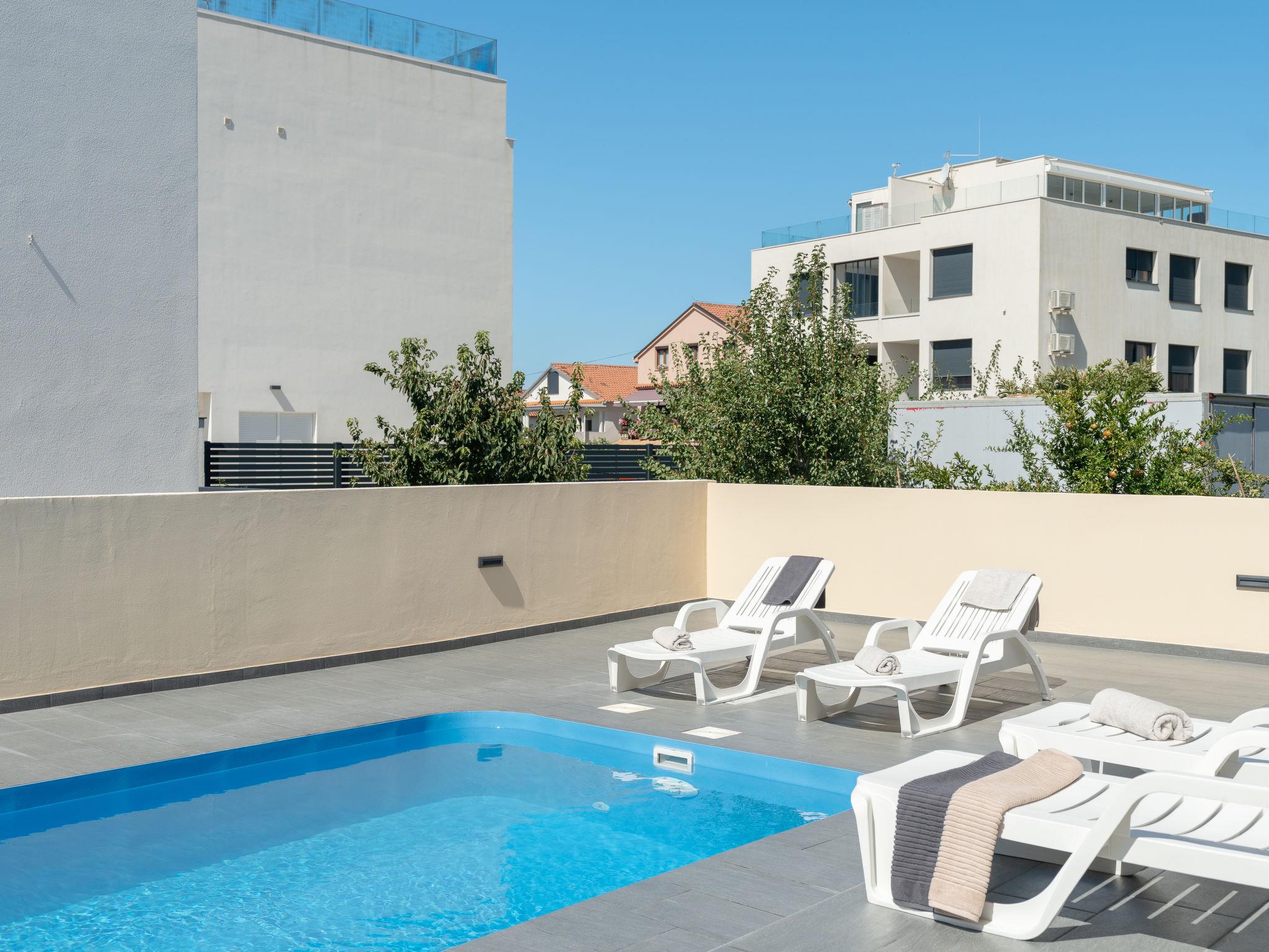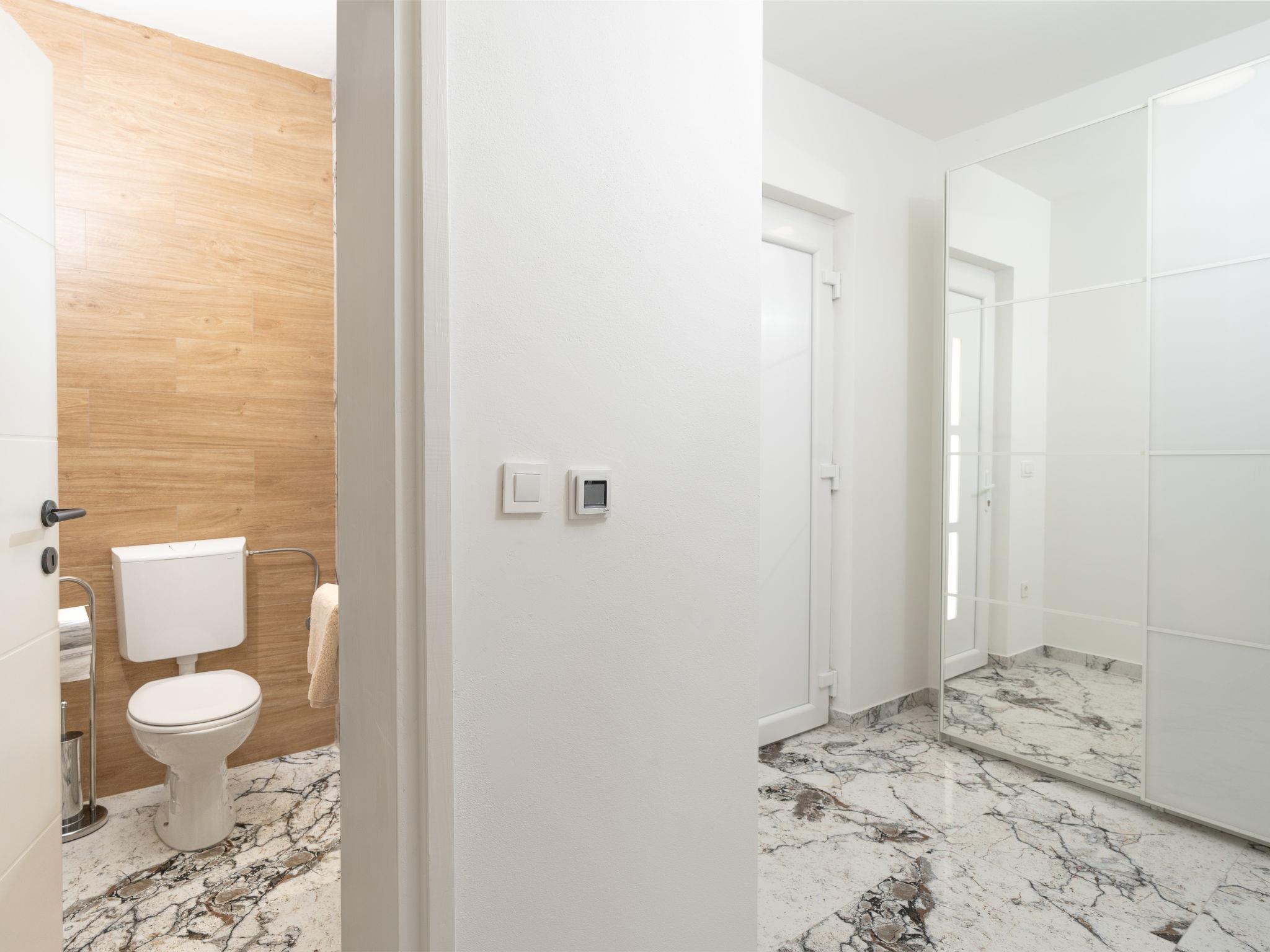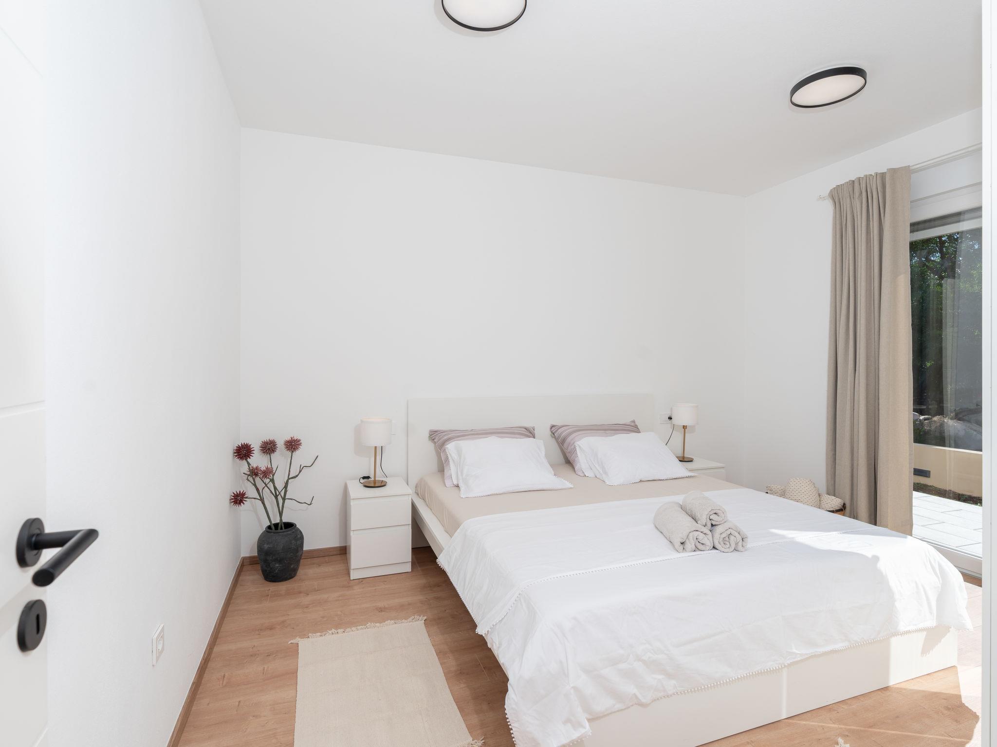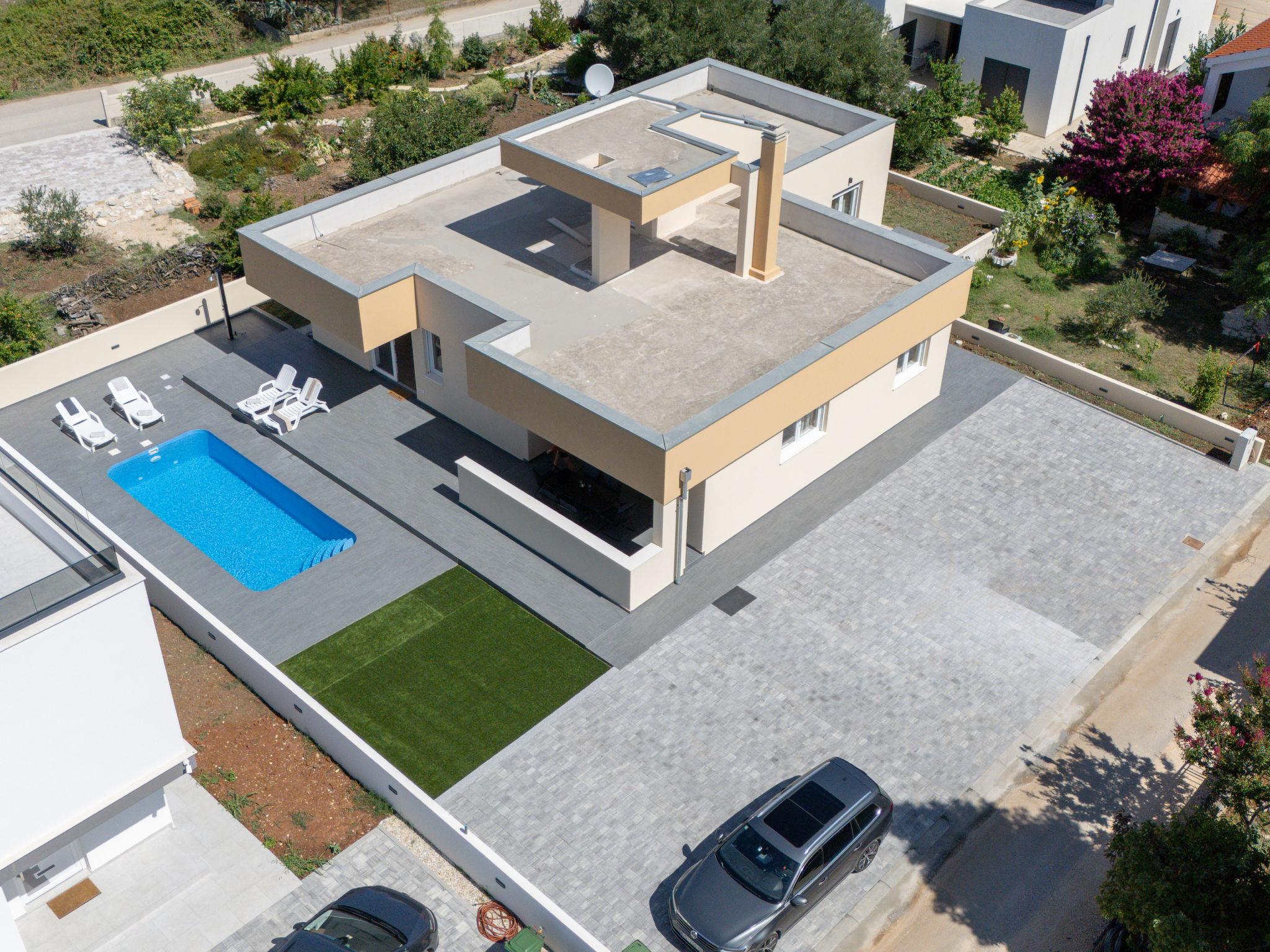Beautiful villa "Sinjorina". In a sunny position, 250 m from the sea, 250 m from the beach. Private: property 600 m2, swimming pool angular (7 x 3 m, 27 m2, depth 150 cm, seasonal availability: 15.Jun. - 15.Oct.) with internal staircase. Outdoor shower, garden furniture. In the house: internet access, washing machine. Parking (for 2 cars) at the house on the premises. Shop 400 m, restaurant 500 m, bus stop 2 km, pebble beach 250 m, public bathing area 300 m. Marina 2 km. Nearby attractions: Aquapark 25 km.
