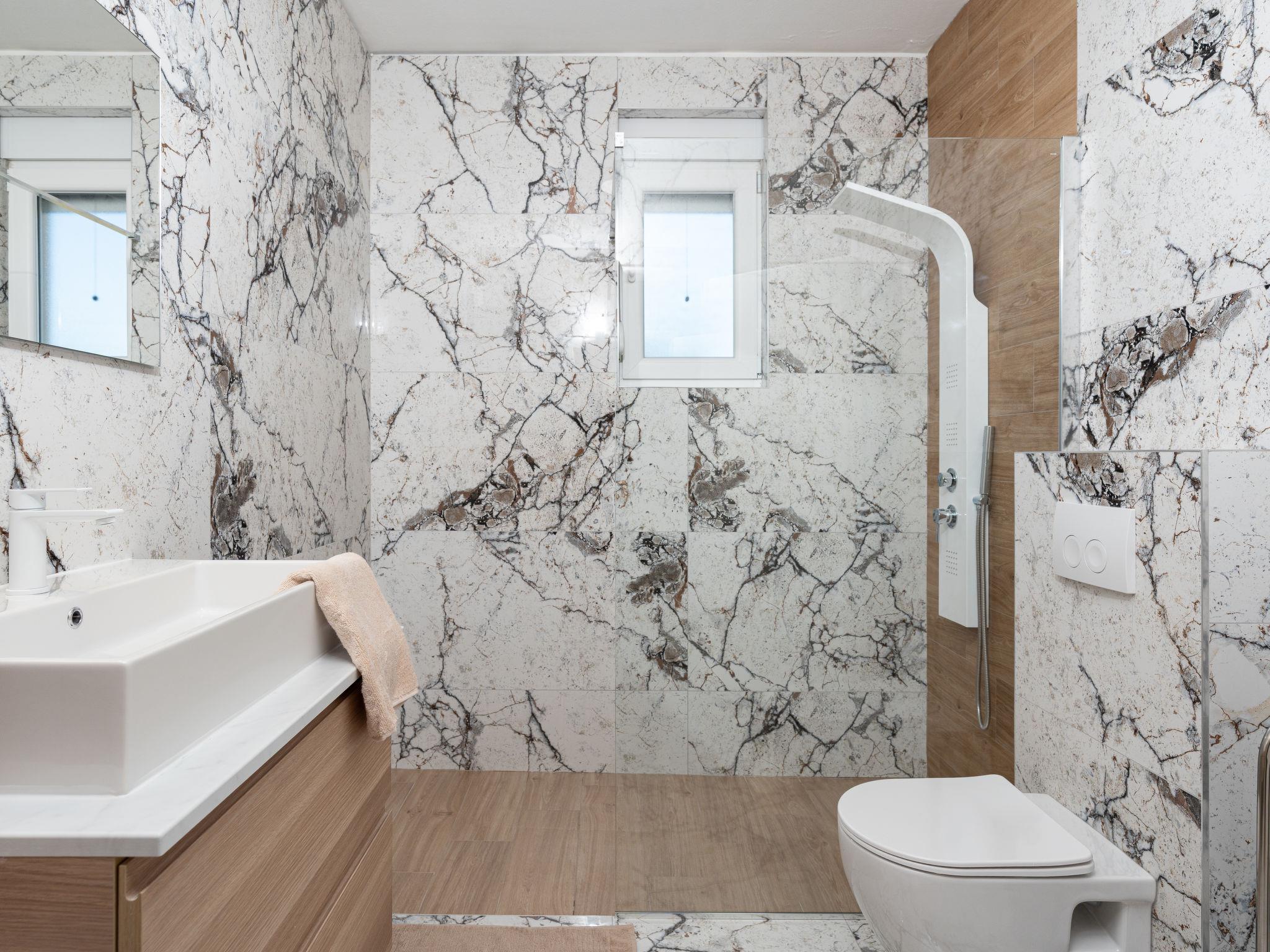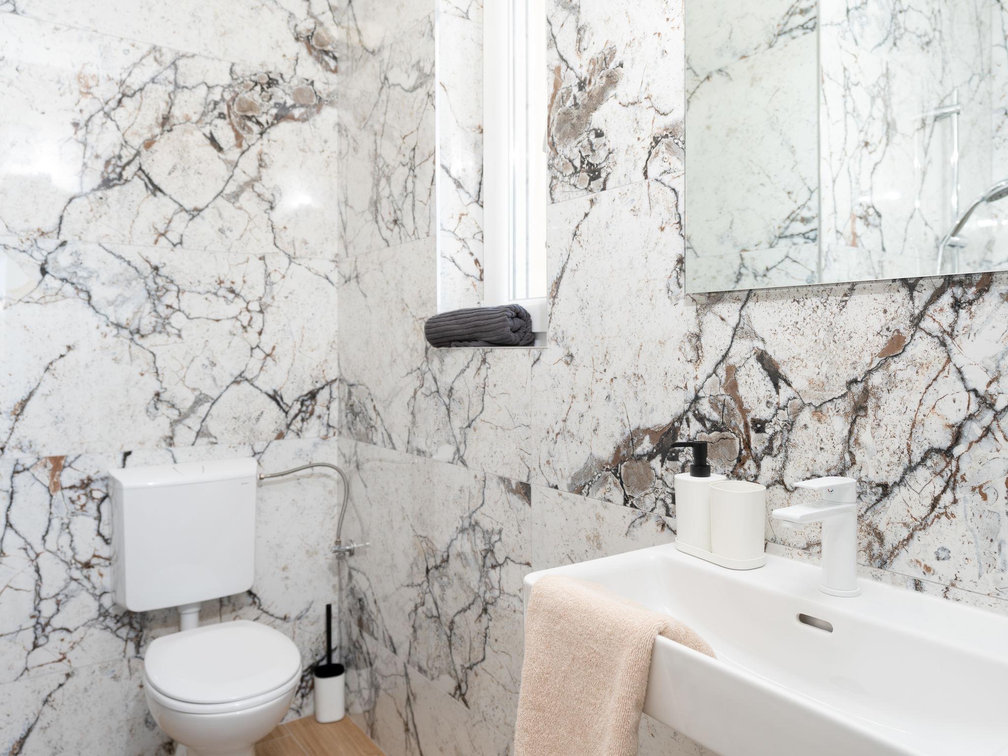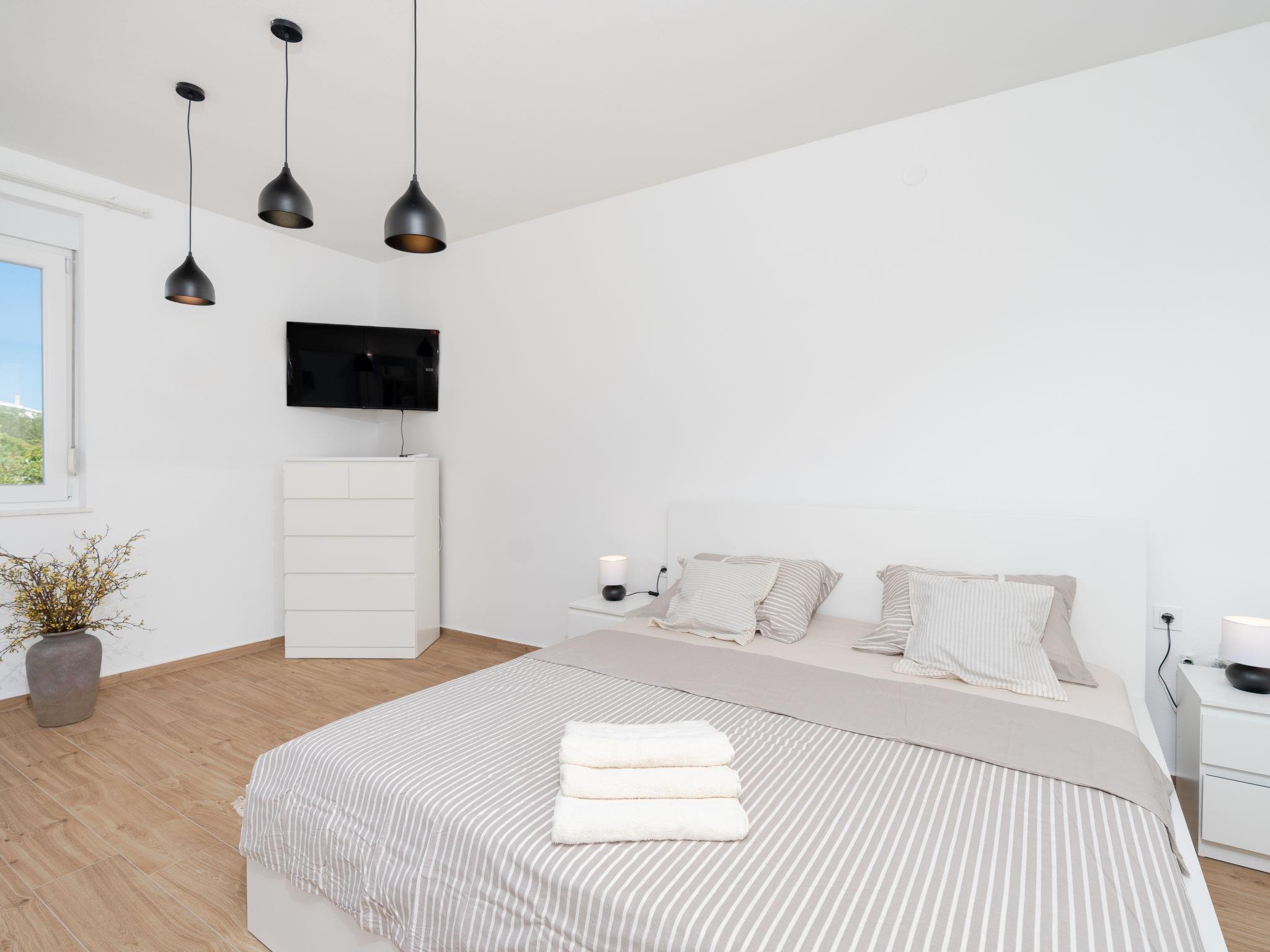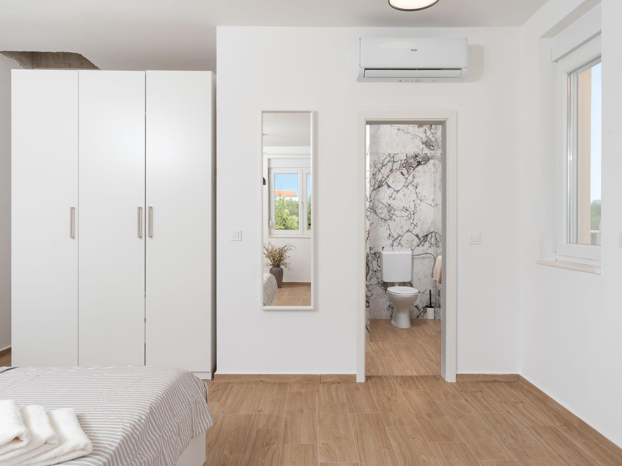 Beautiful villa "Sinjorina". In a sunny position, 250 m from the sea, 250 m from the beach. Private: property 600 m2, swimming pool angular (7 x 3 m, 27 m2, depth 150 cm, seasonal availability: 15.Jun. - 15.Oct.) with internal staircase. Outdoor shower, garden furniture. In the house: internet access, washing machine. Parking (for 2 cars) at the house on the premises. Shop 400 m, restaurant 500 m, bus stop 2 km, pebble beach 250 m, public bathing area 300 m. Marina 2 km. Nearby attractions: Aquapark 25 km.