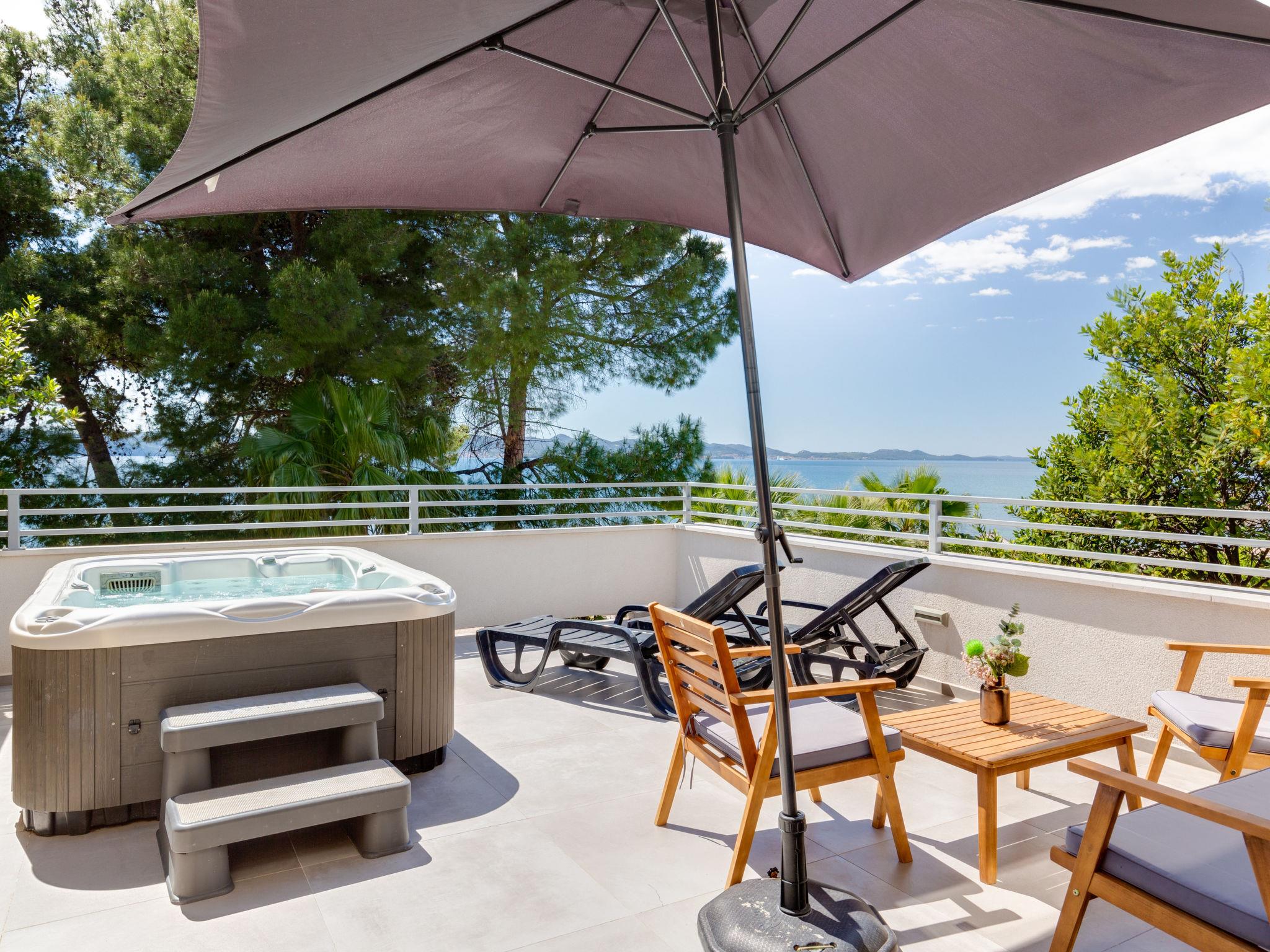 Modern apartment house "Sun & Salt". 1.1 km from the centre of Bibinje, 7 km from the centre of Zadar, in a sunny position, 15 m from the sea, 15 m from the beach, direct access to the beach. For shared use: property (fenced). Private: hot tub. In the house: internet access. Parking at the house on the premises. Shop 750 m, restaurant 1.1 km, bus stop 2.3 km, pebble beach 15 m. Please note: airfield 9 km from the property.