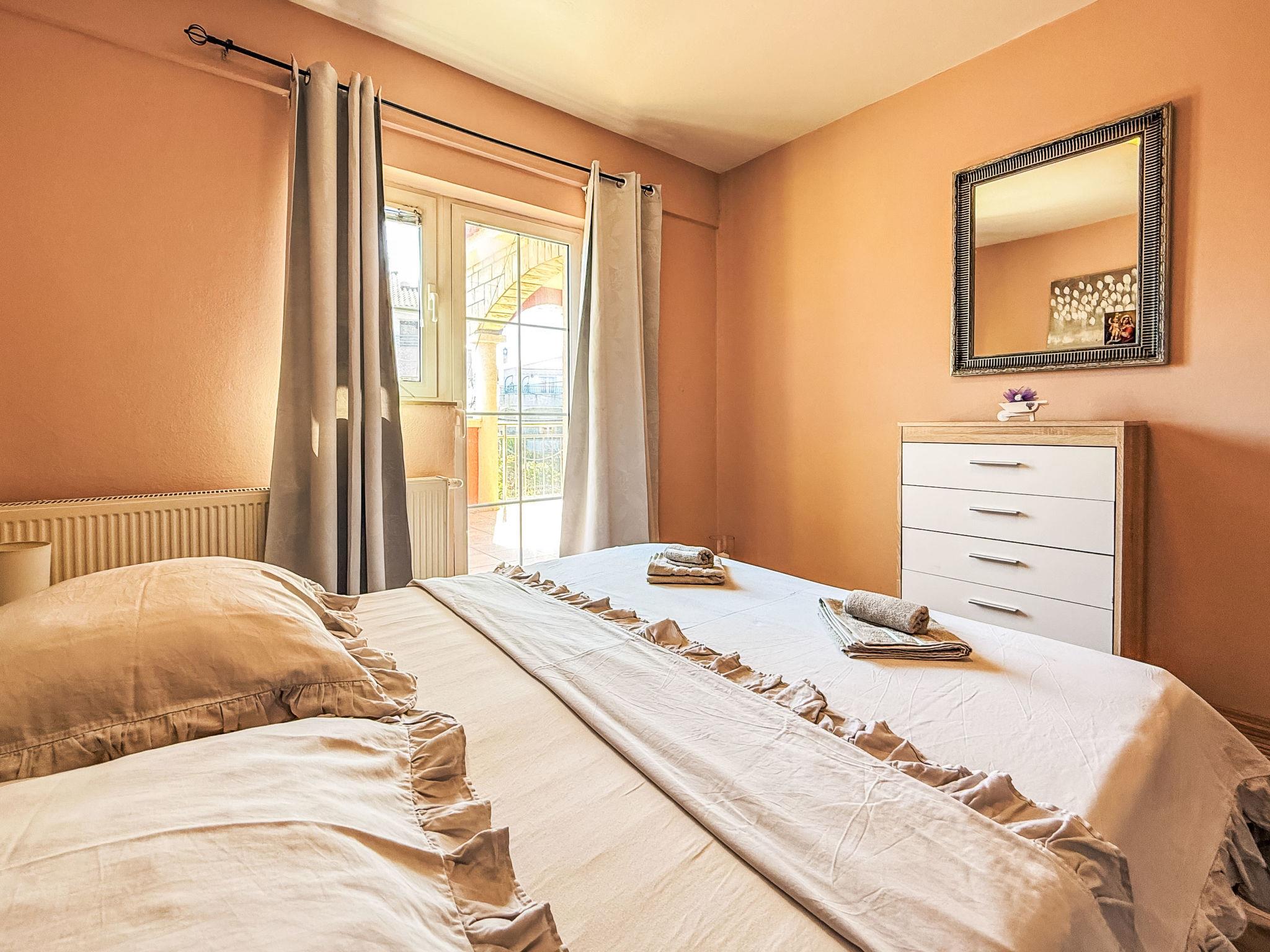4-room apartment 90 m2 on 1st floor, south-west facing position. Living/dining room 18 m2 with 1 sofabed (120 cm, length 200 cm), satellite TV (flat screen), air conditioning. Exit to the terrace. 2 rooms, each room with 1 french bed (155 cm, length 200 cm). 1 room with 1 bed (90 cm, length 200 cm). Open kitchen (2 hot plates, microwave). Shower/WC. Terrace 6 m2, roofed. Terrace furniture. Facilities: Internet (WiFi, free).