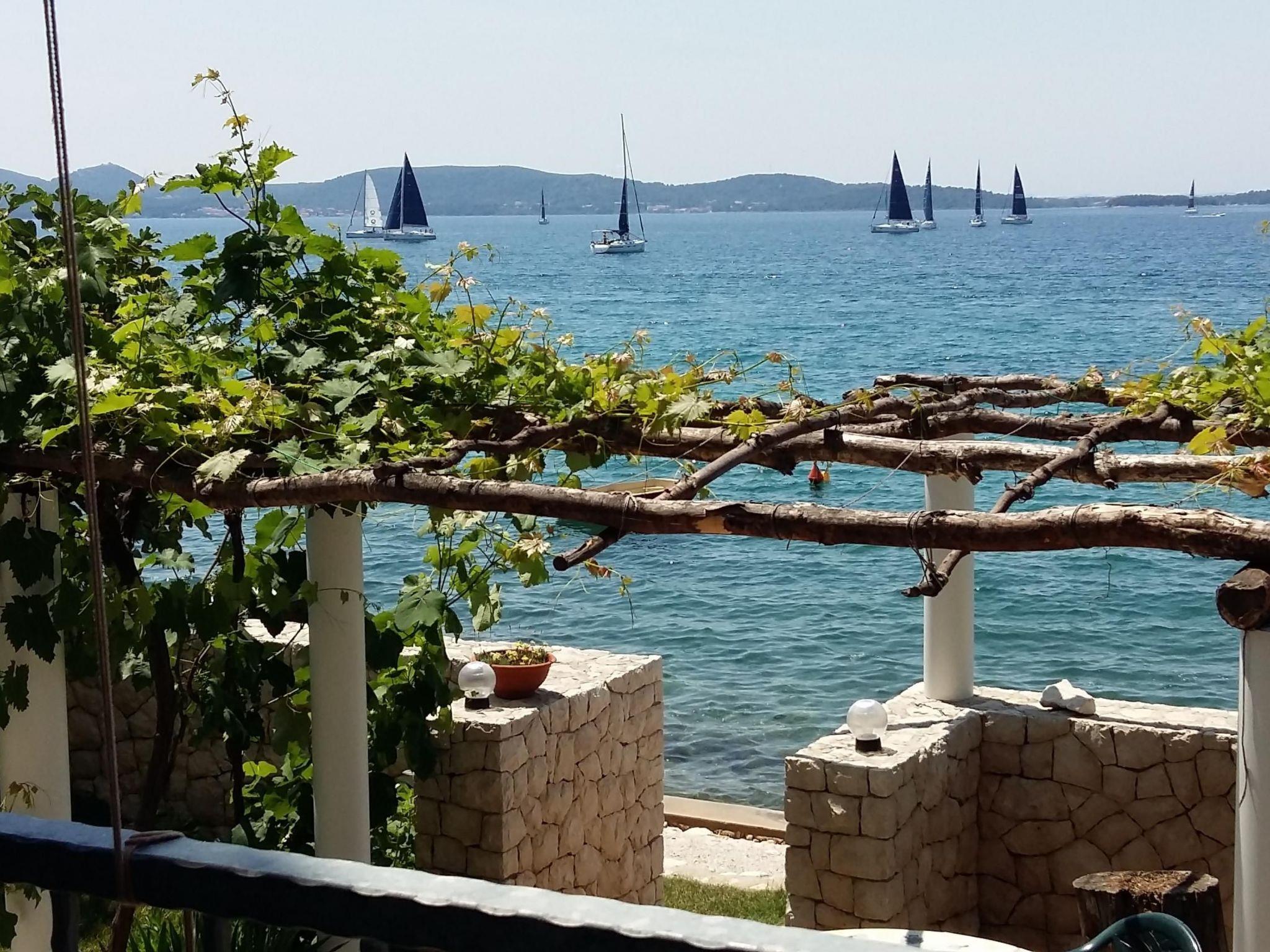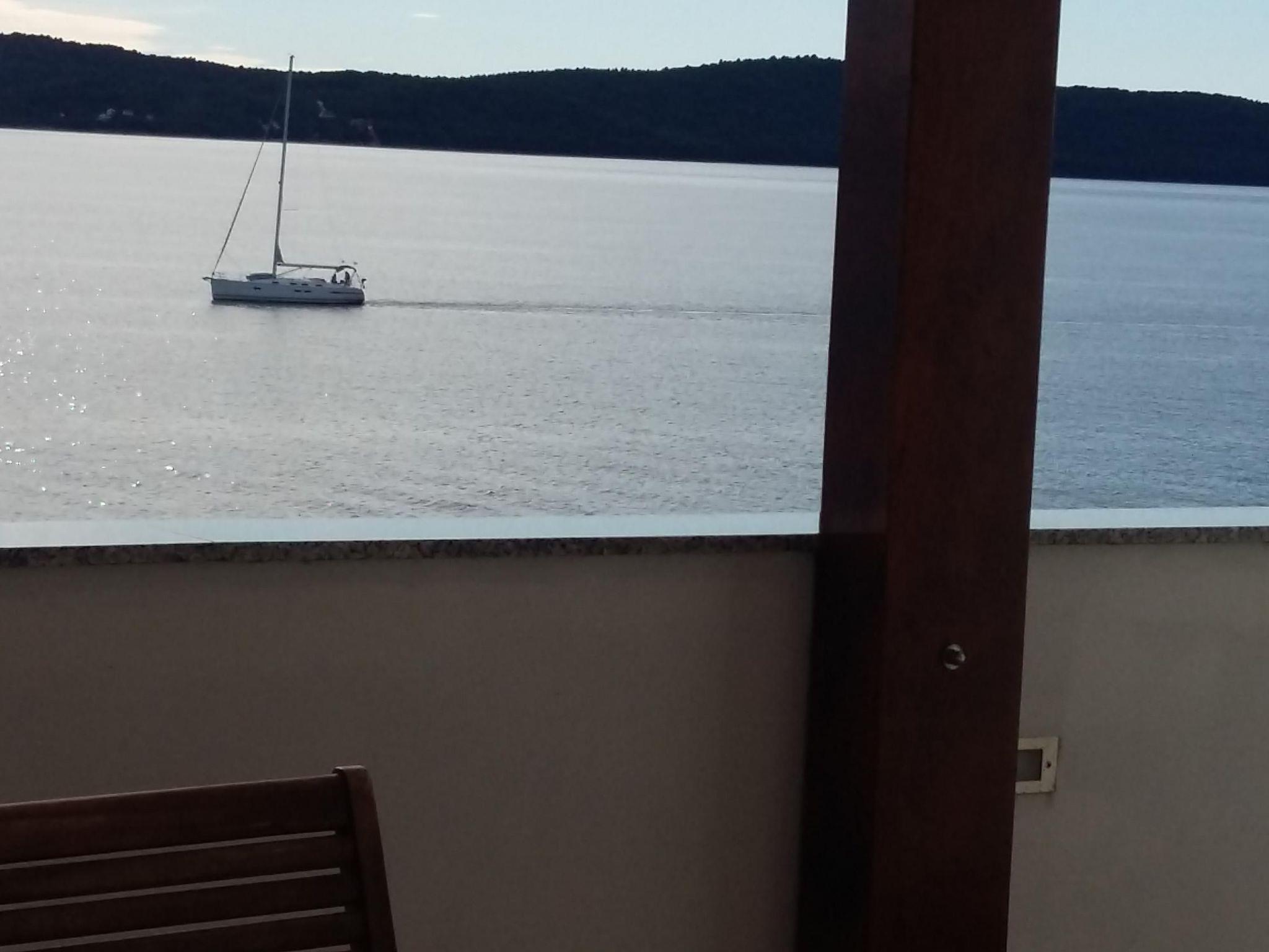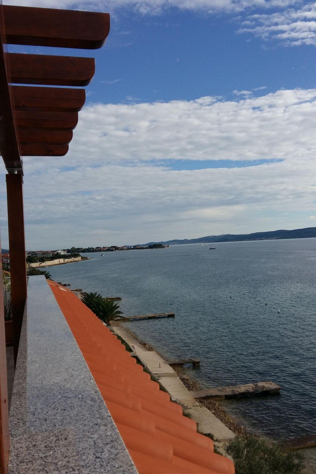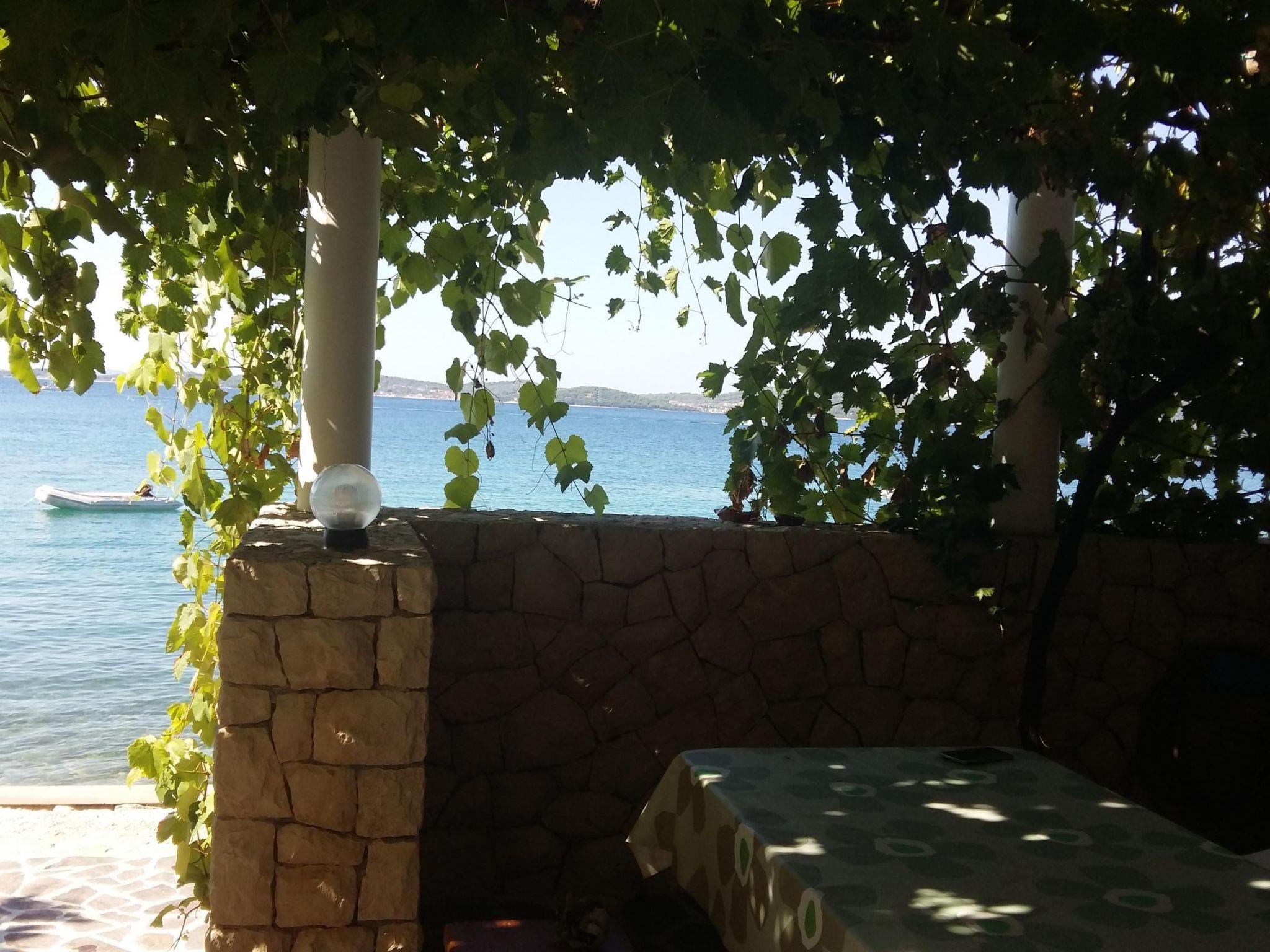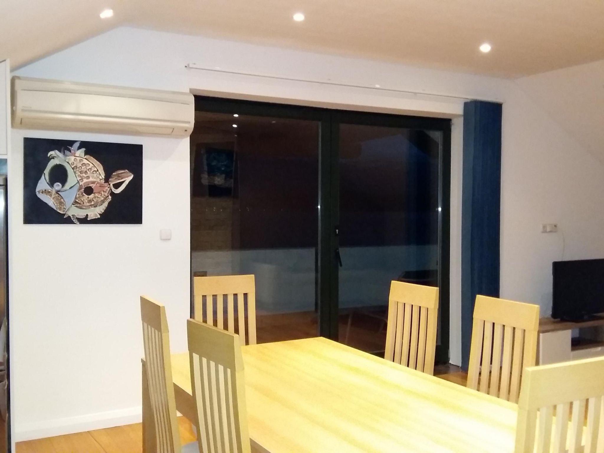 The living room provides access to the 30m² terrace with a typical Croatian fireplace grill and garden furniture. Enjoy the breathtaking view from here of the sea and the islands.