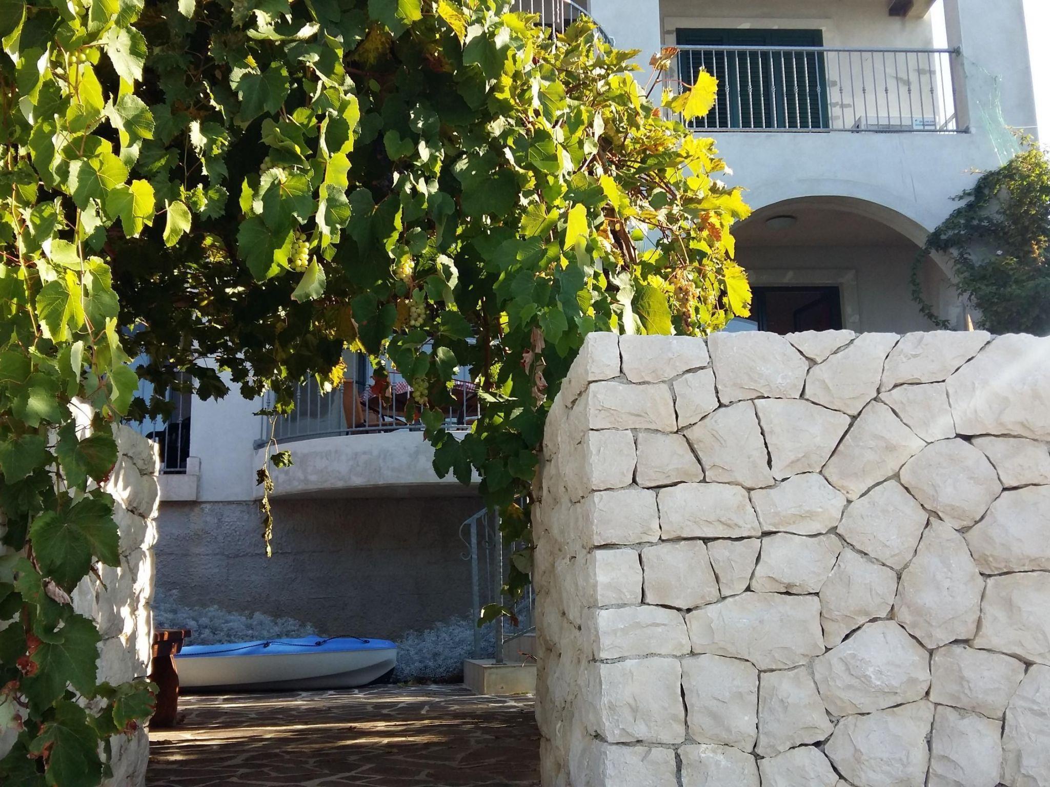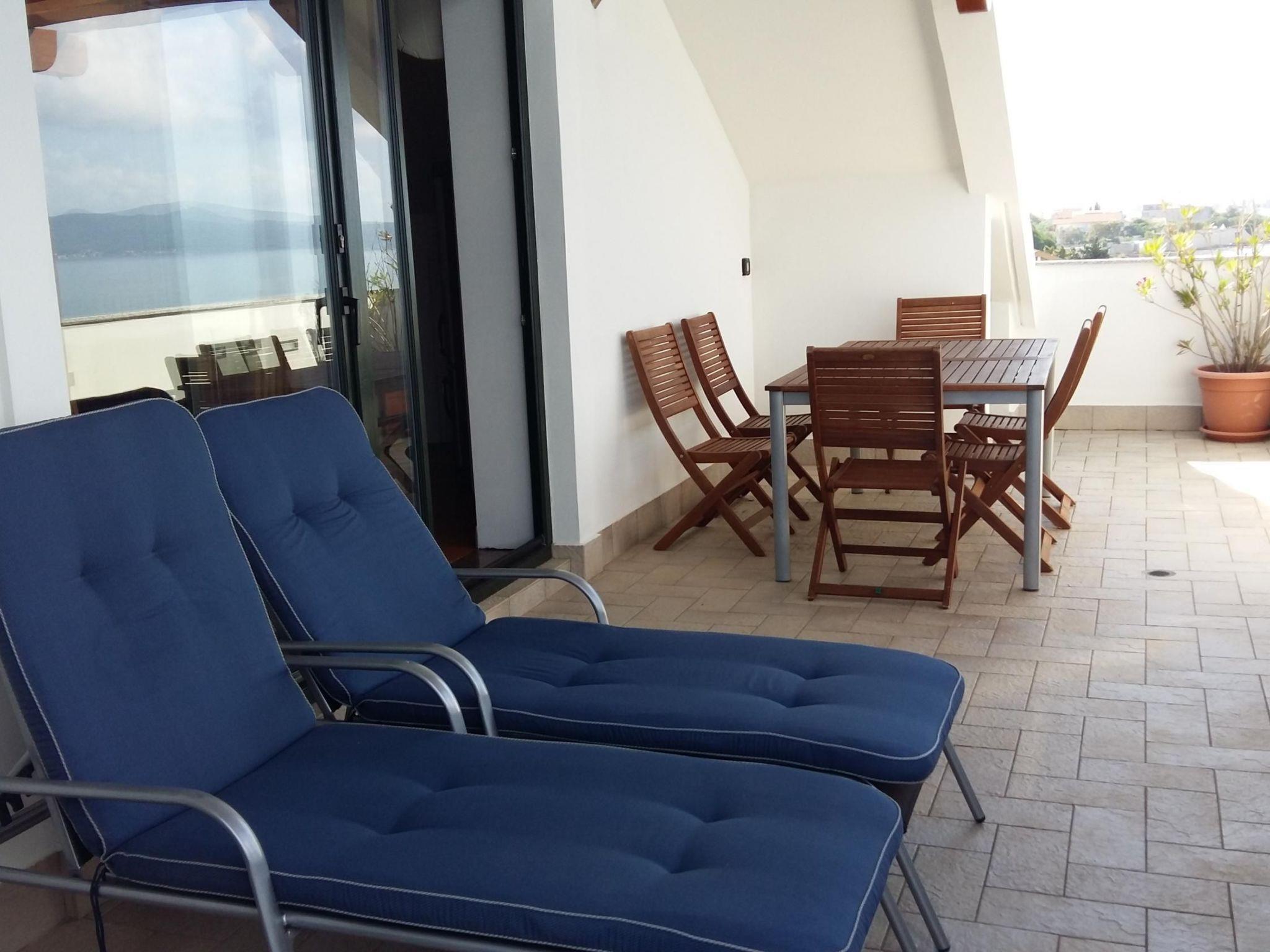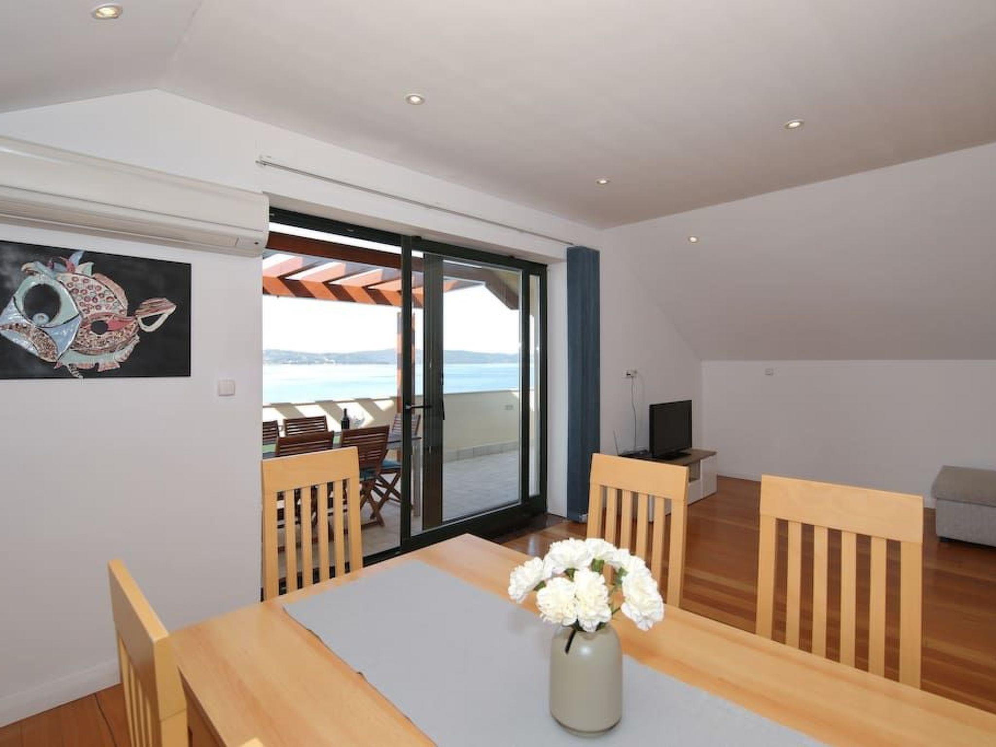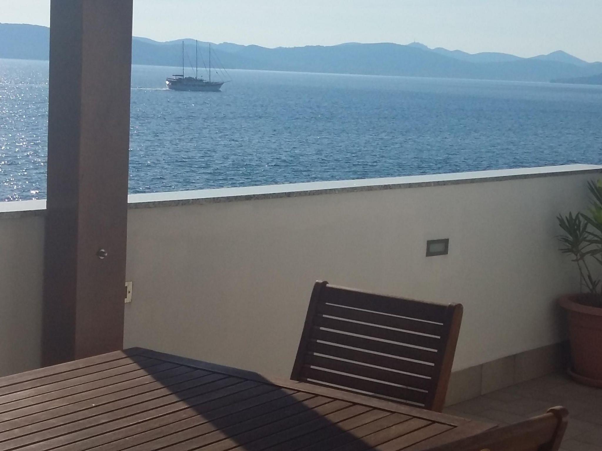 The living room provides access to the 30m² terrace with a typical Croatian fireplace grill and garden furniture. Enjoy the breathtaking view from here of the sea and the islands.