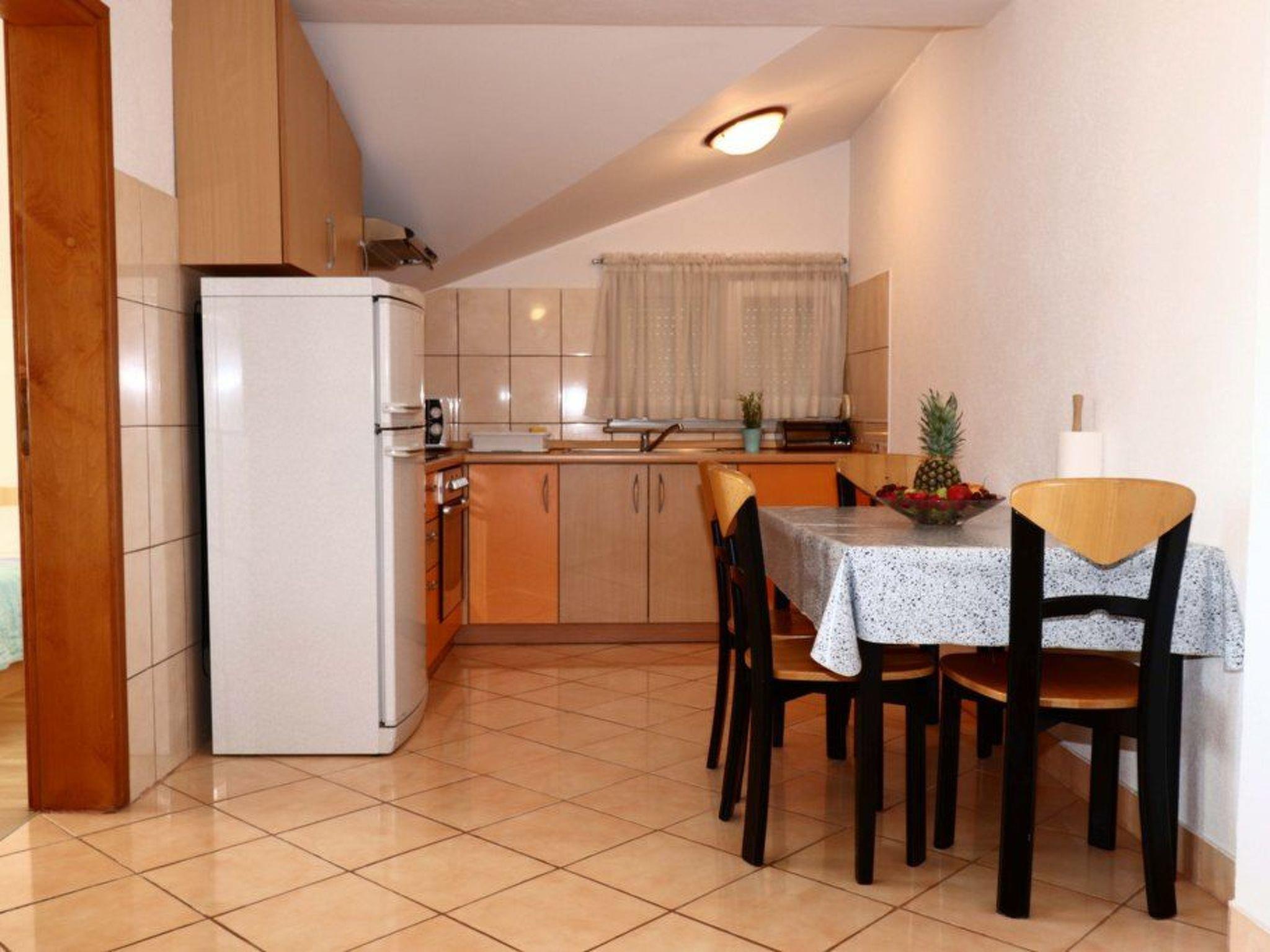 The apartment A4 is on the second floor and is ideal for 4-5 people. It has two bedrooms, a living room-bedroom, a kitchen with a dining table for six people, a bathroom with a shower and WC. Towels and bed linen are included in the price.