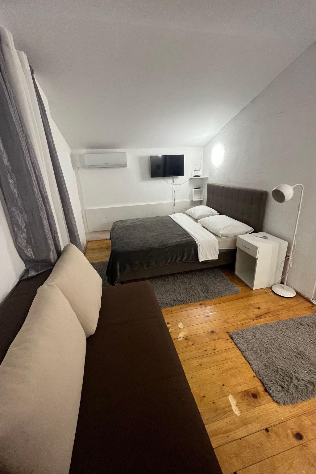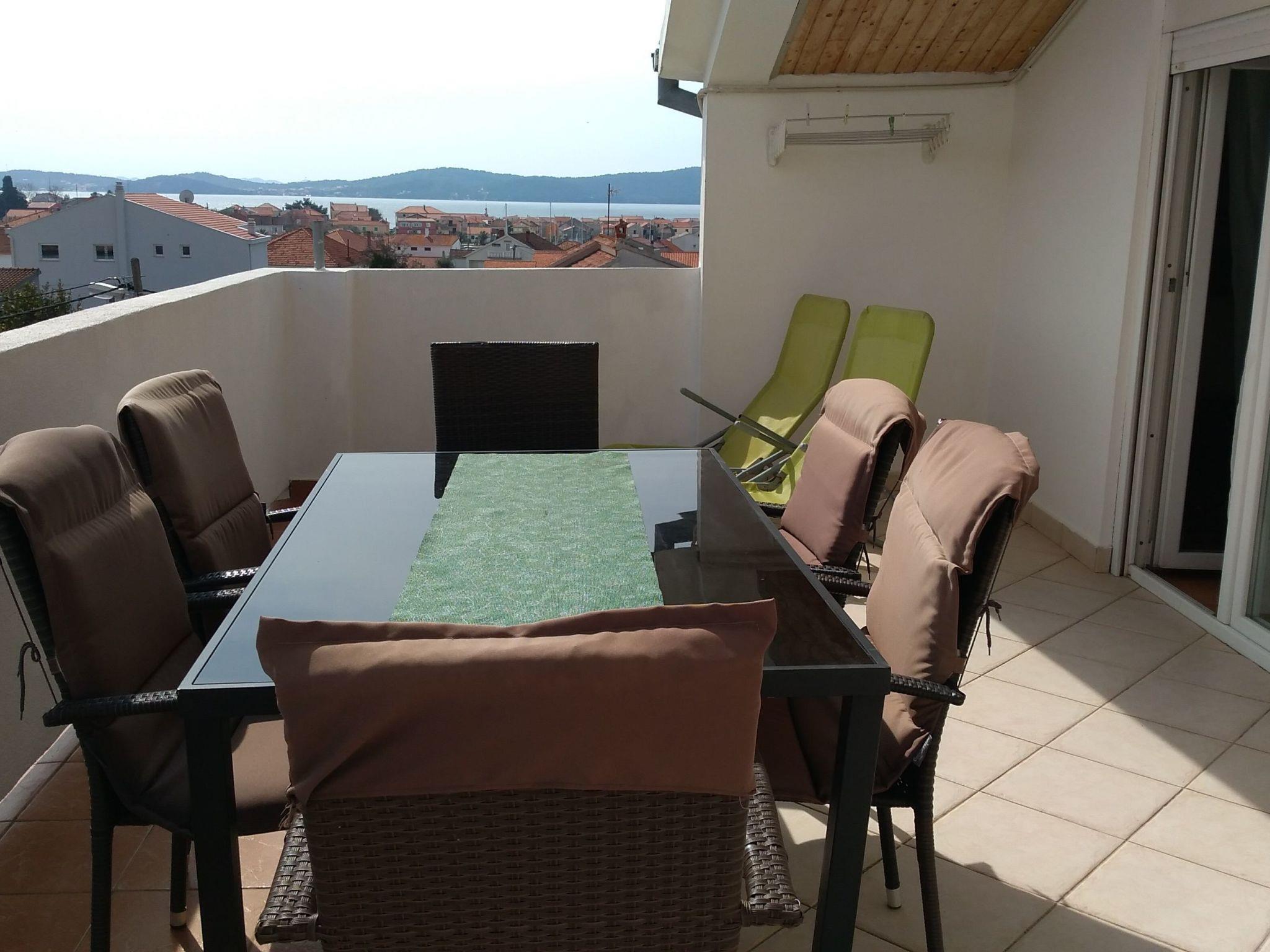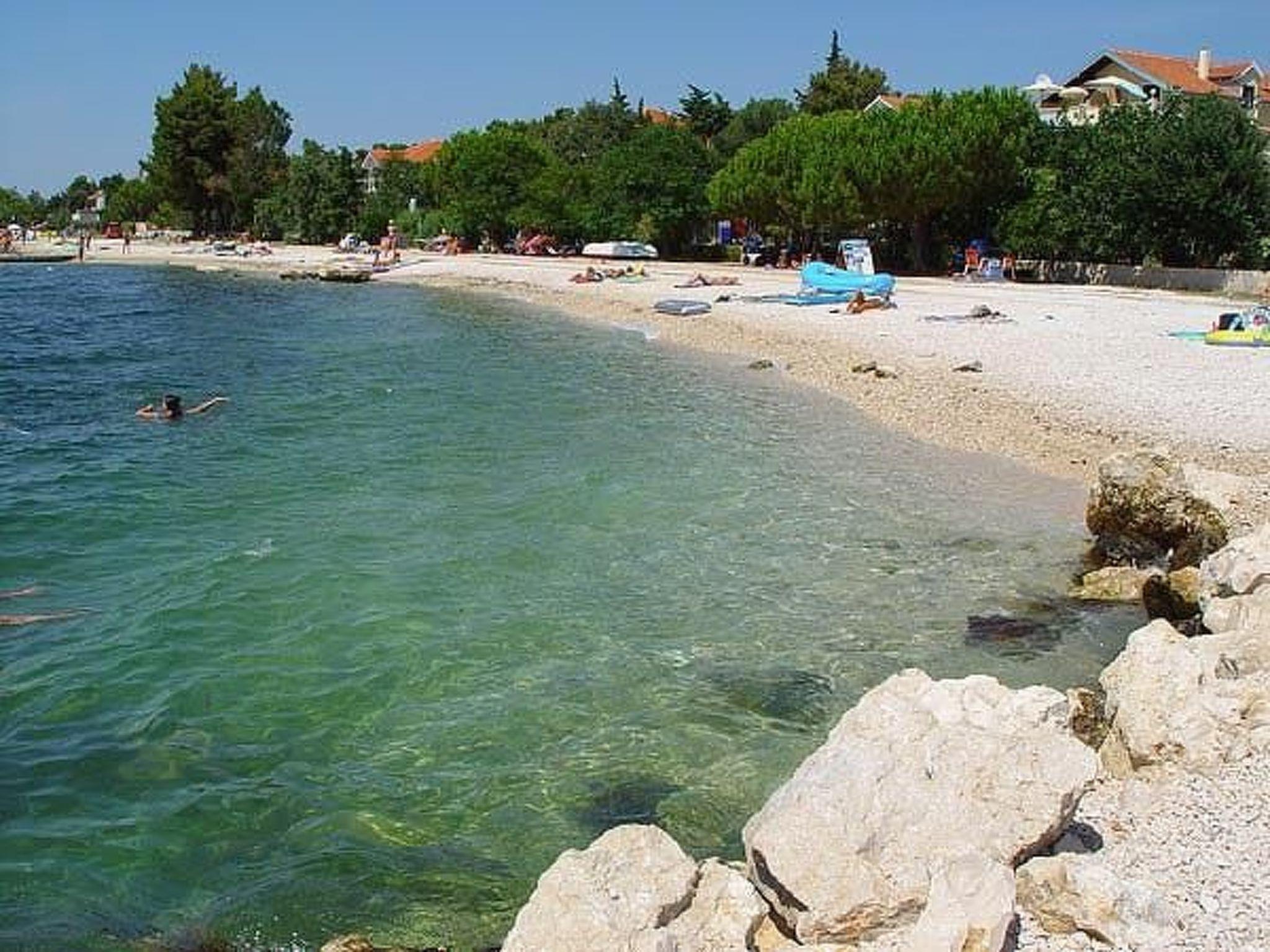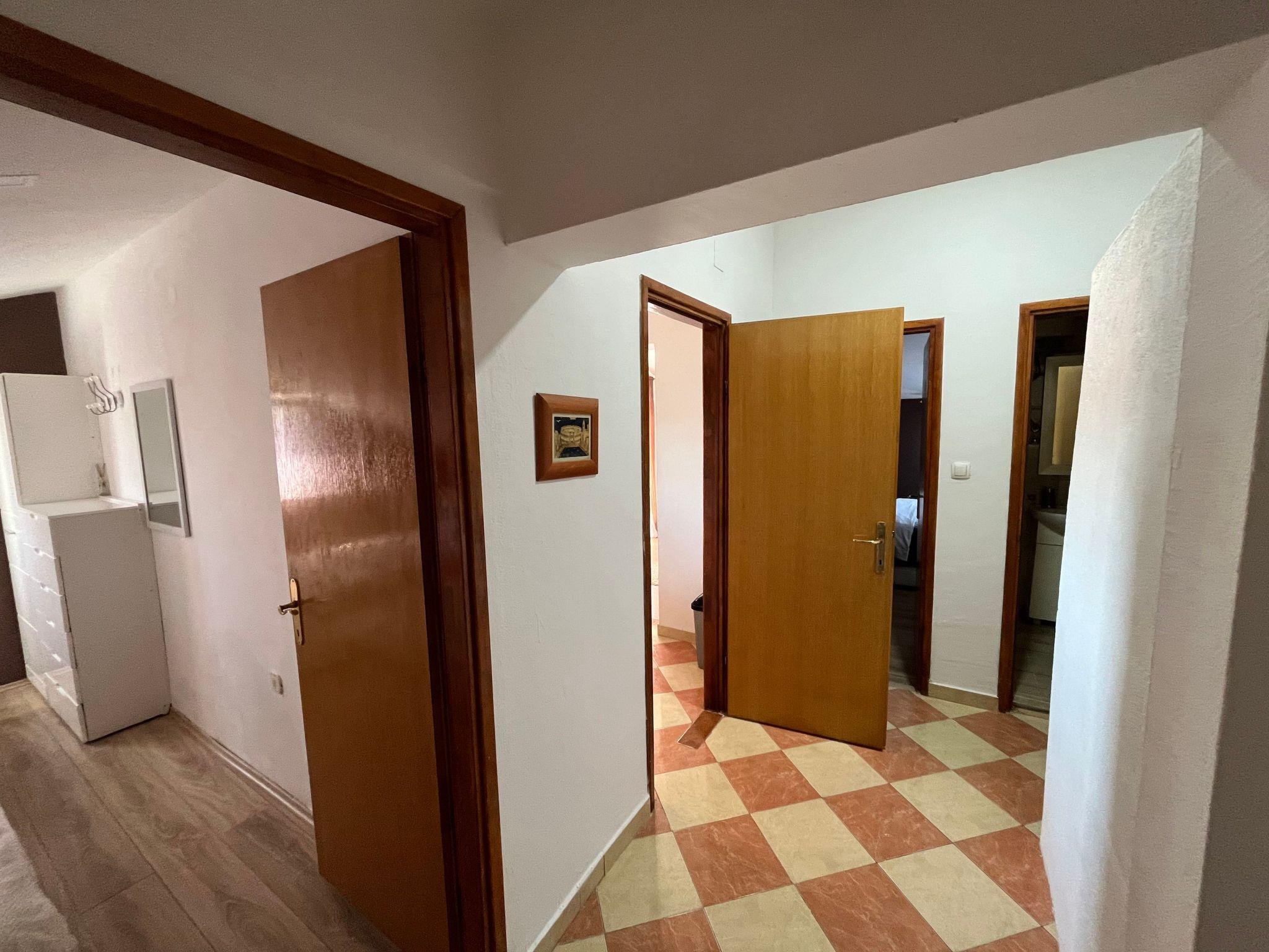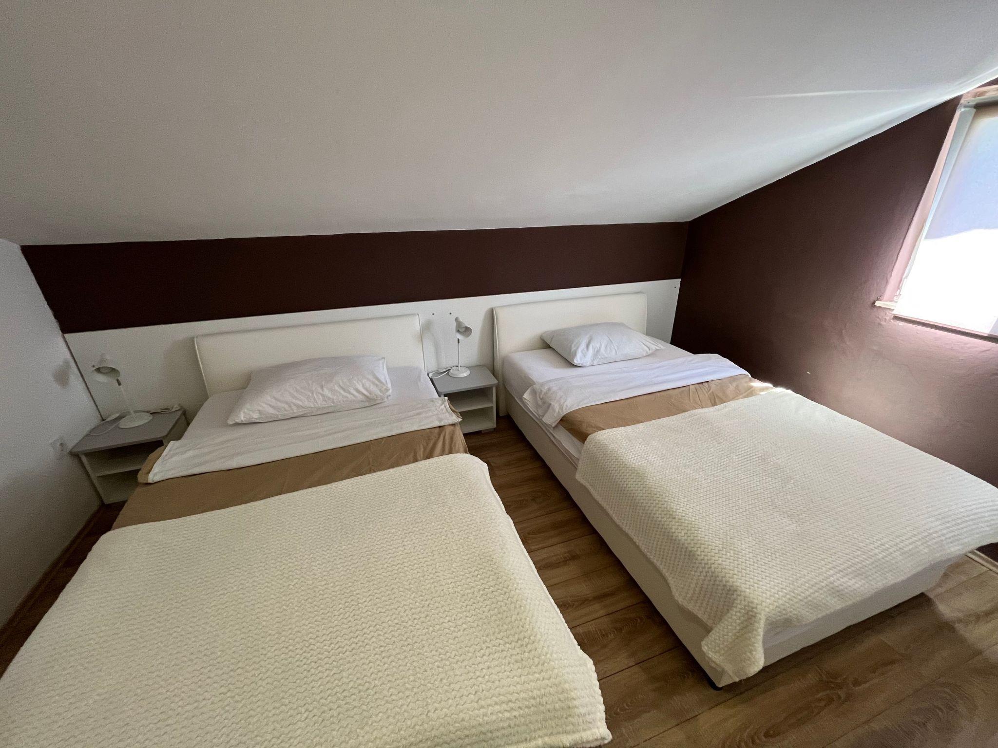 Three bedroom apartment for eight persons This apartment has 2 bathrooms, 3 bedrooms, kitchen, big terrace with a sea view and a living room where can stay one or two extra people on the sofa bed. In one bedroom there are 2 single beds, in second are 1 double bed and in third is double bed. In the big kitchen are: big fridge,electric stove, dishwasher, mixer, microwave, toster, aparat coffee and in one bathroom is washmachine. Apartment is great for a family or groups. In apartment is everything what is neccessary, has parking, garden and visitor tax is included.The following description is a first draft, which is still awaiting revision. Please contact our Customer Service if it contains any gaps.