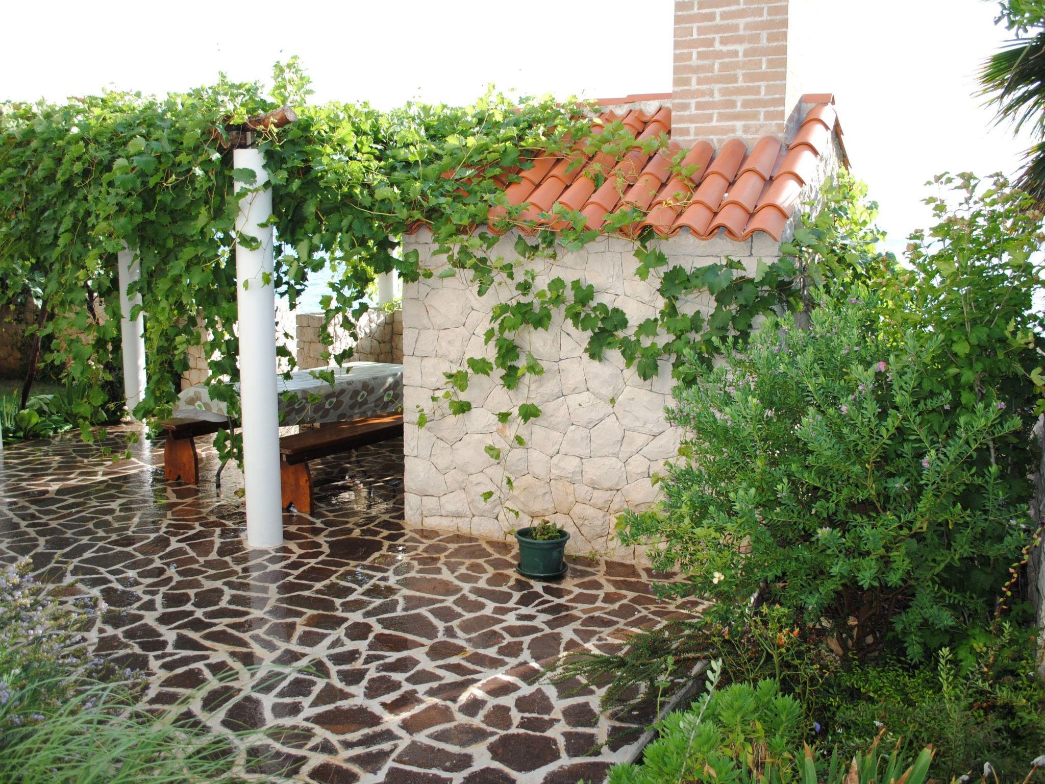 The balcony with garden furniture affords a wonderful view of the sea. The garden also has a