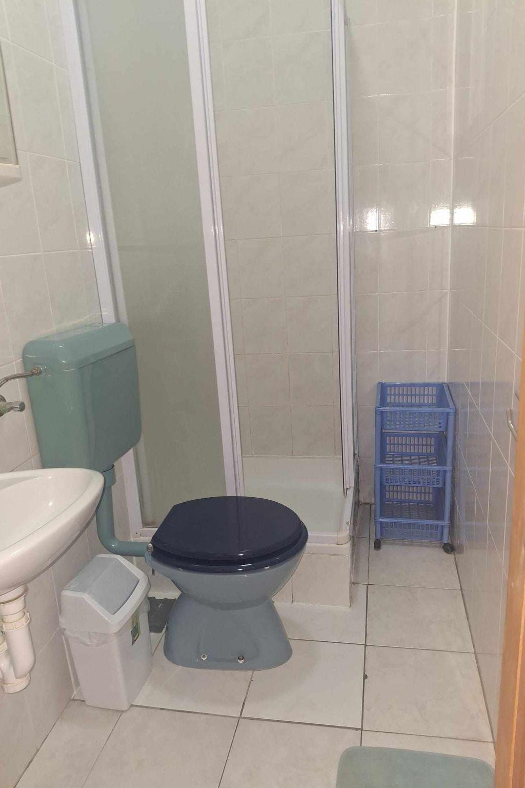 The 100m² apartment is fully air-conditioned, is on the first floor and can accommodate up to seven people. The two bedrooms with a sea view are each furnished with a double bed 200cm wide and a wardrobe. The first bedroom also has a bunk bed that is also suitable for adults. The second has an additional single bed 90cm wide. The living room-kitchen provides a large oval dining table and is equipped with a fridge, stove, oven, kettle and toaster. A modern flatscreen TV is mounted on the wall opposite the kitchen unit. The two bathrooms each have a shower, washbasin, WC and hairdryer. Wi-Fi and cable TV are available.