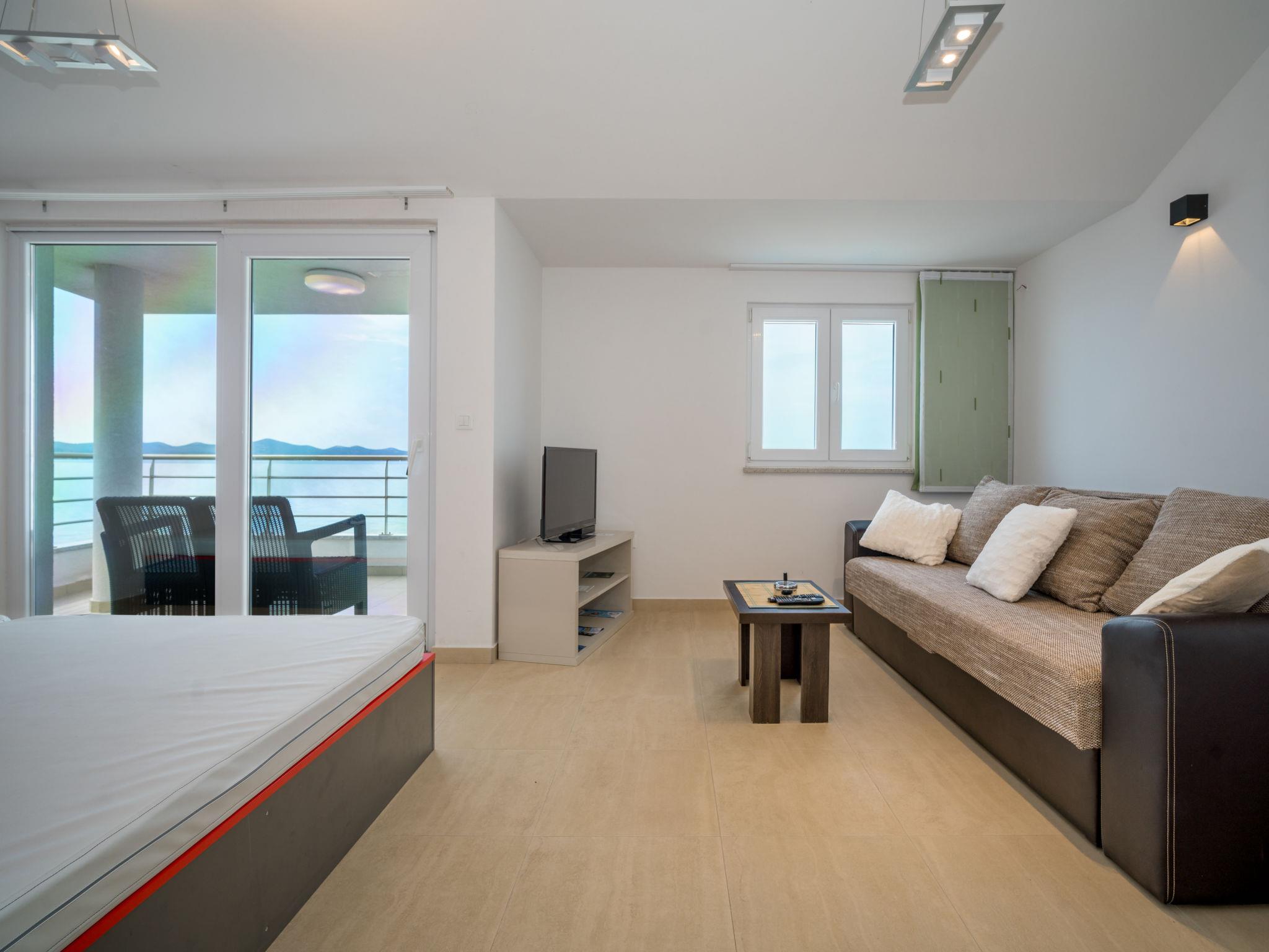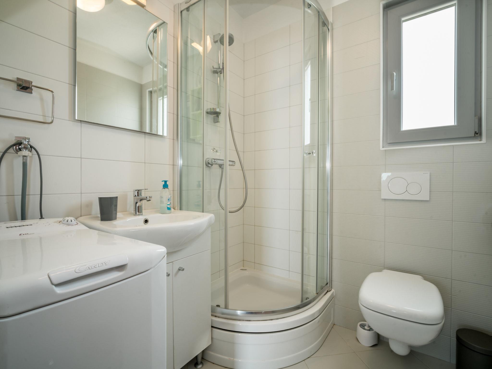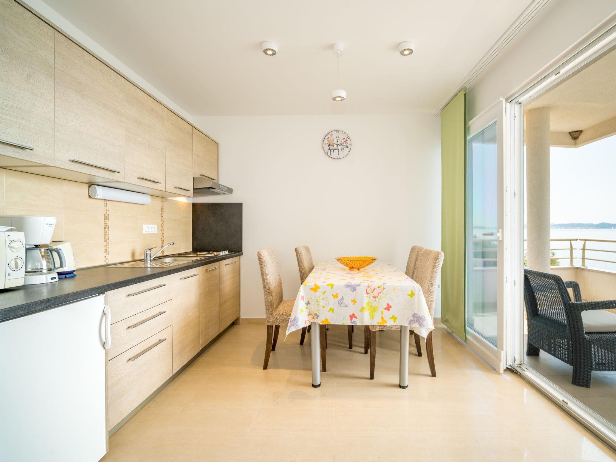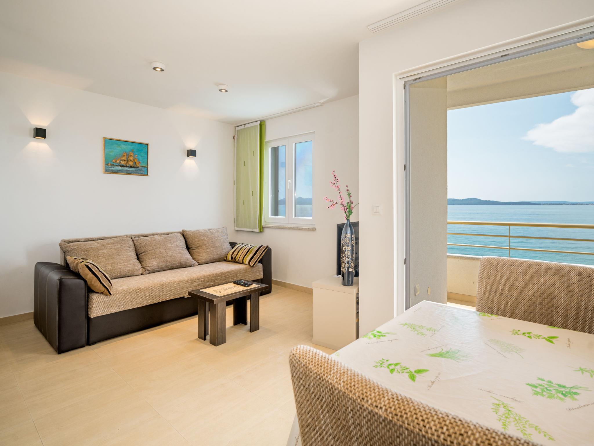 Kožino 8 km from Zadar: Single-family house "Villa Kožino", 3 storeys. In a quiet, sunny position, at the seaside, on the beach. Private: property 355 m2 (fenced), swimming pool angular, heated (8 x 3 m, 28 m2, depth 150 cm, seasonal availability: 30.Mar. - 26.Oct.). Outdoor shower, hot tub, pergola (15 m2), garden furniture, barbecue. In the house: internet access, washing machine. Parking (for 5 cars) at the house on the premises. Shop 200 m, restaurant 1.5 km, rocky beach, concrete beach 10 m. Tennis 8 km. Nearby attractions: Aquapark 8 km. The house consists of 6 apartments rented as one unit.