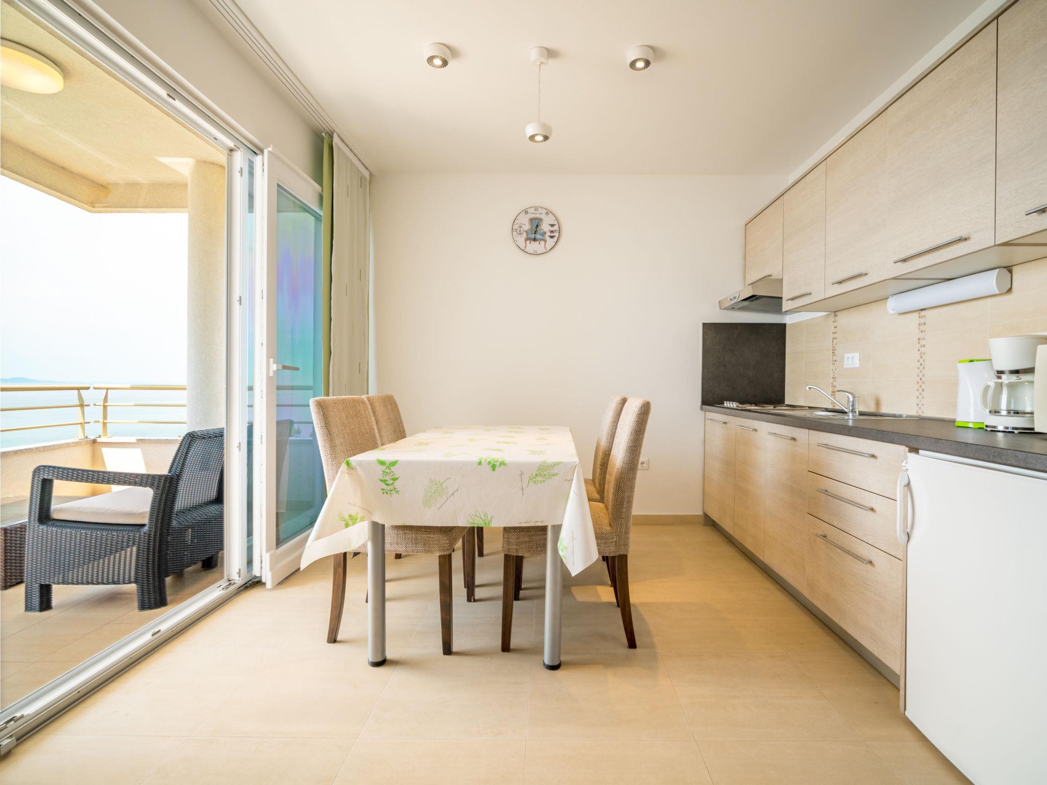 12-room house 204 m2 on 3 levels, south-west facing position. Living/dining room 20 m2 with kitchen corner and satellite TV (flat screen), air conditioning. Exit to the terrace. 1 room with 1 french bed (160 cm, length 200 cm). Living/dining room 20 m2 with satellite TV (flat screen), air conditioning. Exit to the terrace. 1 room with 1 french bed (160 cm, length 200 cm). Open kitchen (4 hot plates, dishwasher, microwave, electric coffee machine). 2 showers/WC. Upper floor: living/dining room 20 m2 with kitchen corner and satellite TV (flat screen), air conditioning. Exit to the terrace. 1 room with 1 french bed (160 cm, length 200 cm). Living/dining room 20 m2 with satellite TV (flat screen), air conditioning. Exit to the terrace. 1 room with 1 french bed (160 cm, length 200 cm). Open kitchen (4 hot plates, microwave, electric coffee machine). 2 showers/WC. 2nd upper floor: living/dining room 20 m2 with kitchen corner and satellite TV (flat screen), air conditioning. Exit to the terrace. 1 room with 1 french bed (160 cm, length 200 cm). Living/dining room 20 m2 with satellite TV (flat screen), air conditioning. Exit to the terrace. 1 room with 1 french bed (160 cm, length 200 cm). Open kitchen (4 hot plates, microwave, electric coffee machine). 2 showers/WC. 6 terraces 3 m2, covered. Terrace furniture, deck chairs. Marvellous view of the sea. Facilities: washing machine, hair dryer. Internet (WiFi, free). Two apartments on the ground floor, each apartment with living/dining area, open kitchen and bedroom. Two apartments on the 1st floor, each apartment with living/dining area, open kitchen and bedroom. Two apartments on the 2nd floor, each apartment with living/dining area, open kitchen and bedroom. From the terrace view of the unfinished house.