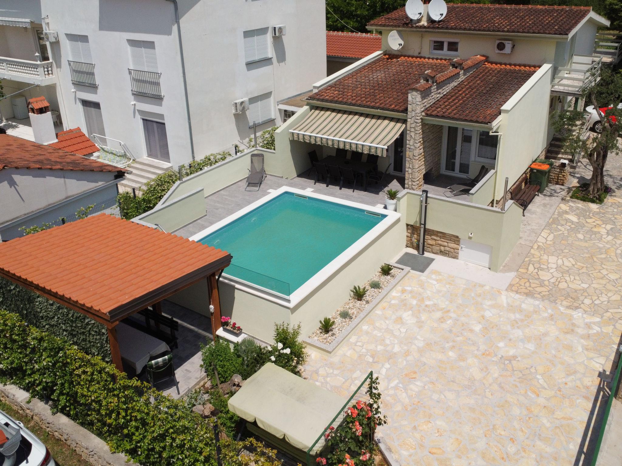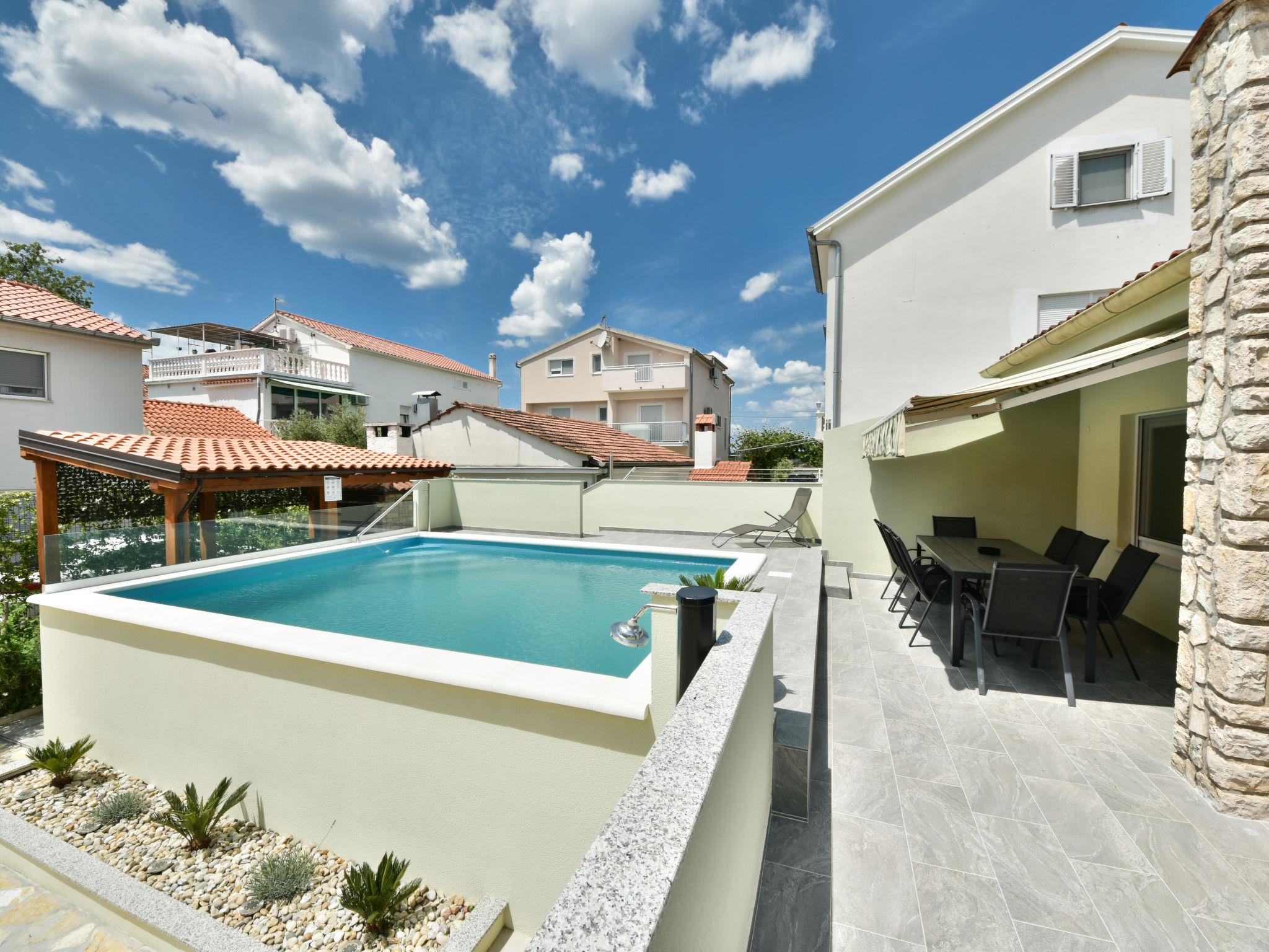 Single-family house "Goga", 3 storeys. 2.5 km from the centre of Sukošan, in a quiet, sunny position, 100 m from the sea, 100 m from the beach. Private: property 600 m2 (fenced), swimming pool heated (6 x 4 m, 26 m2, depth 145 cm, seasonal availability: 01.May. - 30.Sep.). Outdoor shower, garden furniture, barbecue. In the house: internet access, washing machine. Parking (for 3 cars) at the house on the premises. Shop 50 m, restaurant 300 m, bus stop 250 m, pebble beach 100 m. The owner does not accept any youth groups. Please note: the owner lives on the same property.
