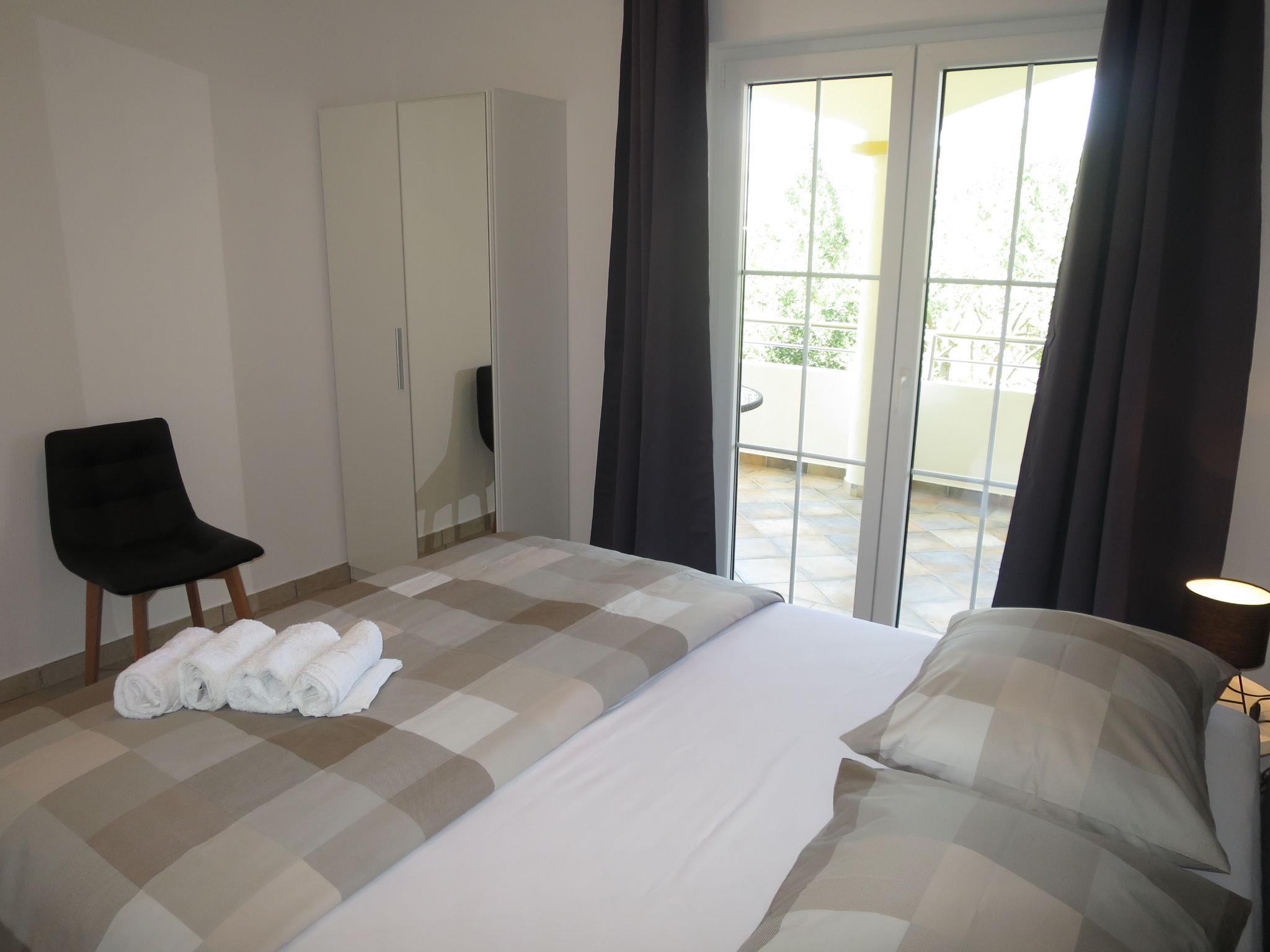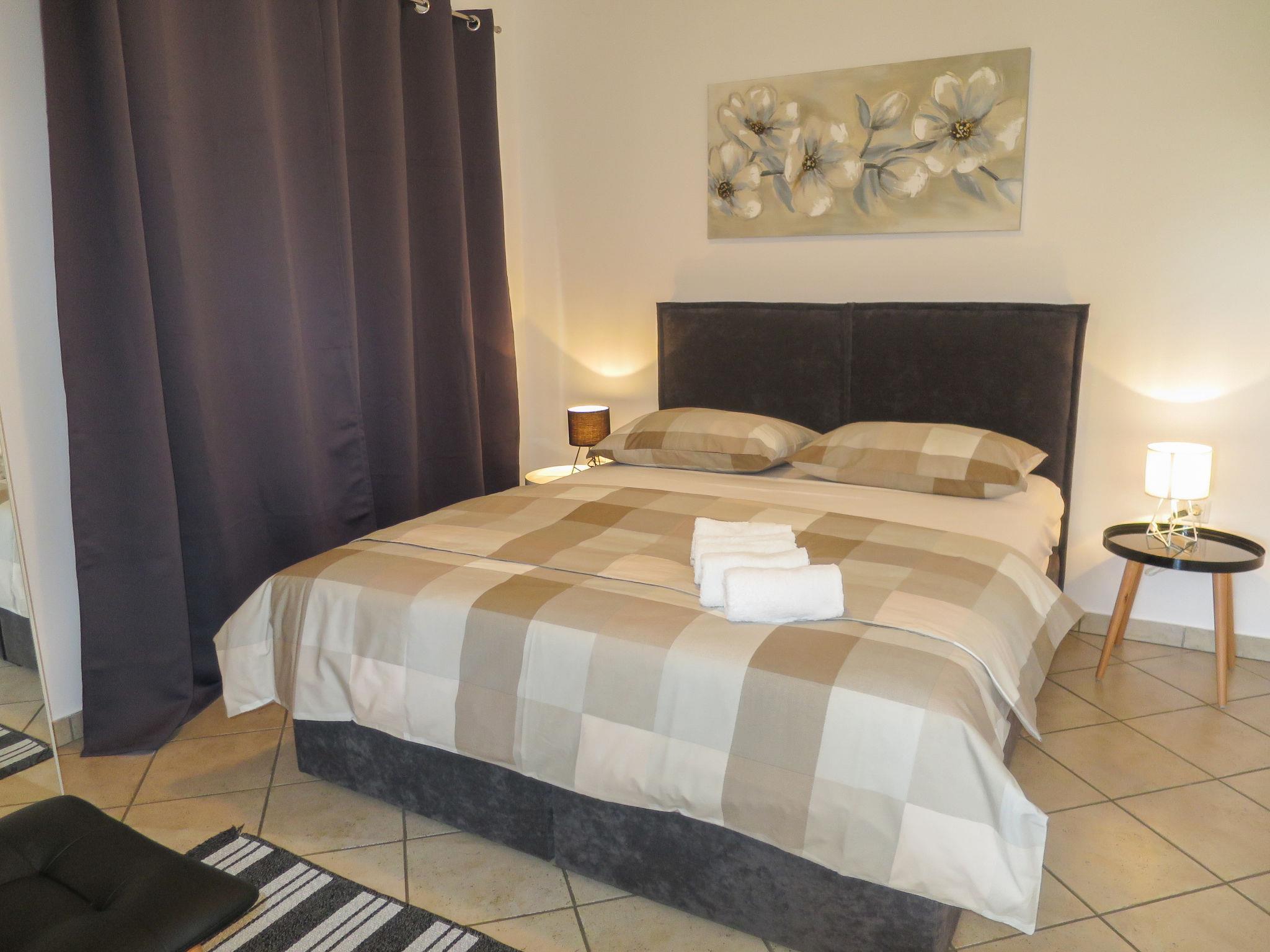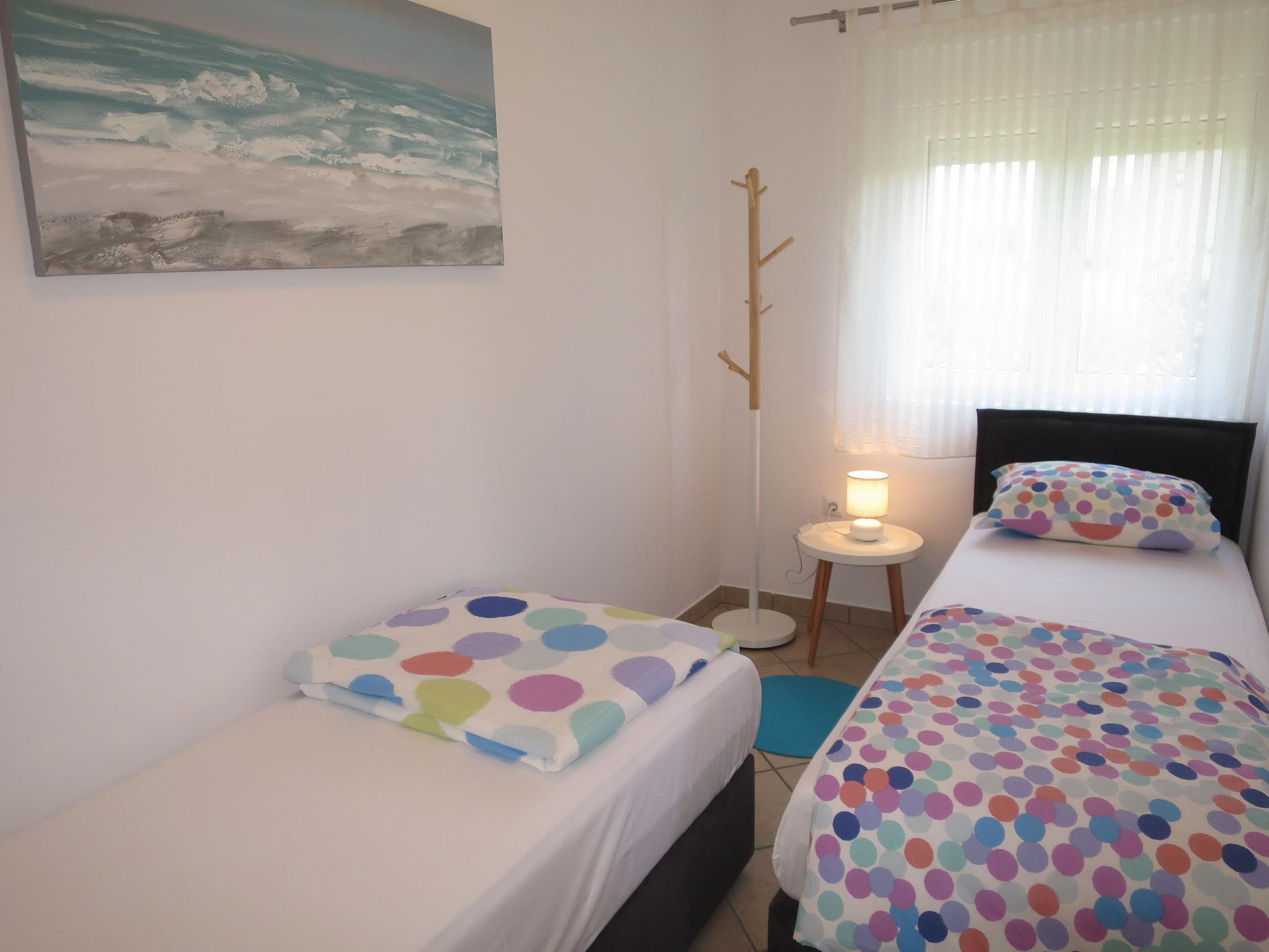 3-room apartment 60 m2 on 1st floor. Living/dining room with 1 sofabed and satellite TV (flat screen), air conditioning. Exit to the balcony. 1 room with 1 french bed (160 cm, length 200 cm). 1 room with 2 beds (80 cm, length 200 cm). Open kitchen (2 hot plates, toaster, kettle, microwave, freezer, electric coffee machine). Shower/WC. No heating option. Balcony. Balcony furniture. Facilities: Internet (WiFi). Parking (1 car).