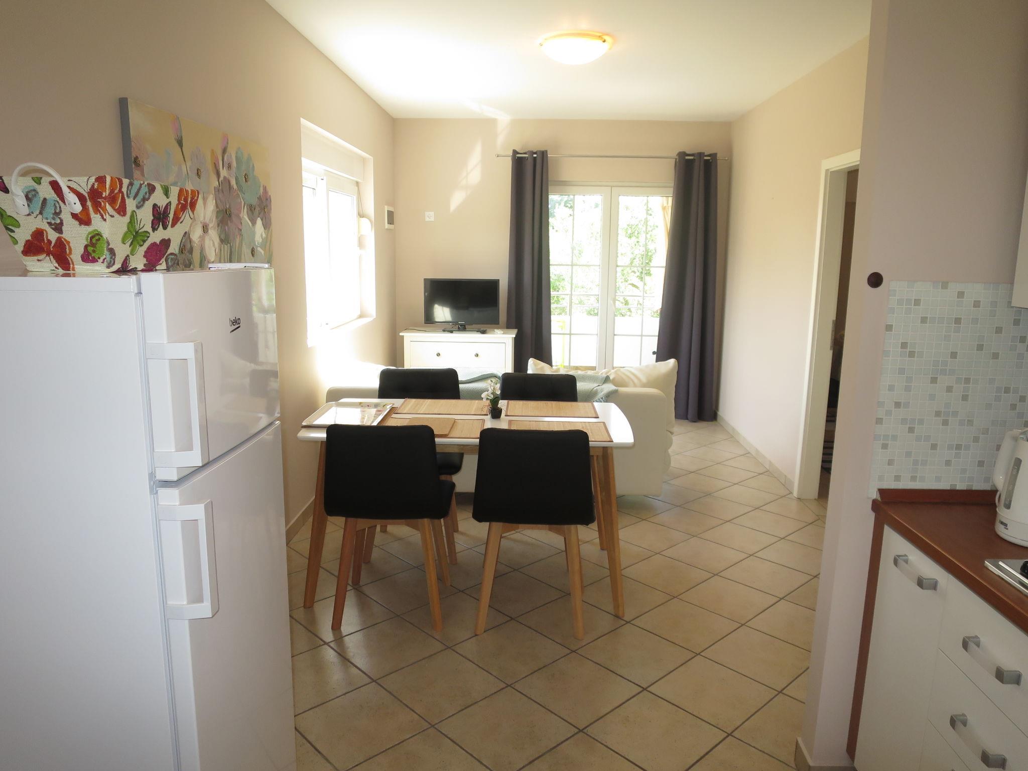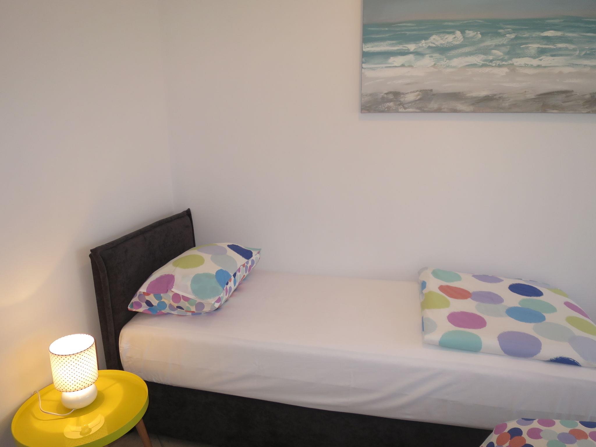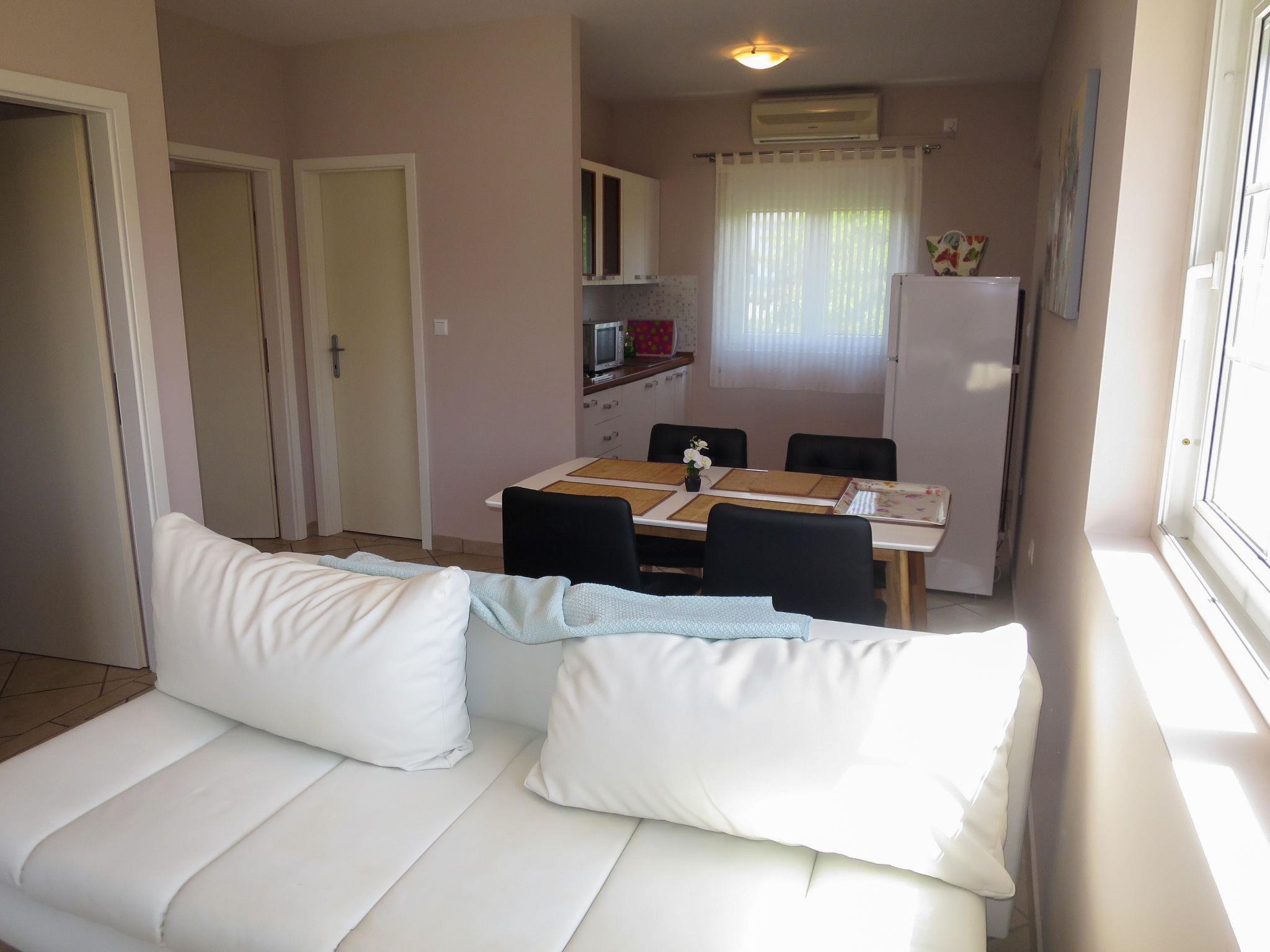 3-room apartment 60 m2 on 1st floor. Living/dining room with 1 sofabed and satellite TV (flat screen), air conditioning. Exit to the balcony. 1 room with 1 french bed (160 cm, length 200 cm). 1 room with 2 beds (80 cm, length 200 cm). Open kitchen (2 hot plates, toaster, kettle, microwave, freezer, electric coffee machine). Shower/WC. No heating option. Balcony. Balcony furniture. Facilities: Internet (WiFi). Parking (1 car).