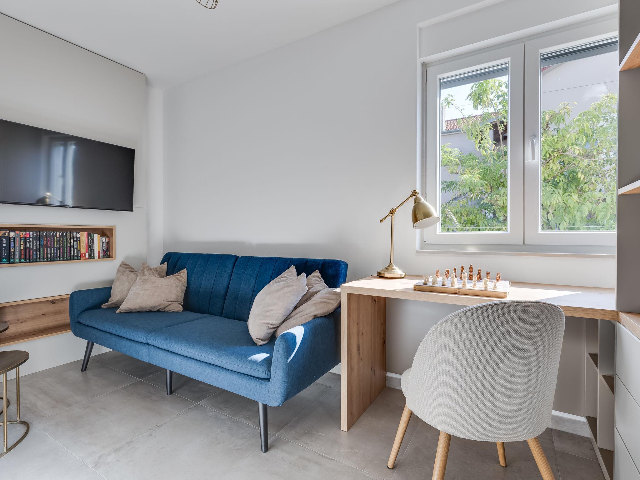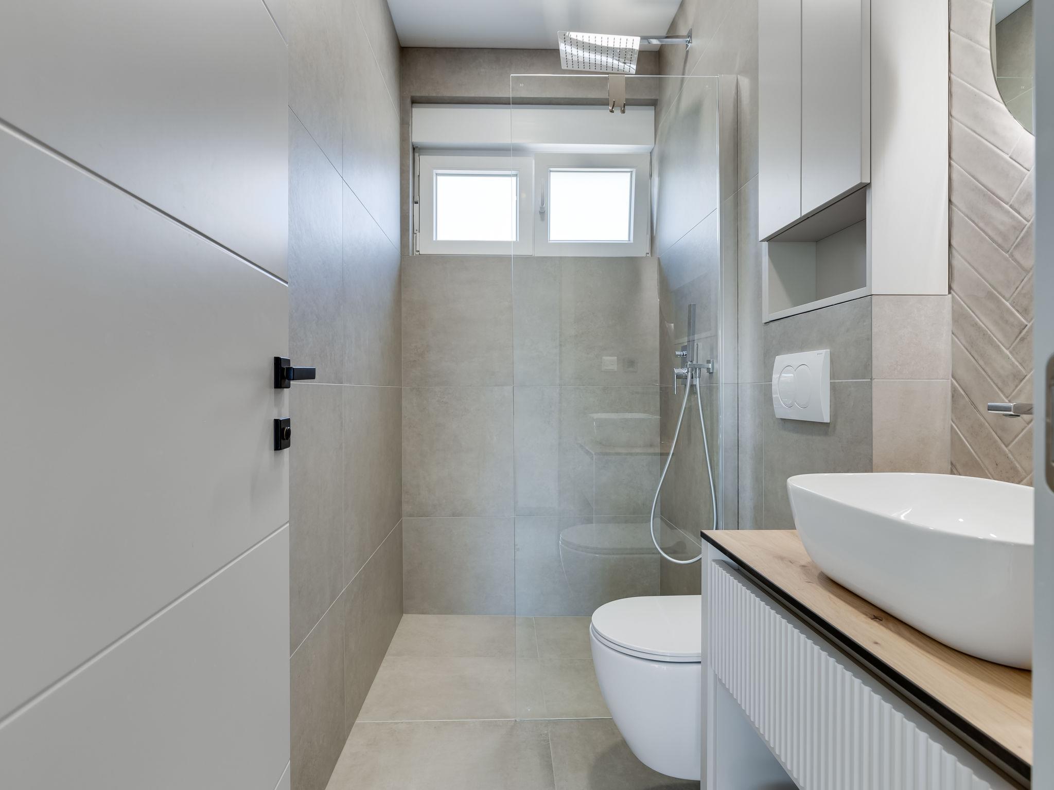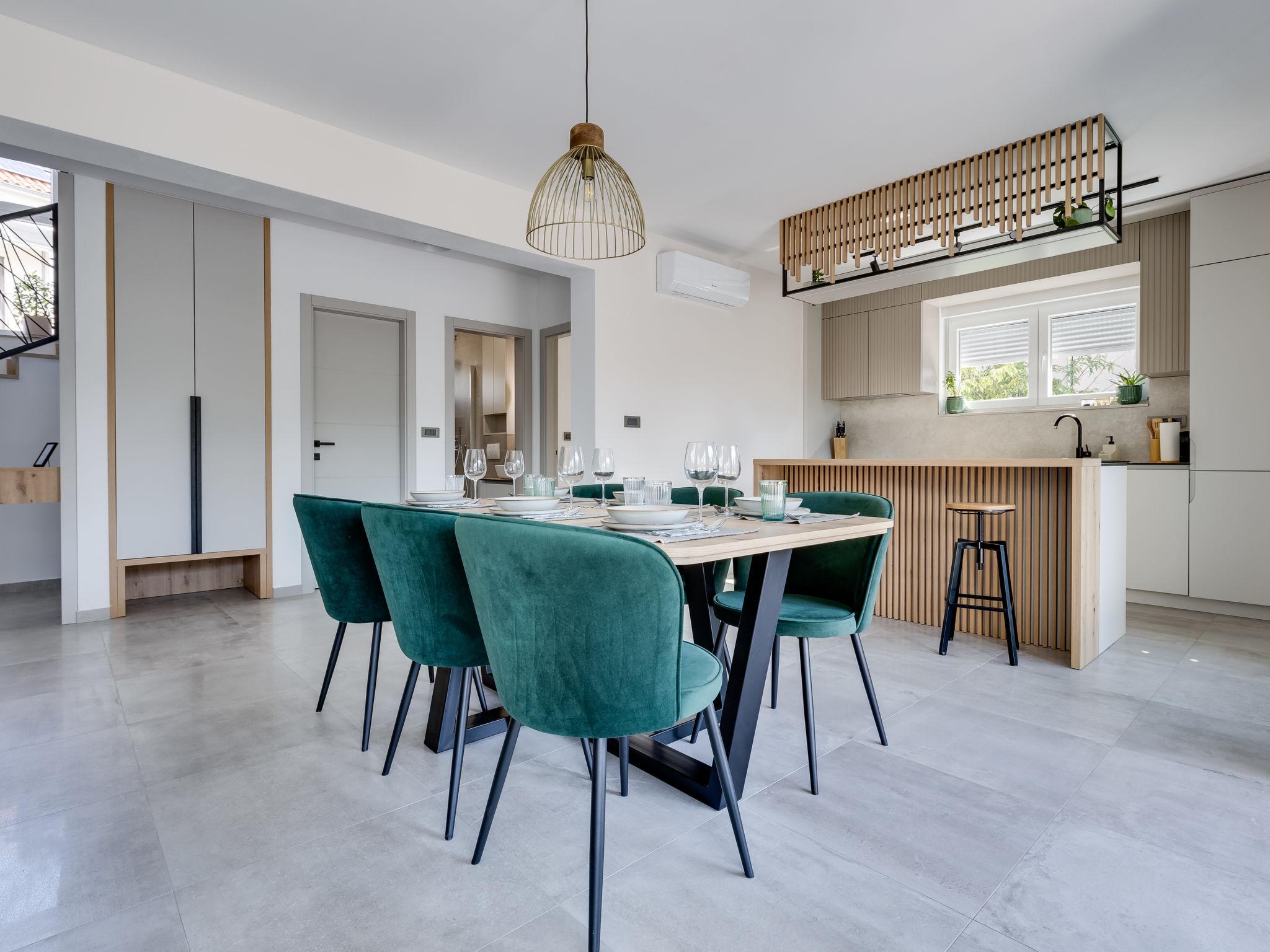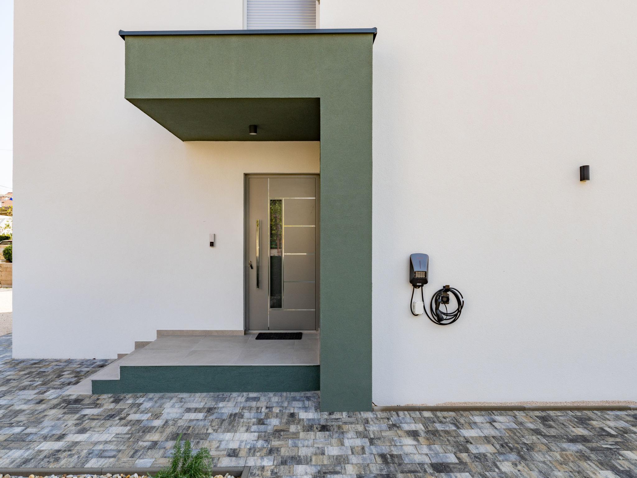Modern single-family house "Amala", 2 storeys. 2.5 km from the centre of Sukošan, in a quiet, sunny position, 100 m from the sea, 100 m from the beach. Private: property 600 m2 (fenced), swimming pool angular, heated (8 x 4 m, depth 145 cm, seasonal availability: 01.May. - 30.Sep.) with internal staircase. Outdoor shower, garden furniture, barbecue. In the house: internet access, washing machine. Parking (for 2 cars) at the house on the premises. Shop 50 m, restaurant 300 m, bus stop 250 m, pebble beach 100 m. Groups of teenagers on request only.