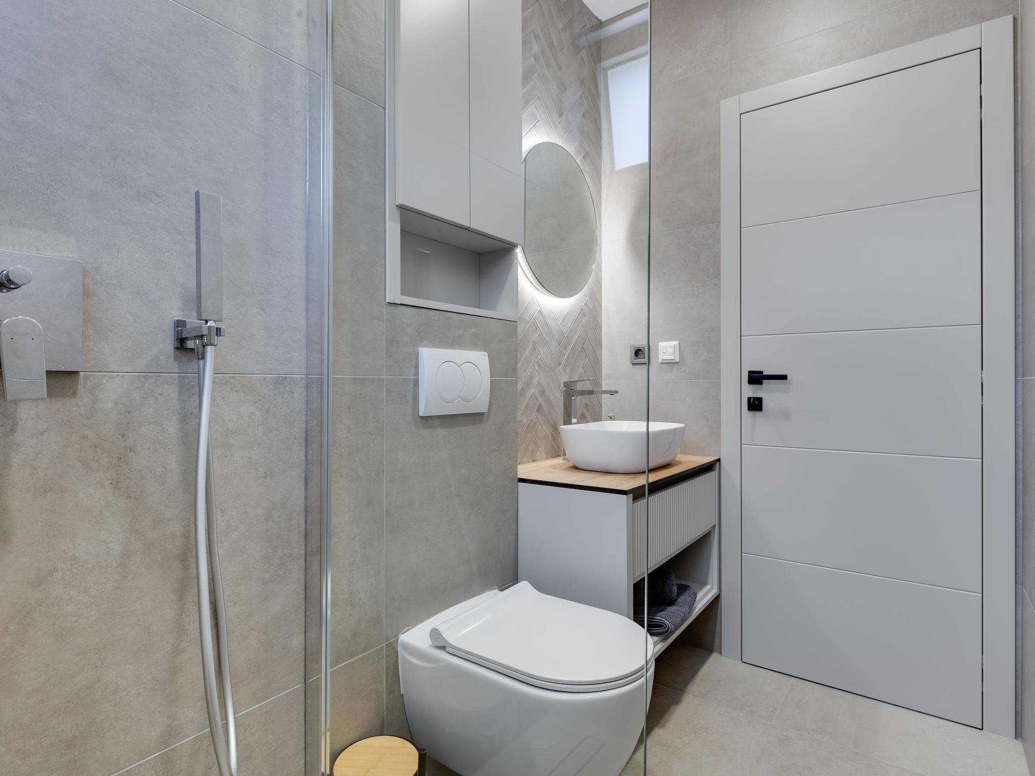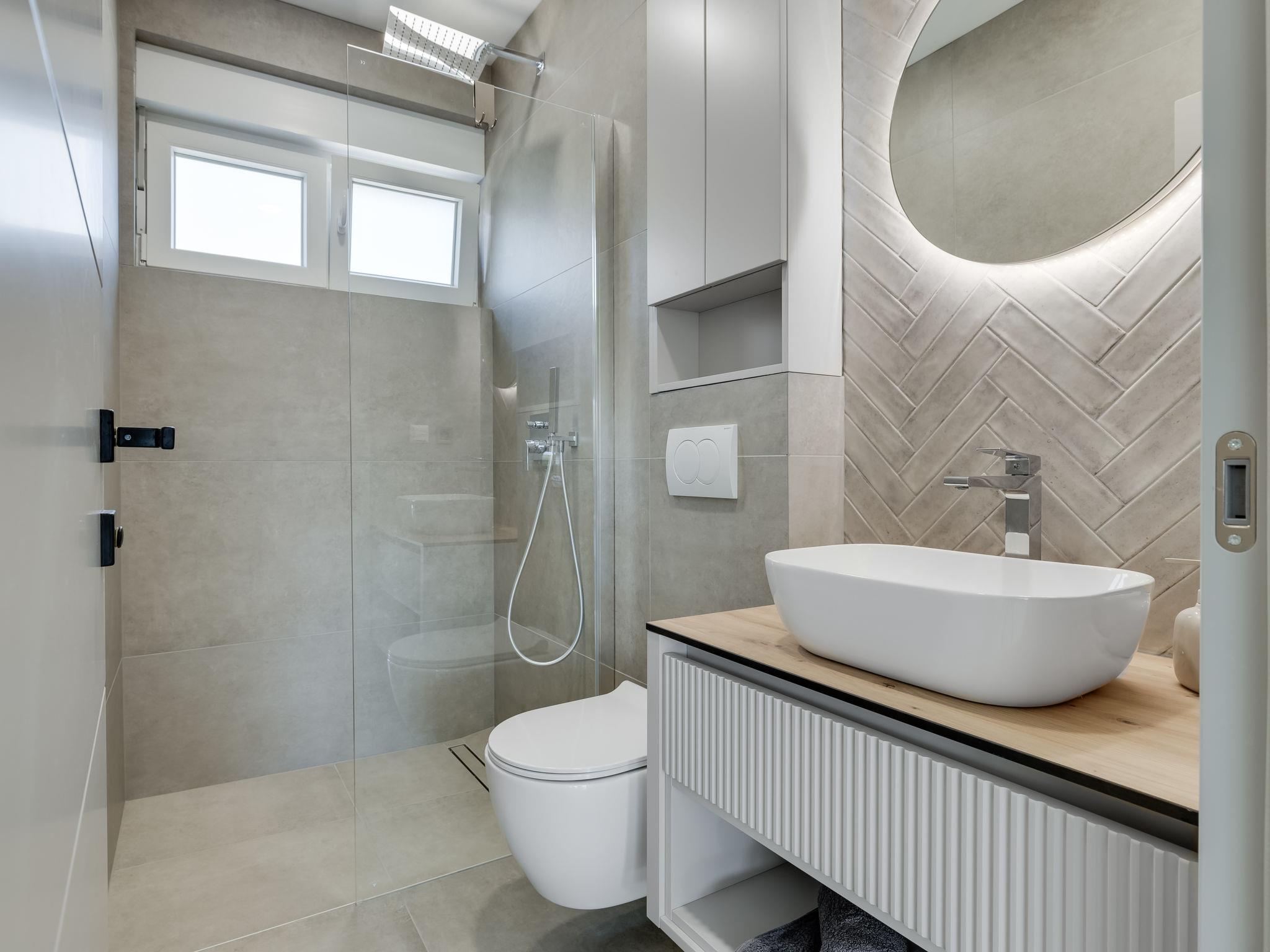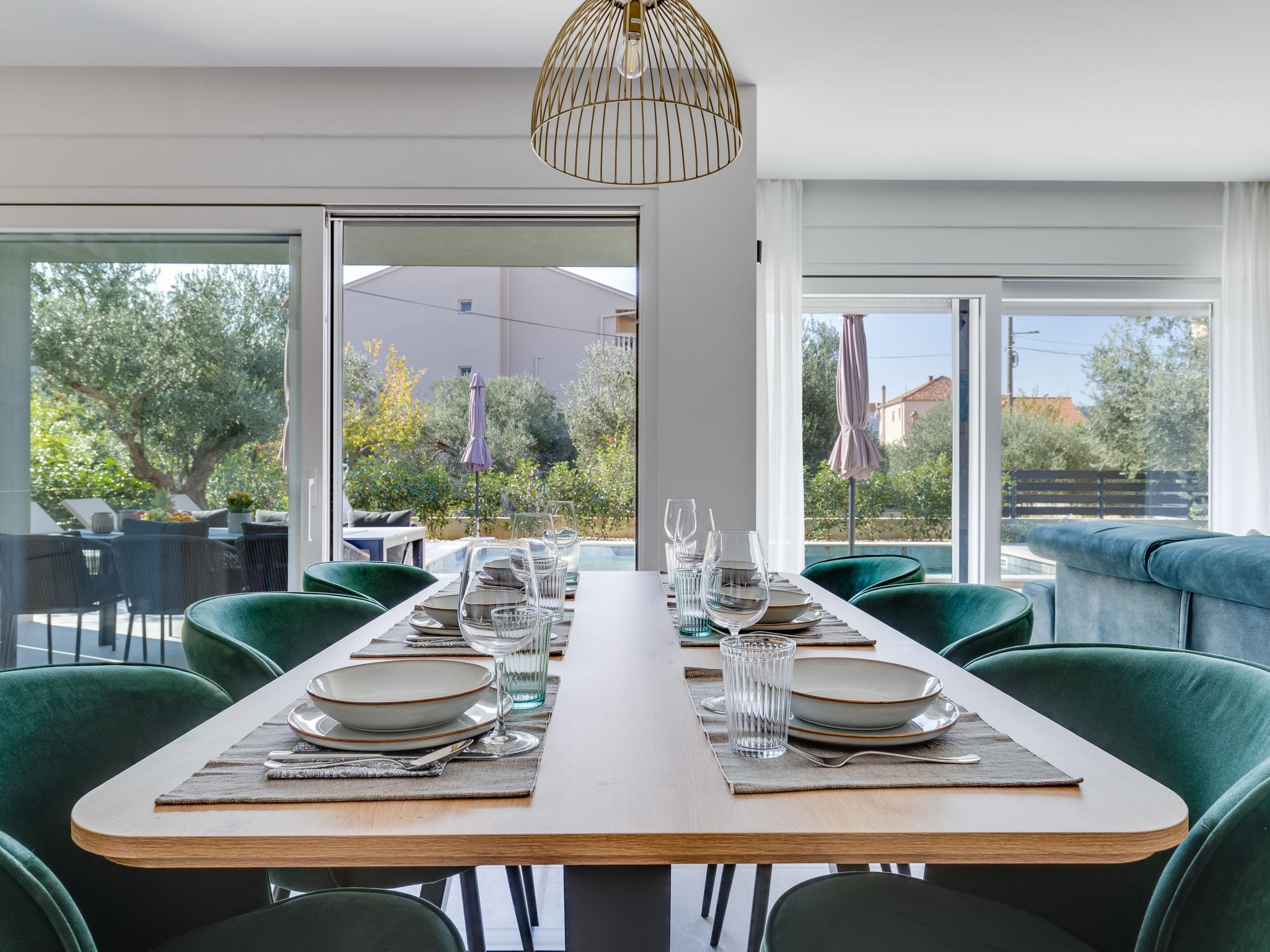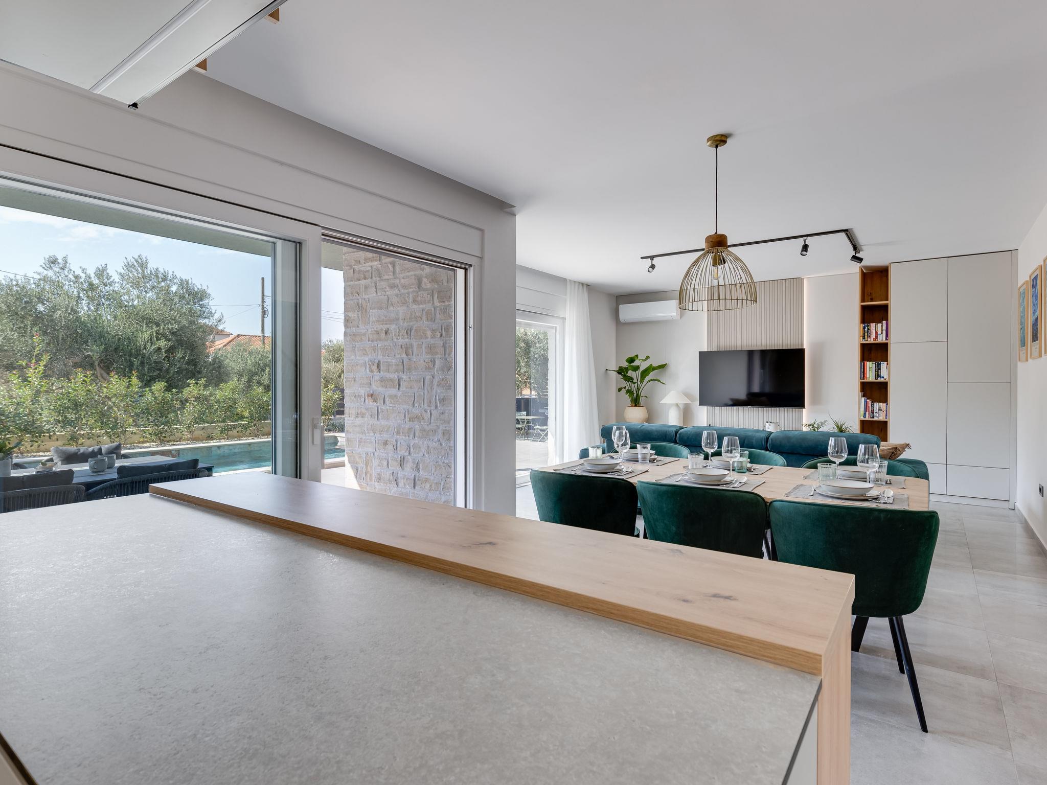 Modern single-family house "Amala", 2 storeys. 2.5 km from the centre of Sukošan, in a quiet, sunny position, 100 m from the sea, 100 m from the beach. Private: property 600 m2 (fenced), swimming pool angular, heated (8 x 4 m, depth 145 cm, seasonal availability: 01.May. - 30.Sep.) with internal staircase. Outdoor shower, garden furniture, barbecue. In the house: internet access, washing machine. Parking (for 2 cars) at the house on the premises. Shop 50 m, restaurant 300 m, bus stop 250 m, pebble beach 100 m. Groups of teenagers on request only.