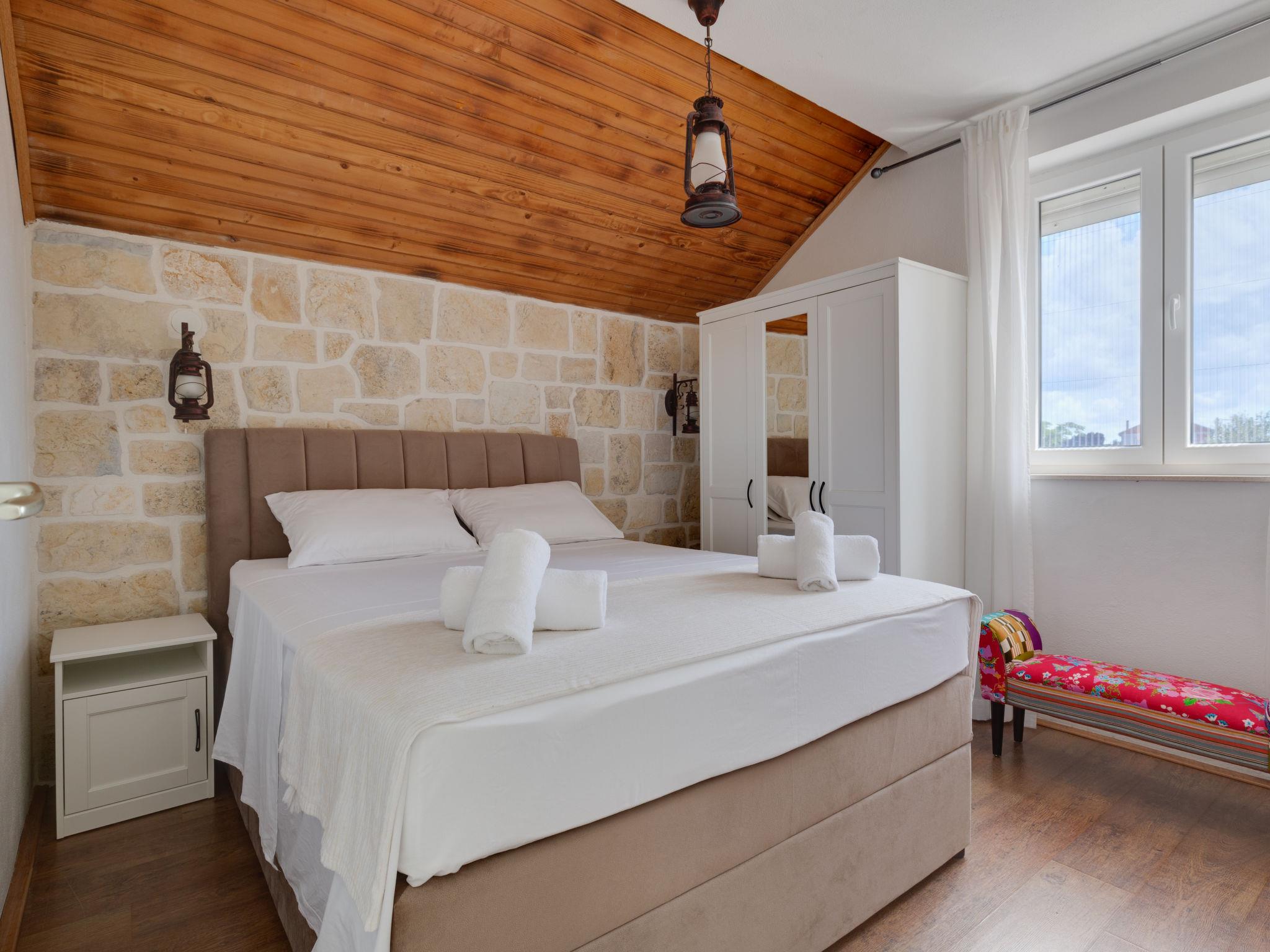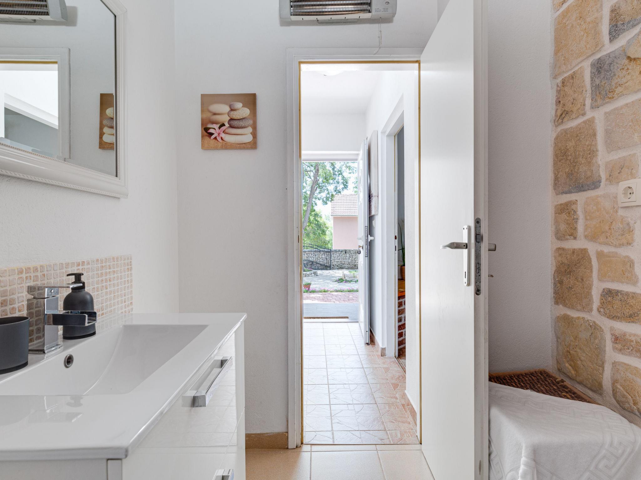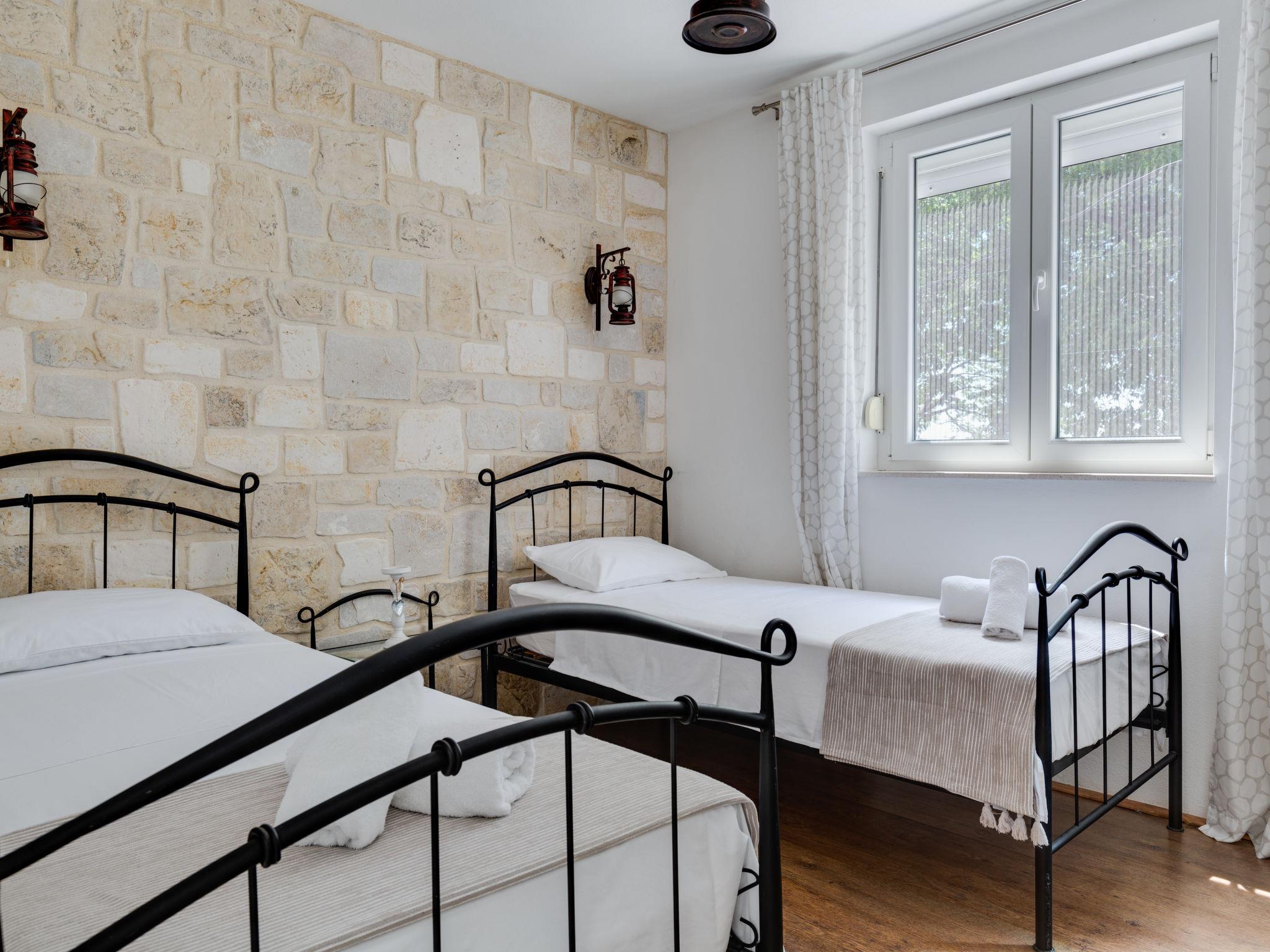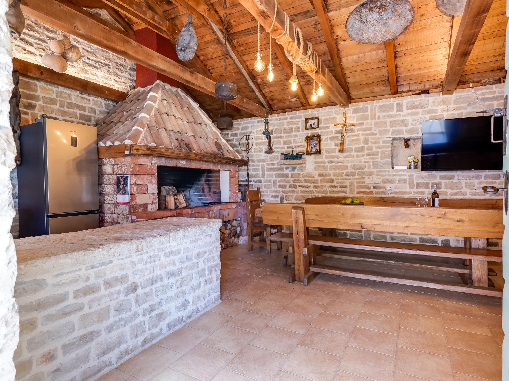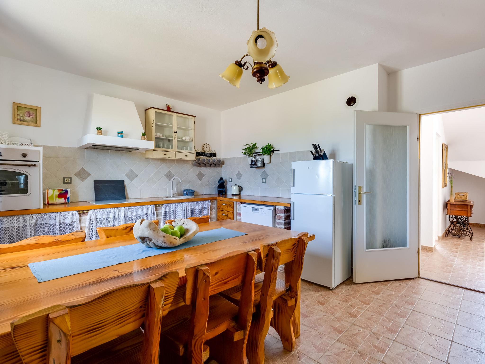 Zemunik Gornji 15 km from Sukošan: Beautiful villa "Josip & Mia", 2 storeys. 4 km from the centre of Zemunik Donji, in a quiet, sunny position, 15 km from the sea, 15 km from the beach. Private: property 1'000 m2 (fenced), swimming pool angular (8 x 4 m, depth 150 cm, seasonal availability: 01.May. - 30.Sep.) with internal staircase. Outdoor shower, hot tub, pergola, terrace (40 m2), garden furniture, barbecue. In the house: internet access, washing machine. Parking (for 3 cars) at the house on the premises. Shop 1.5 km, restaurant 15 km, bus stop 8.4 km, pebble beach 15 km. Nearby attractions: NP Krka 45 km. Please note: suitable for families. The owner does not accept any youth groups.