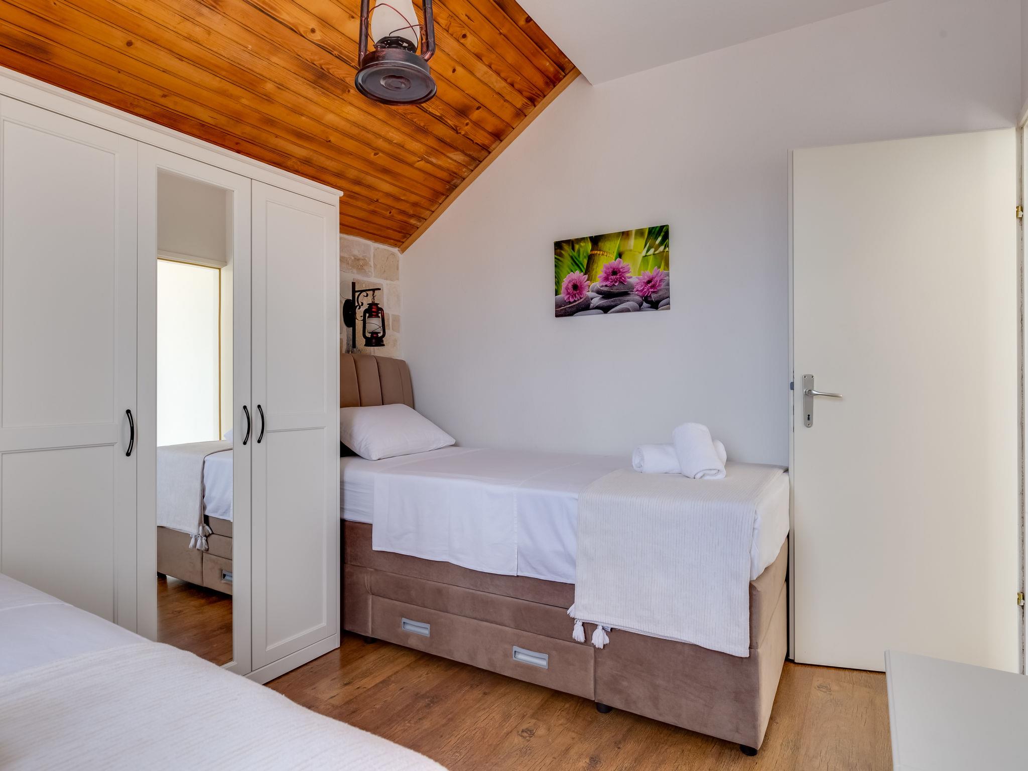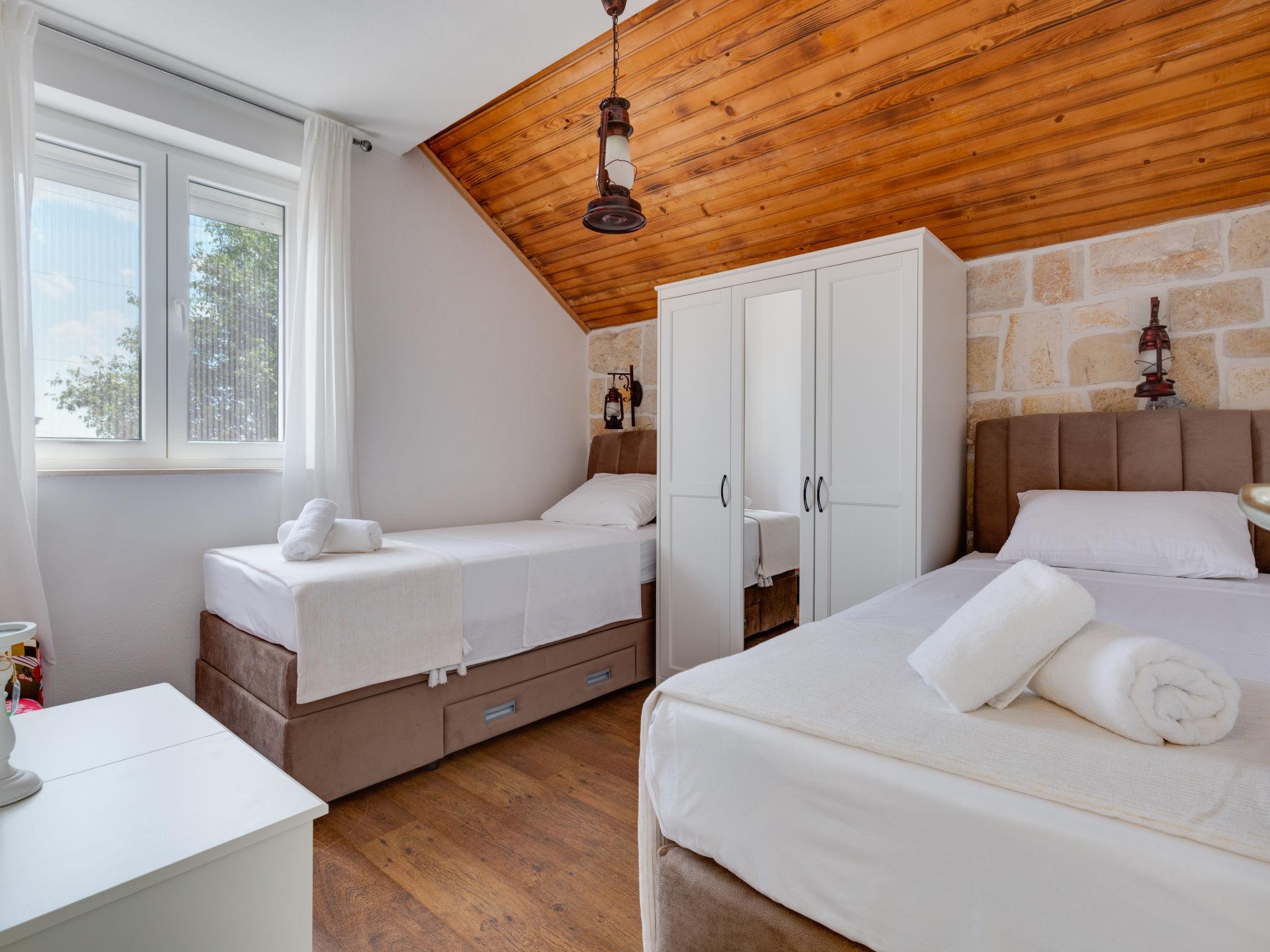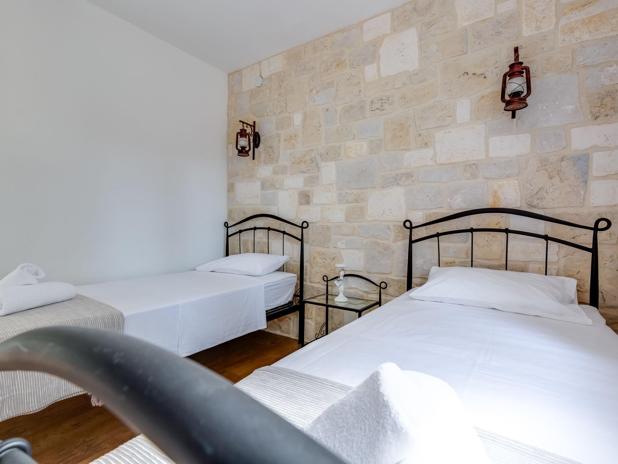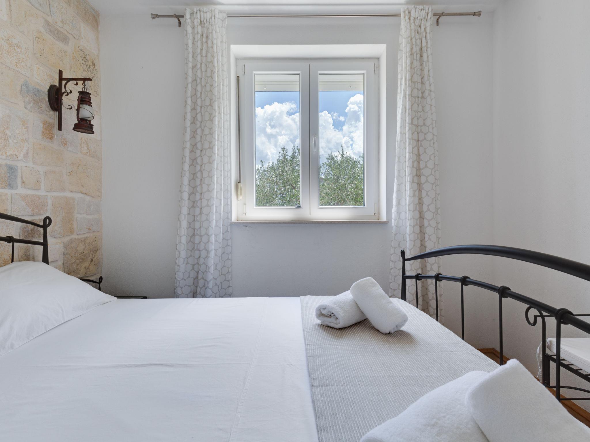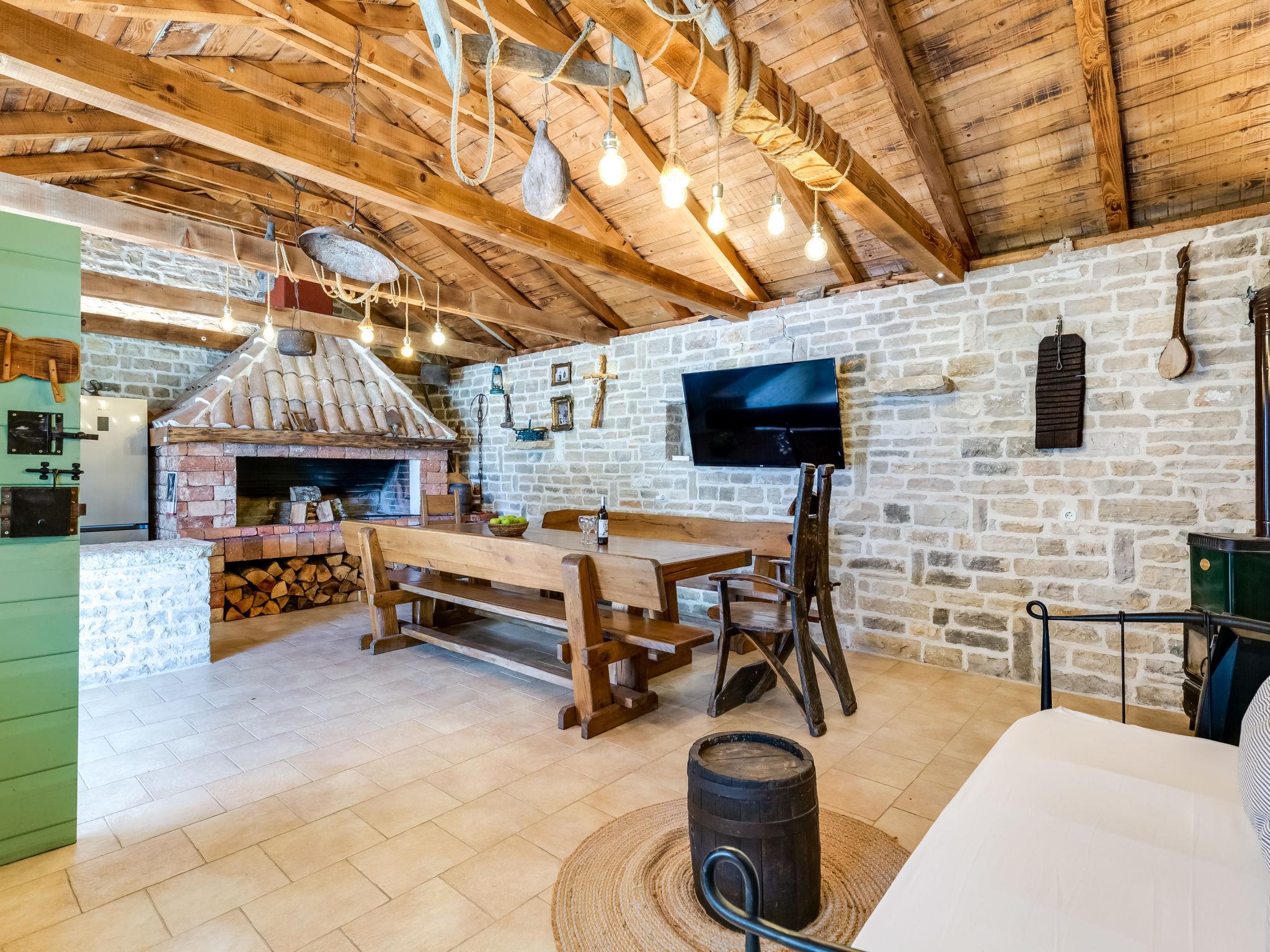 Zemunik Gornji 15 km from Sukošan: Beautiful villa "Josip & Mia", 2 storeys. 4 km from the centre of Zemunik Donji, in a quiet, sunny position, 15 km from the sea, 15 km from the beach. Private: property 1'000 m2 (fenced), swimming pool angular (8 x 4 m, depth 150 cm, seasonal availability: 01.May. - 30.Sep.) with internal staircase. Outdoor shower, hot tub, pergola, terrace (40 m2), garden furniture, barbecue. In the house: internet access, washing machine. Parking (for 3 cars) at the house on the premises. Shop 1.5 km, restaurant 15 km, bus stop 8.4 km, pebble beach 15 km. Nearby attractions: NP Krka 45 km. Please note: suitable for families. The owner does not accept any youth groups.