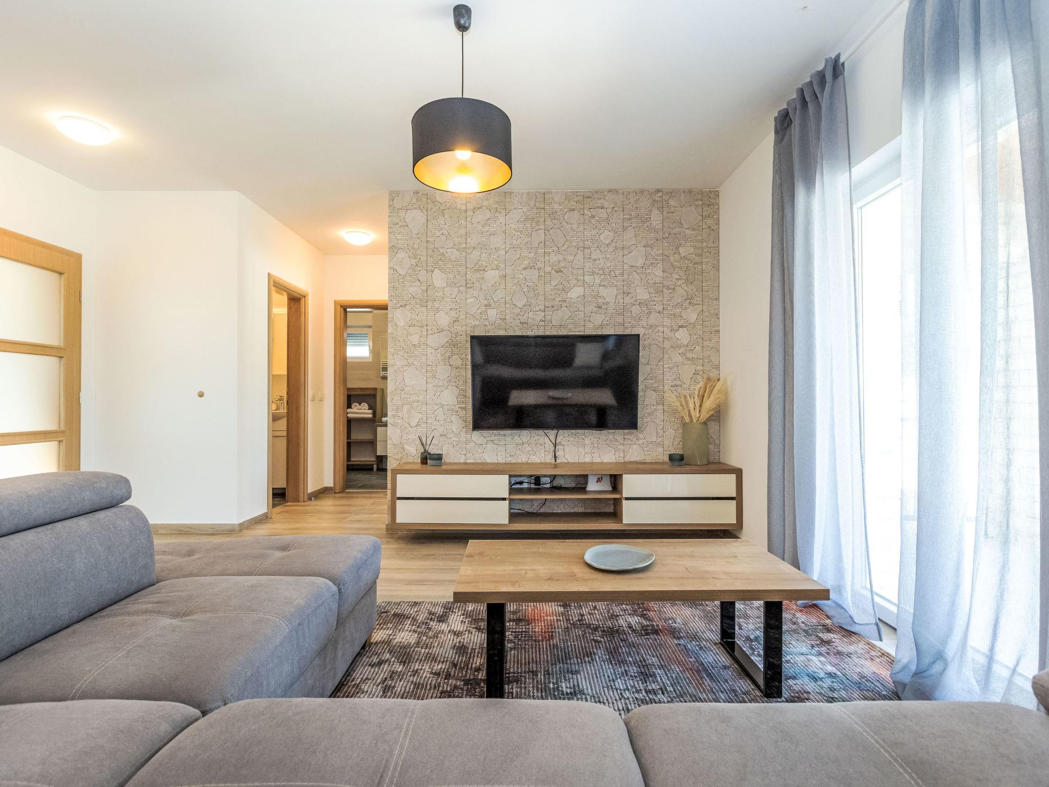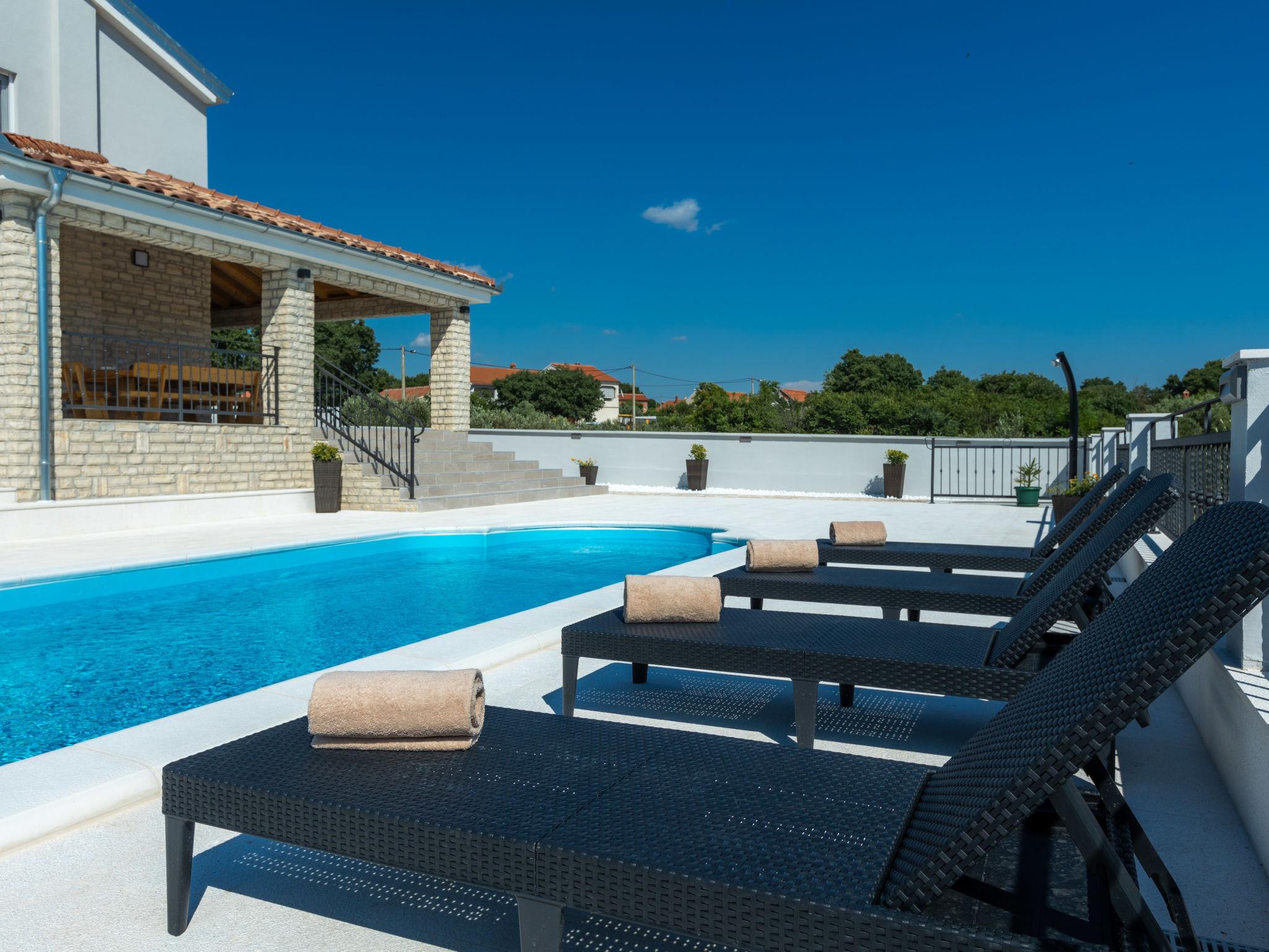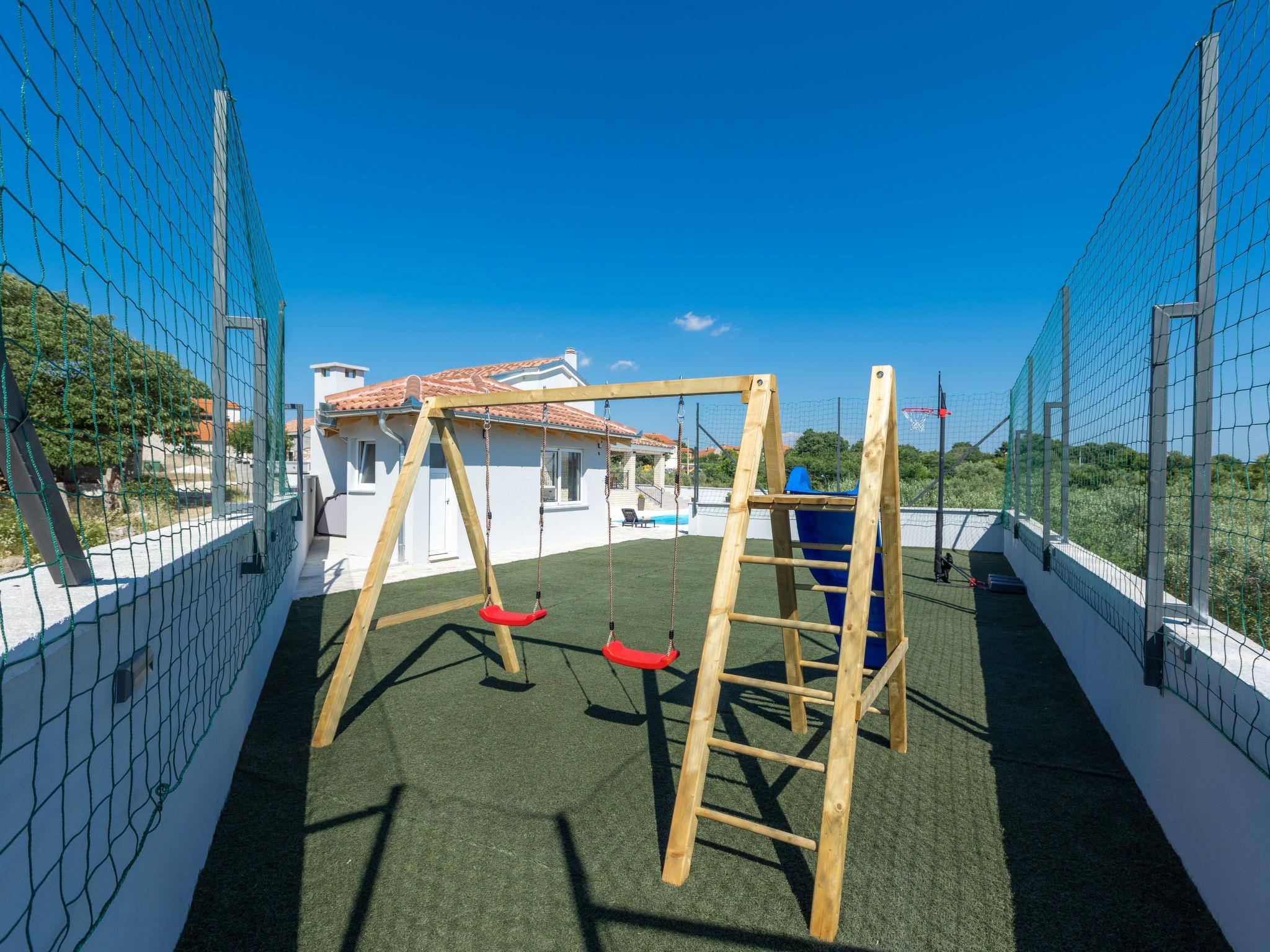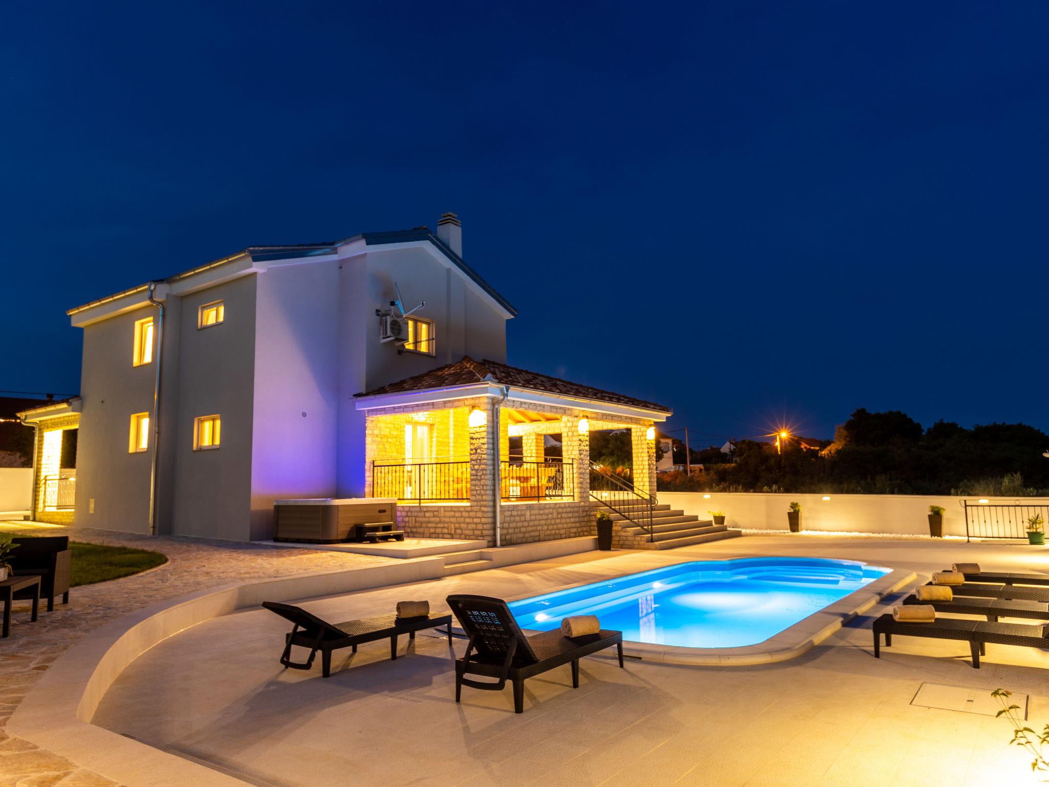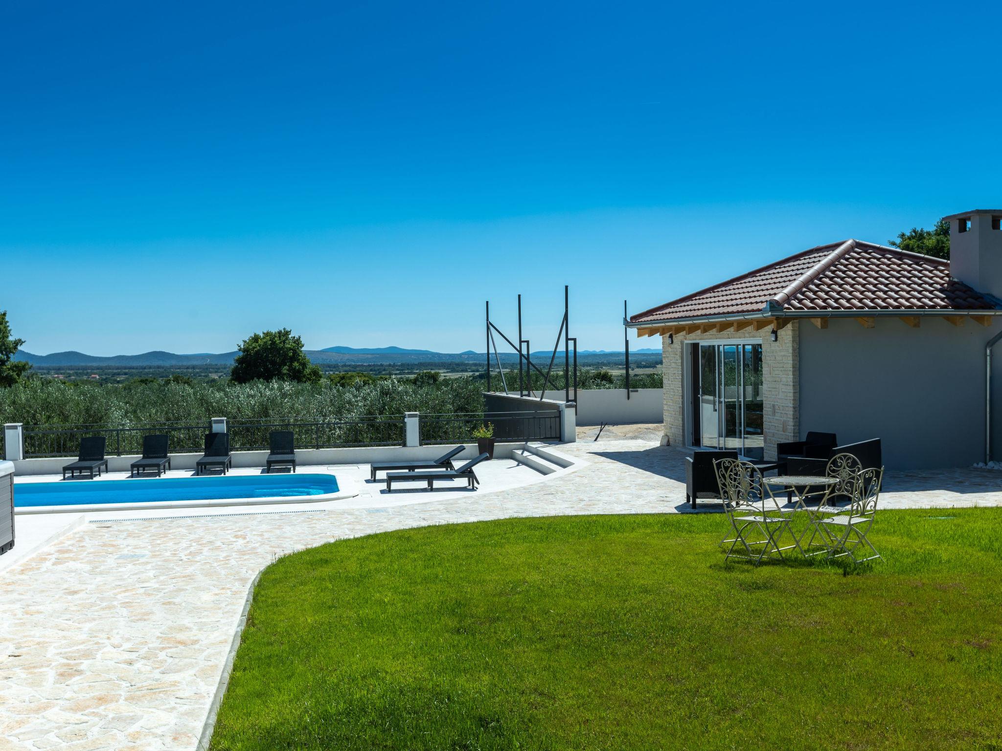 Zemunik Donji 25 km from Zadar: Beautiful single-family house "Villa Šime", 2 storeys. 17 km from the centre of Sukošan, in a sunny position, 17 km from the sea. Private: property 1'100 m2 (fenced), swimming pool (8 x 4 m, depth 140 cm, seasonal availability: 01.May. - 01.Oct.). Slide, outdoor shower, hot tub, basketball (swing). In the house: internet access, sauna, washing machine. Parking (for 4 cars) at the house on the premises. Restaurant 17 km, bus stop 10.3 km, pebble beach 17 km. Nearby attractions: NP Krka 67 km, NP Paklenica 39 km, Fun park Biograd 32 km. Well-known lakes can easily be reached: Vrana See 33 km. Groups of teenagers on request only. Please note: airfield 18 km from the property.