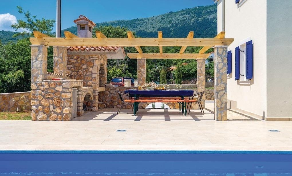 This fantastic villa in Zagore near Opatija offers a wonderful panoramic view of the sea and surrounding islands from the with swimming pool area and on the National Park Ucka on the other side of the house. The house is on three floors connected by internal staircase or accessible from the outside. It has 6 bedrooms, 5 bathrooms, spacious living room and dining room, modern kitchen, toilet for guests. The plot impresses with pool and Istrian style barbecue. Relaxed moments offers a sun deck with lounge chairs and polyrattan furniture. The villa is ideal for family holidays or holidays with friends. The location offers a good starting point from where you can quickly get to the ferry for the islands, which you can visit, but also to explore tourist spots such as Moscenicka Draga, Opatija, Rabac, Adriatic, Rijeka and Labin. Excellent restaurants are easily accessible by car. Pool and jacuzzi are open from april till september. No Party, loud music all times!